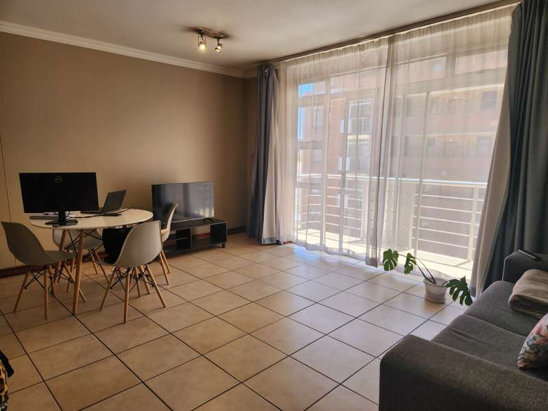 Introducing a stunning and exceptionally spacious one-bedroom apartment, conveniently located within walking distance of the Gautrain Station and the University of Pretoria. Enjoy quick access to all major routes eg the N1 and N4.. This unit features high-quality finishes and a lovely North facing balcony, perfect for fresh air and natural light throughout the day. The bathroom includes both a bath and a shower for your convenience. The generously sized bedroom can easily accommodate a queen-size bed along with a study nook, and there is potential to transform this space into two bedrooms if desired. You'll also find plenty of cupboard space for all your storage needs. Additionally, this property comes with a designated parking space, which is registered on the Title Deed. The building offers excellent security and is well-maintained. A perfect place for your student children to stay, offering the parents peace of mind! This is a great investment opportunity!
