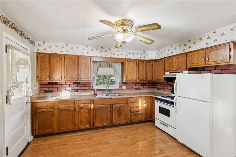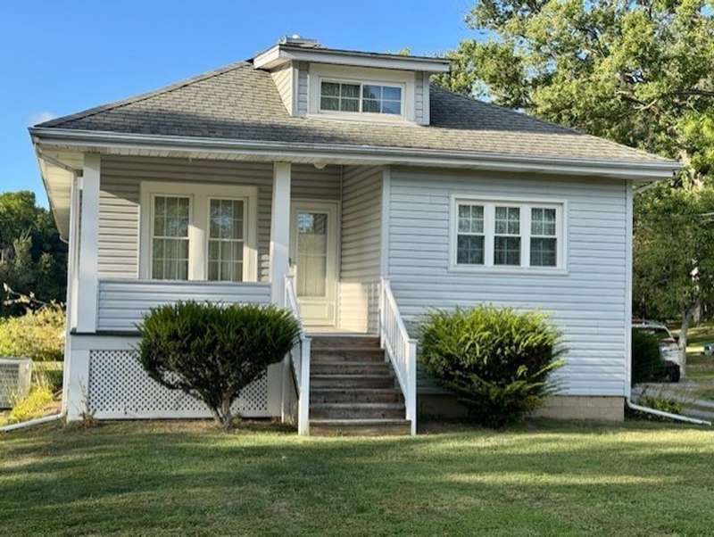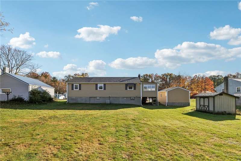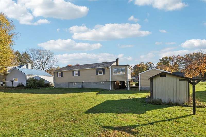 Comfort and style await in this move-in ready ranch perfectly positioned on a table-top level lot. A relaxing covered front porch welcomes you inside through a decorative glass front door to a bright and neutral interior. The sun-infused living room, accented by an elegant arched opening and soft carpeting, flows seamlessly into the fully equipped eat-in kitchen featuring oak cabinetry, granite-look counters, and a charming brick backsplash. A convenient pass-through offers an open connection to the living room, while the kitchen extends into a delightful 3-season room overlooking the backyard, perfect for morning coffee or quiet evenings. The hallway leads to 4 comfortable bedrooms and an enviably updated full bath. A partially finished basement adds bonus living space and includes laundry area, powder room, and large ceramic shower. Additional highlights include a newer roof, updated windows, storage shed, and paved driveway. Prime location just minutes from Route 65, 422, and I-376.
