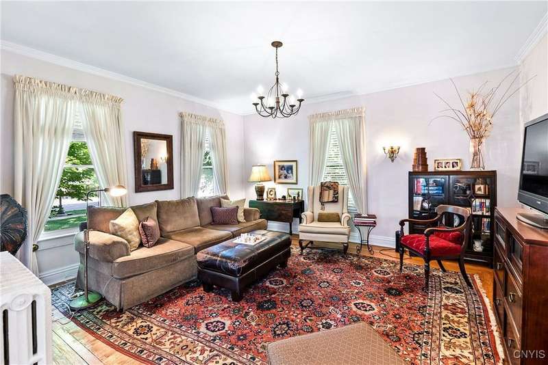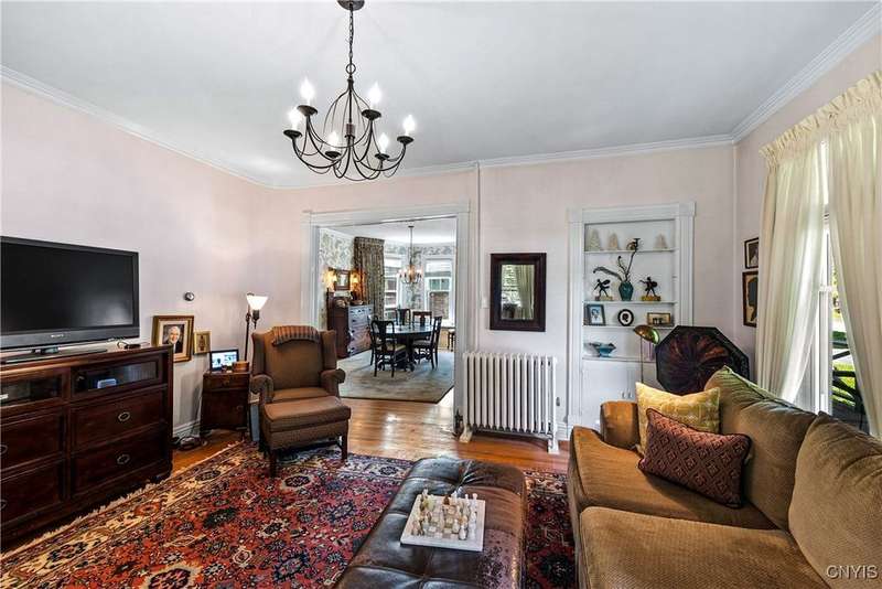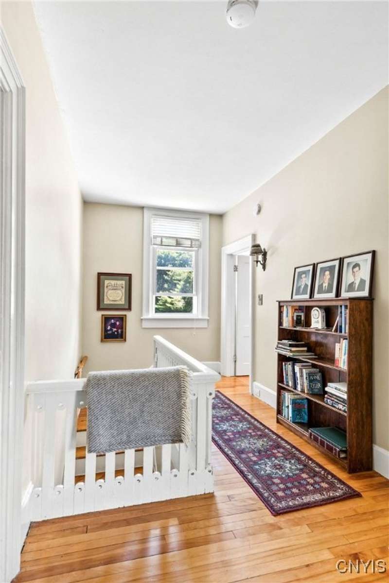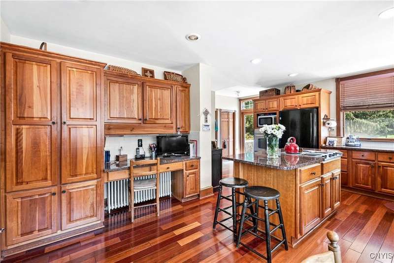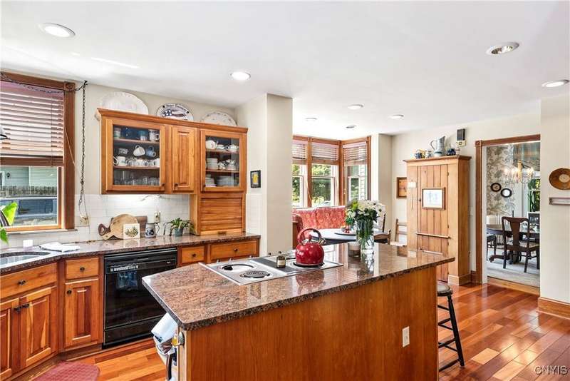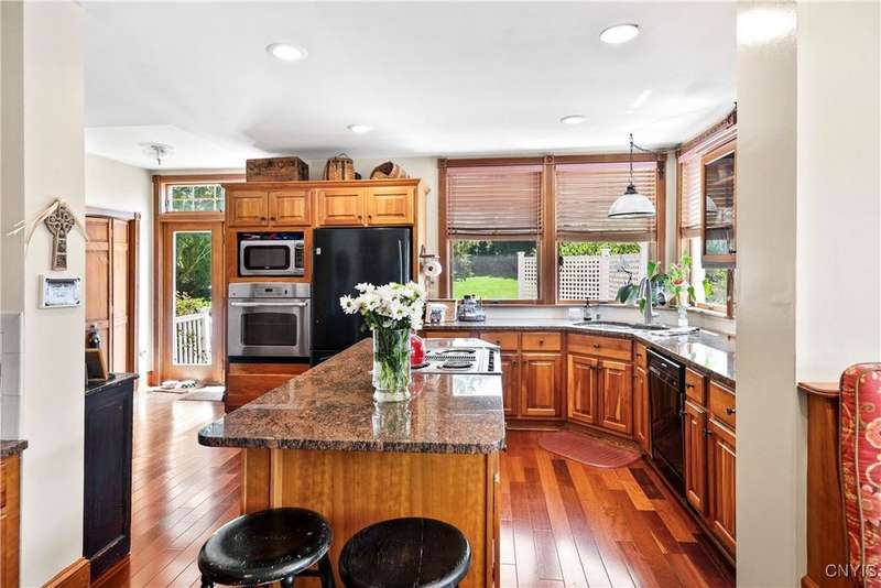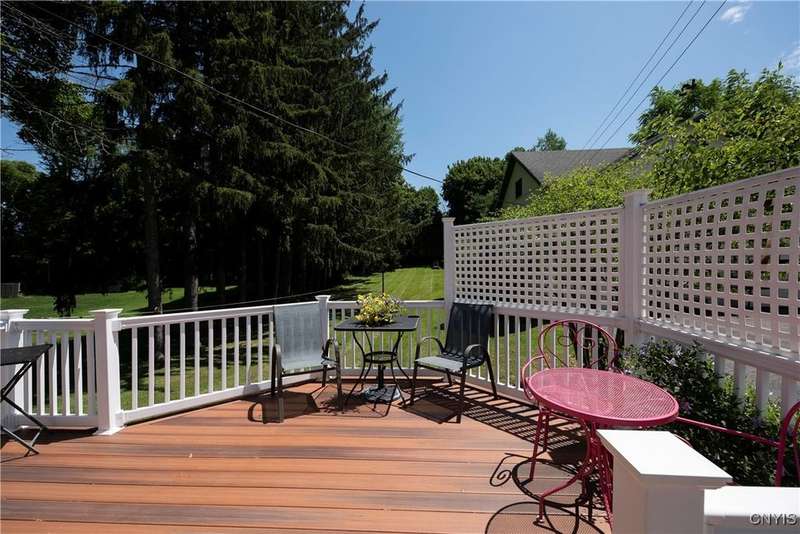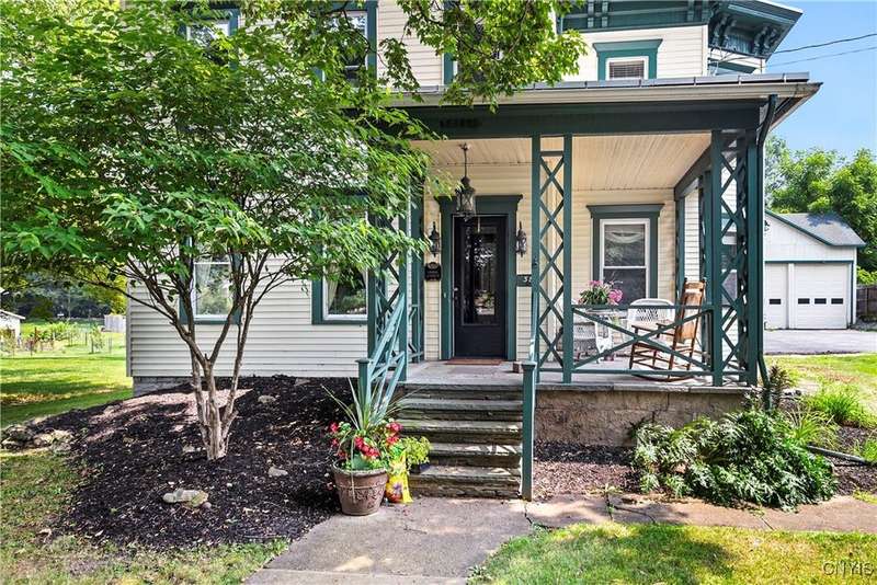 Welcome to 38 North Street in the charming village of Marcellus. This amazing home is hitting the market for the first time in over half a century. Well maintained and cared for, this gem is conveniently located across from the school campus. The house boasts a fantastic floor plan featuring timeless custom cherry cabinets with granite countertops, a cozy built-in seating area, and beautiful hardwood floors throughout. The formal dining room is adorned with stunning windows, intricate moldings, and a window seat that floods the room with natural light. The formal living room is perfect for unwinding, complete with built-in shelves. Additionally, there is a den that could be used as a fourth bedroom, with lovely wainscoting and plenty of natural light. The full bathroom on the first floor includes a vanity, tub, shower, and first-floor laundry. Upstairs, you'll find three spacious bedrooms with ample closet space, and the primary bedroom includes a walk-in closet with built-ins. The generous bathroom upstairs features a custom cabinet vanity, tiled floors, and a shower/tub combo. The property sits on over half an acre, with a private deck overlooking the beautifully landscaped yard. The detached barn/garage is perfect for storage and can comfortably fit four cars. This home is within walking distance to the village of Marcellus and just steps away from the schools.