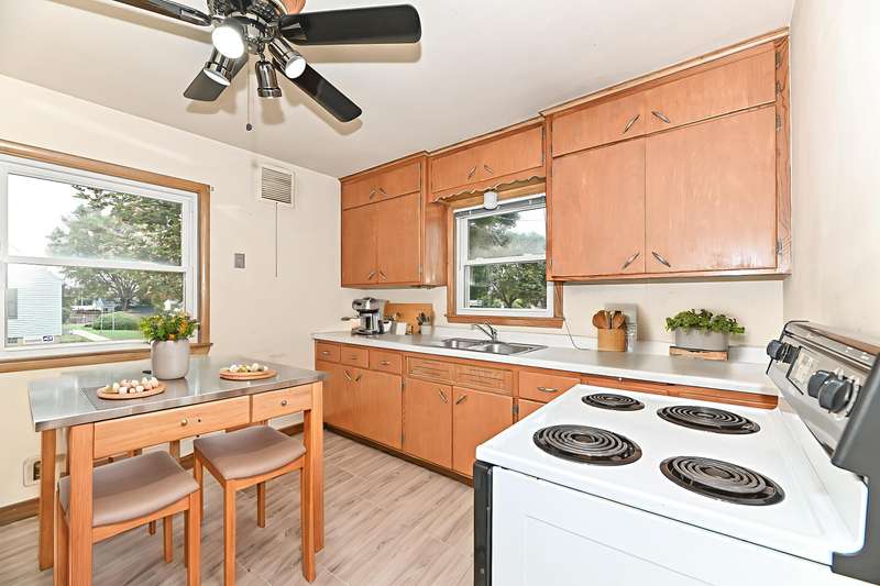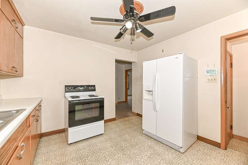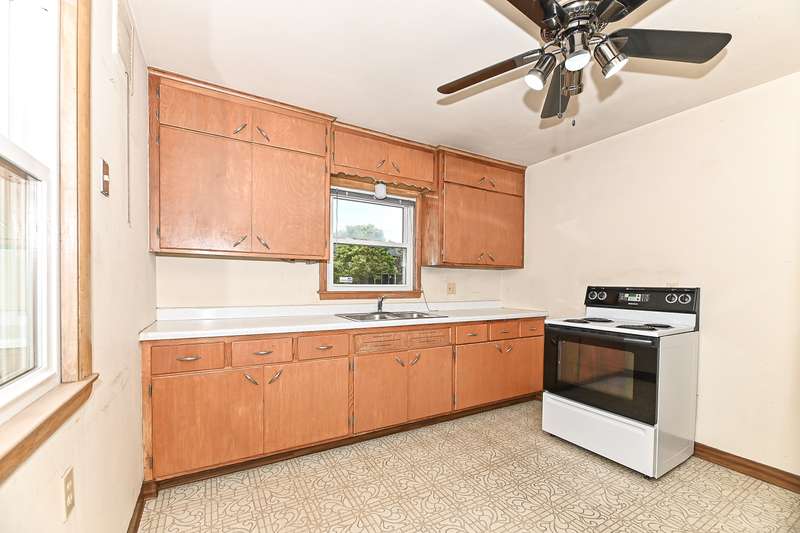 With a little paint and flooring here is your chance to make this home shine! Large, sunny living room. Eat in kitchen with stove and refrigerator included. 2 great sized bedrooms and full bath complete the main level. Upstairs is an office, huge 3rd bedroom and plenty of storage. Lower level is just waiting for your rec room ideas. All block, oversized (24X16) garage with 10 foot over head doors is a bonus. Large lot and close to Wilson Park. Some photos virtually staged. Make your appointment today!