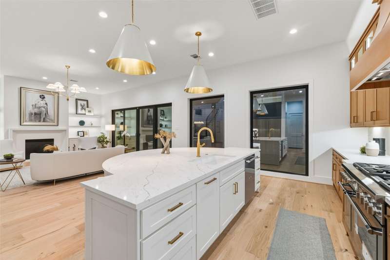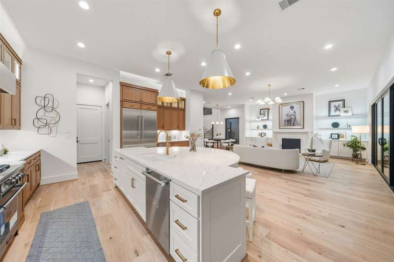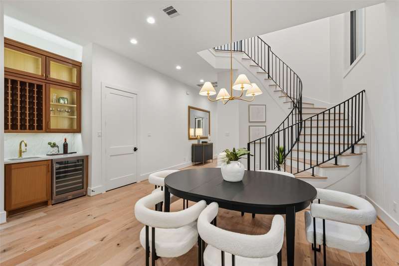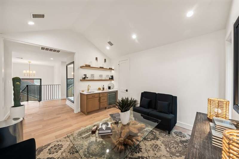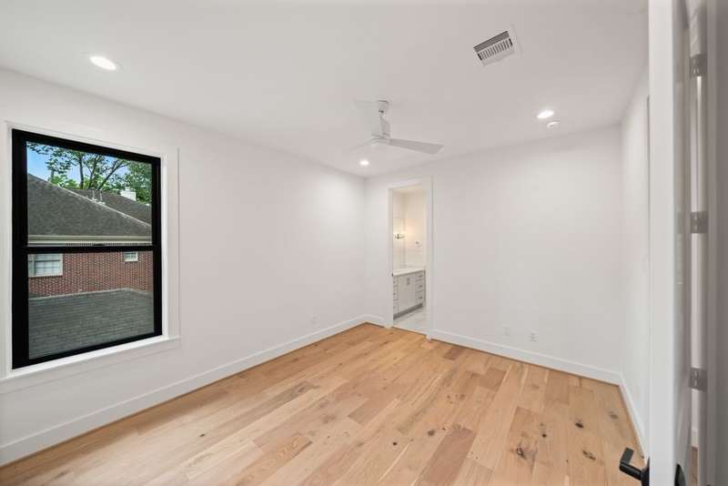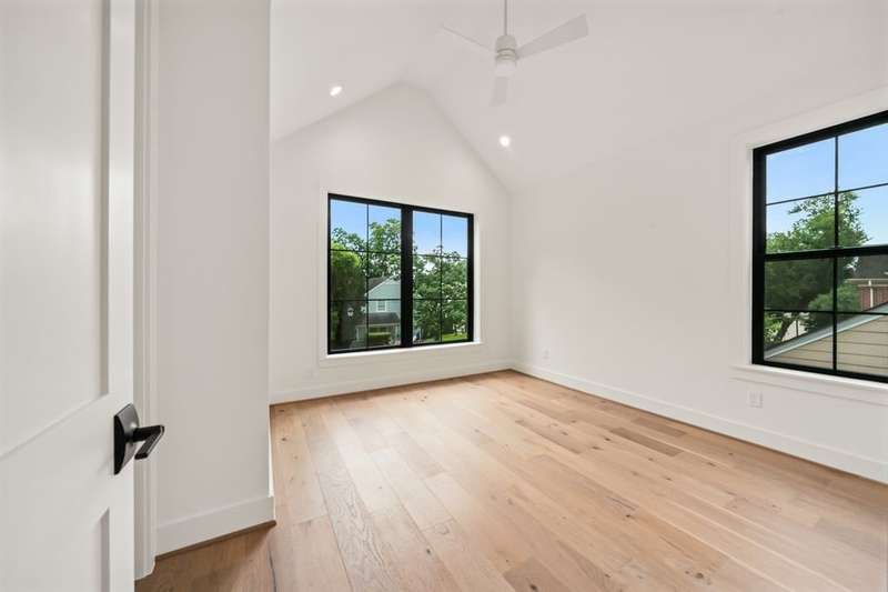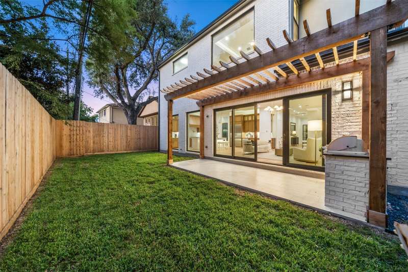 GREAT NEW PRICE! Exceptional new construction by Laird Custom Homes, just one block from Rice Village! Beautiful brick exterior w/stucco accents, custom iron double glass door, & designer lighting package. This 4-bedrm, 5-bathrm home features an elevator shaft, first-floor study, butler’s pantry w/wine fridge & second-floor game rm w/wet bar. The kitchen includes a breakfast bar island, quartz countertops & backsplash, custom cabinetry, & a premium Thermador appliance package. The spacious family room offers 10-ft ceilings & a stunning fireplace w/cast surround, while the adjacent dining room is ideal for entertaining. The second-floor owner’s suite boasts large windows, a spa-like bath w/frameless shower and soaking tub, and a walk-in closet with custom built-ins. Additional highlights: oak wood floors throughout, Low-E windows, home audio and security pre-wire, sprinkler system, sodded yard, back patio with grill and cedar pergola. All info per seller.