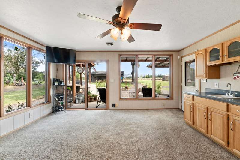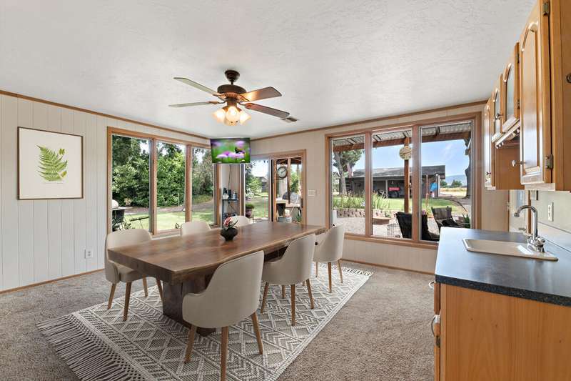 Peaceful living in a prime location! This small-acreage property is tucked away on a private drive, offering both privacy and convenience. Featuring a remodeled kitchen, spacious family and living rooms, and a versatile shop, this home is designed for comfort and functionality. The family room and living room both feature a fireplace for cozy evenings on winter days. Spacious bedrooms with nice natural light. Dining area/sunroom has a ton of windows, allowing the light and views to pour in. Backyard features built-in bbq, great for entertaining. Lap pool is an added bonus for exercise or just cooling down on warm days. Extensive large raised garden beds will allow you to grow an extensive crop of your choosing, Enjoy breathtaking views and the tranquility of country living—all just minutes from town. A rare opportunity in a highly desirable area!