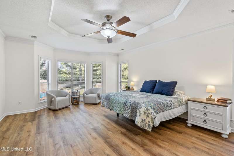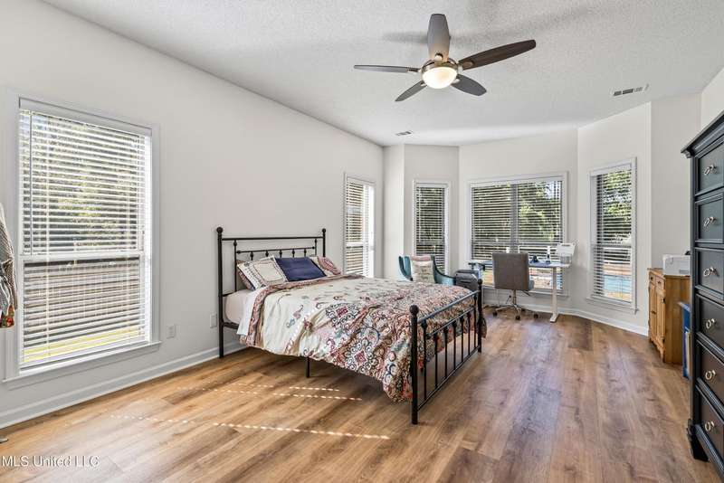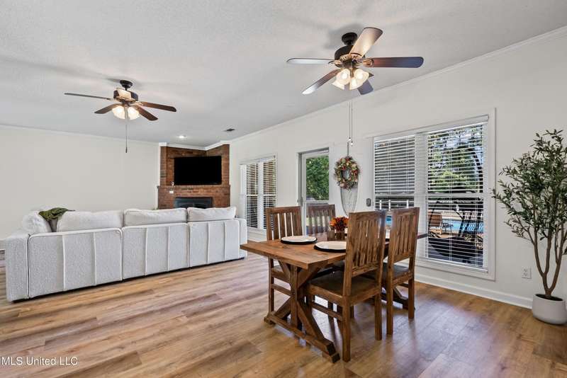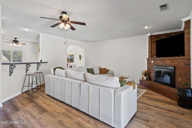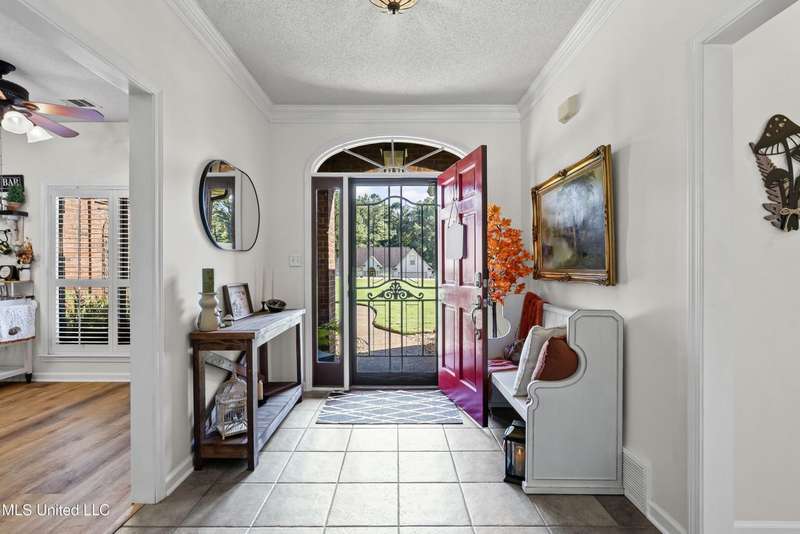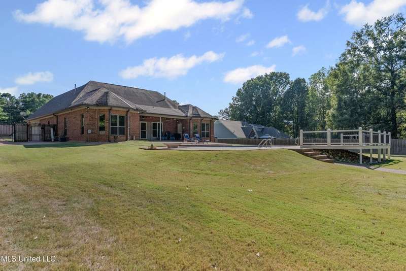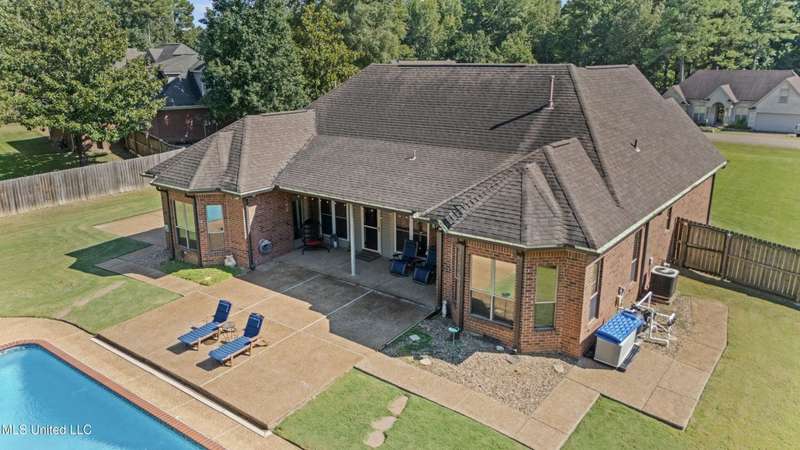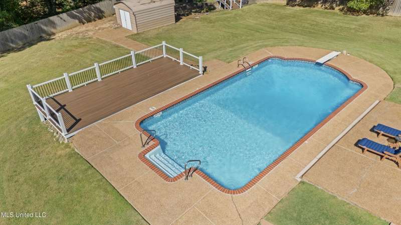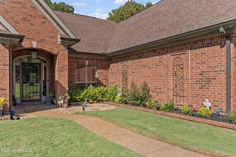OPEN HOUSE: Saturday, 9/27, 11-1 & Sunday, 9/28, 2-4 ~~~~~ Tucked into a quiet, established neighborhood in Olive Branch, this beautifully updated single-level home offers approximately 2,500 square feet of thoughtfully designed living space on a nearly 3/4 acre lot. A Grecian-style in-ground pool with a diving board, Trex deck, and both covered and open patio areas . . . creates a private backyard oasis that's perfect for entertaining or relaxing in peace.Inside, a wide foyer welcomes you with a clear line of sight through the open-concept great room and dining area to the sparkling pool beyond. Fresh paint and brand-new luxury vinyl plank flooring flow throughout the home, while abundant windows and a floor-to-ceiling brick fireplace add warmth and charm. The spacious kitchen, open to the living areas, features tile floors, an island, generous cabinet and counter space, and upgraded appliances . . . including a brand-new refrigerator that stays. Just off the kitchen, the laundry room includes a new washer and dryer and stylish floating shelves for added function.The split-bedroom layout ensures privacy, with a spacious primary suite tucked away on one side of the home. This serene retreat includes a sitting area with pool views, private patio access, a luxurious en-suite bath with dual sinks, soaking tub, walk-in shower, and a custom-designed walk-in closet. On the opposite side, two additional bedrooms offer flexibility . . . one is large enough to serve as a second primary or guest suite (19x13), complete with its own patio access, seating nook, and walk-in closet. The third bedroom is also generously sized at 16x13 and shares a full bath with the second.Bricked flower beds, a full irrigation system, and a privacy-fenced backyard add to the home's curb appeal and outdoor enjoyment. Additional highlights include a two-car garage, brick and vinyl construction (for low maintenance living), abundant interior storage, attic space, and a 16x12 metal outbuilding on a concrete pad. A charming Trex bridge leads to a quiet garden area, ready for a butterfly and hummingbird haven.Ideally located near shopping, dining, and medical services, with convenient access to Memphis and Shelby County for work, this move-in ready home offers the perfect blend of comfort, style, and everyday livability.