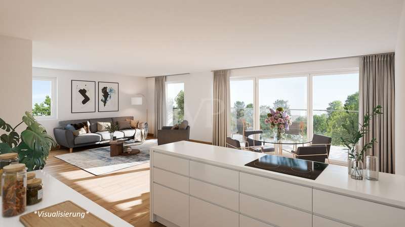 The 3.5-room apartment on offer on the 1st floor has a size of approx. 89 m² and impresses with its advantageous layout and the large, covered balcony with a view of the greenery. The spacious, bright rooms and the daylight bathroom offer you pleasant living comfort at an exclusive level. The elevator and level-access shower allow barrier-free living for all age groups. The apartment has high-quality oak parquet flooring and oversized tiles. The central and quiet residential location as well as the good connections to Ludwigsburg and Stuttgart make this well-designed apartment even more attractive.