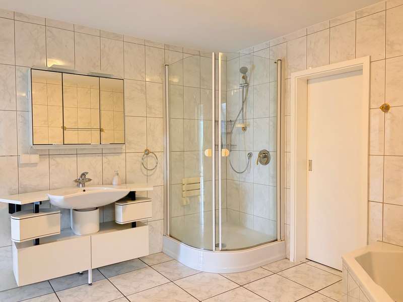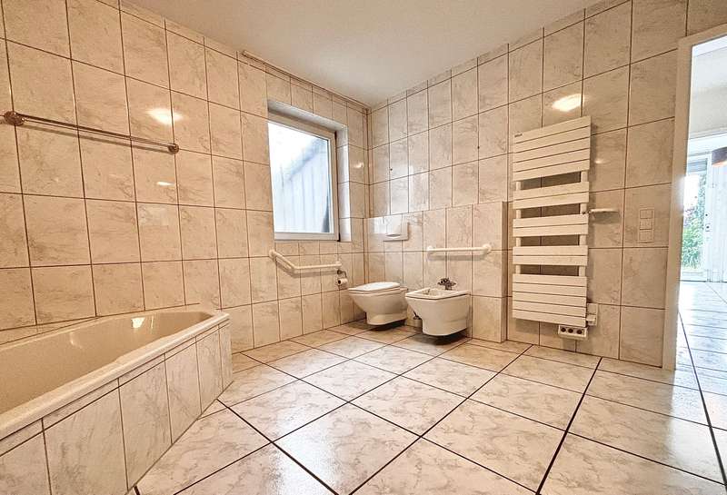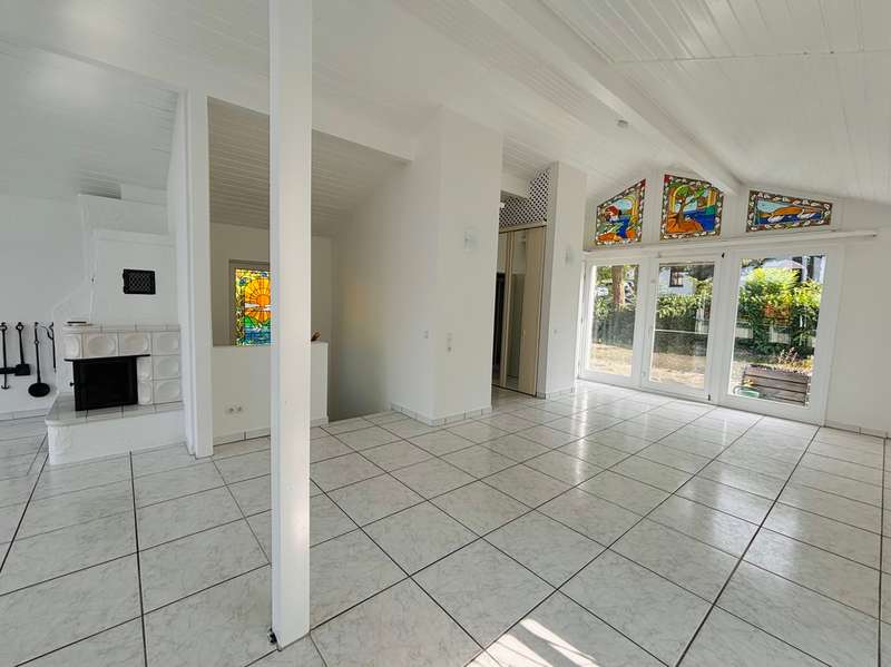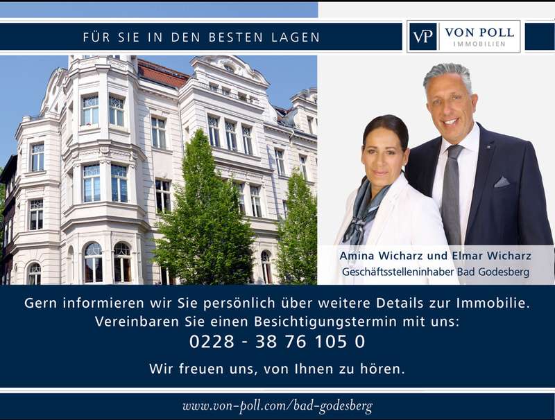 This detached single-family home is located in a quiet, family-friendly residential area of Wachtberg-Berkum - a district with an excellent infrastructure and natural surroundings. Built in 1993, the house has been modernized in recent years. A new heating system was installed in 2019 and the entire electrical system was brought up to date in 2021. The property thus combines its original charm with contemporary living comfort. The heart of the house is the spacious living and dining area with open-plan kitchen - a light-flooded room that invites you to cook, eat and linger together. The cozy wood-burning stove provides cosy warmth in the colder months. Two bedrooms guarantee ideal retreats, while a further room can be used flexibly as a study, guest room or dressing room. The spacious main bathroom is equipped with a bathtub, bidet and a well-kept sauna and offers a high standard of comfort. The space is complemented by a separate guest WC with shower and a practical laundry room. The property is heated by gas central heating in combination with underfloor heating and a wood-burning stove. A garage with electric door and an additional outdoor parking space round off the offer. The approx. 408 m² plot offers plenty of space for outdoor recreation. The well-tended garden as well as the covered terrace and balcony - the latter extends across the entire width of the house - create a variety of opportunities for relaxation in all weathers. An ideal home for couples or families who value a quiet location, well thought-out room layout and a well-kept living environment.