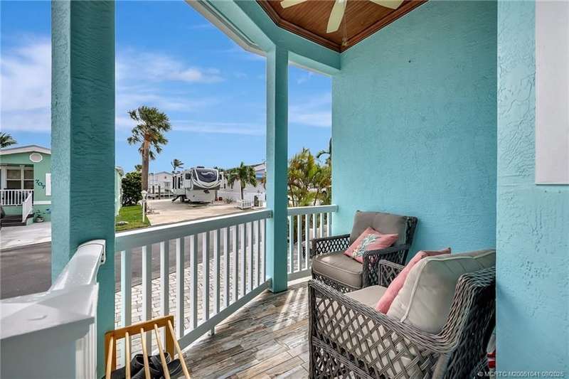 Custom-built h?me, ?ffers th? ???rf???t bl?nd of coastal living & t??mel?ss design. Designed with comfort and functionality, it boasts two master suites, one on each floor, ensuring ultimate convenience & privacy. The 1st floor features an open floor plan with custom cabinetry, a breakfast bar, crown molding, 10' ceilings, plantation shutters a master suite. The 2nd-floor master suite includes a spacious walk-in closet & a screened-in balcony with the serene island breeze & the river view. Built with durability and style, the home features a seamless metal roof, hurricane-impact windows, a 2022 A/C & a tankless water heater. Outdoor space is designed for enjoyment. This home is a haven of elegance and functionality in a stunning island setting. Located in a gated, pet-friendly, and golf cart-friendly community, this property offers a vibrant lifestyle with many amenities, catering to all interests & activity levels. Furnishings are included! Truly a must-see!