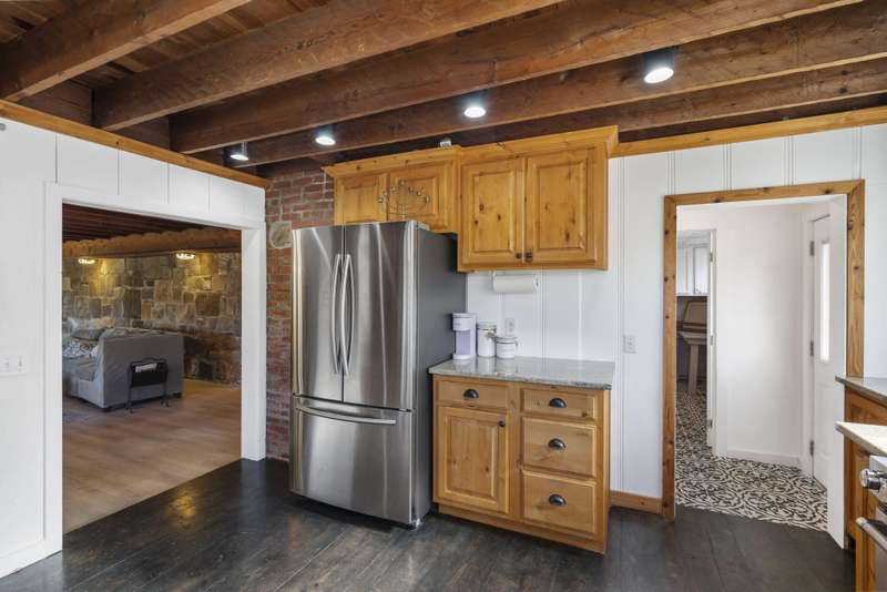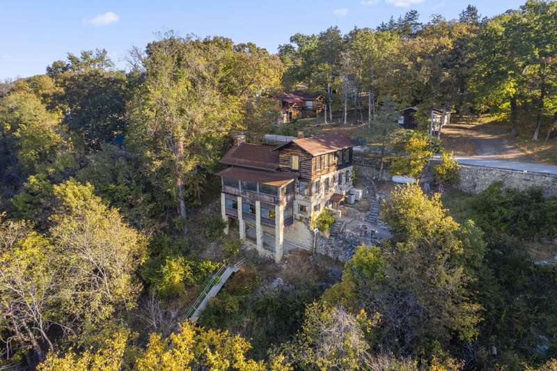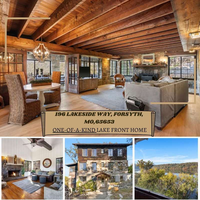 Discover a rare and captivating opportunity to own a truly one-of-a-kind lakefront home steeped in heritage and character. Originally crafted in 1933 by students of College of the Ozarks, this custom native stone home is a visual masterpiece featuring hand-hewn beams, massive stonework, and charming architectural details throughout three unique levels.Step through the striking knotty alder door with speakeasy grill and be drawn into the timeless charm blended seamlessly with thoughtful updates. From fresh interior paint and updated fixtures to beautiful Bohemian-style tile and new wheat-toned laminate flooring, every corner has been refreshed with style and care.The grand living room boasts soaring cathedral ceilings and a stately stone fireplaceperfect for cozy evenings as the sun sets over the mountains and Lake Taneycomo glistens in the background. Enjoy peaceful mornings or quiet evenings in the screened-in three-season porch, a favorite perch for spotting local bald eagles.The main level includes a warm, inviting primary bedroom and bath, plus a cozy study or guest room just across the hall. Downstairs, you'll find a charming log-style kitchen with a brand-new oven, gorgeous granite countertops and tile backsplash, a spacious family room with a second stone fireplace and woodstove insert, and a generous four-season room ideal for entertaining and family gatherings.Upstairs, a catwalk balcony leads to two more guest bedrooms and an additional bath. Outside, stone paths and patios wind through beautiful landscaping and offer lake views from every angle. A detached two-car garage and unbeatable location just two minutes to town complete the package.Don't miss this extraordinary blend of craftsmanship, history, and lakefront beautyschedule your private showing today before this gem is gone!!!
