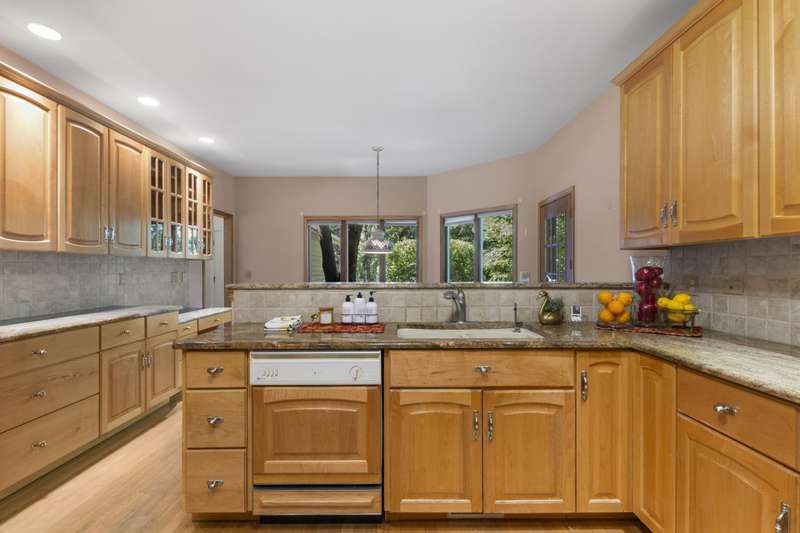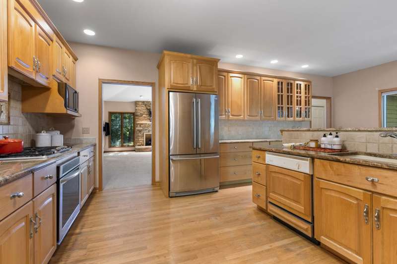 Imagine a staycation every day in this private sanctuary! This beautiful home boasts large, wood-framed windows in every room, inviting natural light and showcasing the surrounding landscapes. The versatile layout offers endless possibilities, from a potential in-law arrangement to expansive entertainment spaces for family and friends. The kitchen is a chef's dream, and stepping outside, you'll discover abundant areas for relaxation or entertaining amidst the beautiful outdoor surroundings. This secluded property features a captivating waterfall visible from the kitchen, living room, and master bedroom, leading to a spacious atrium with an outdoor view of the waterfall, a serene garden, and mature trees. Throughout this custom ranch home, thoughtful accommodations like custom cabinets and lower-level storage ensure an organized and convenient lifestyle. Beyond the beauty, you'll also appreciate the convenience of nearby expressways, forest preserves, and shopping. Don't miss this one-of-a-kind opportunity! It will go fast!