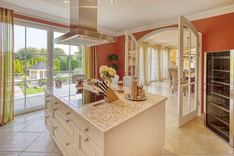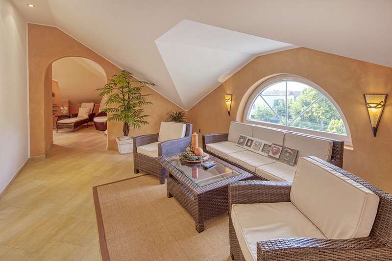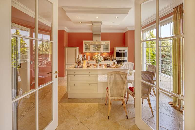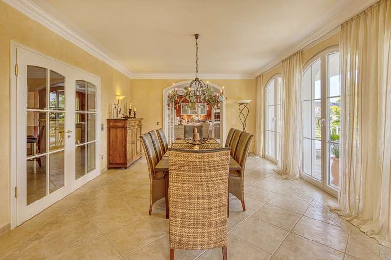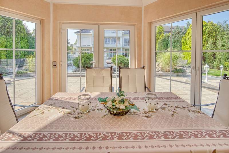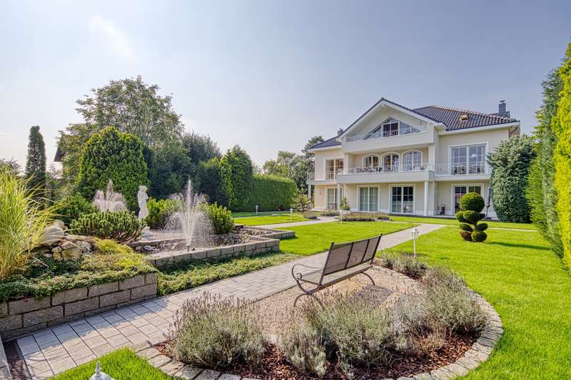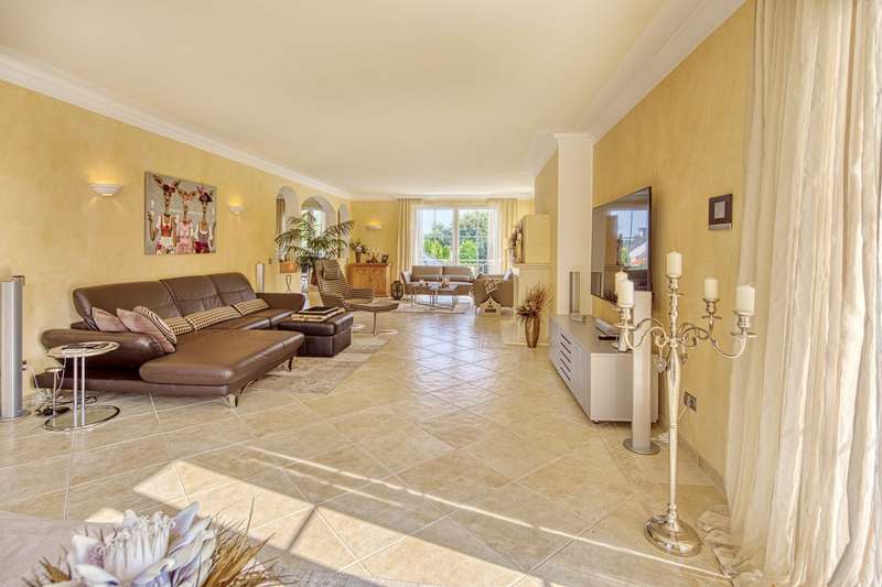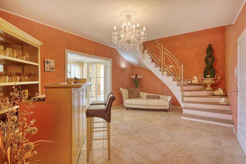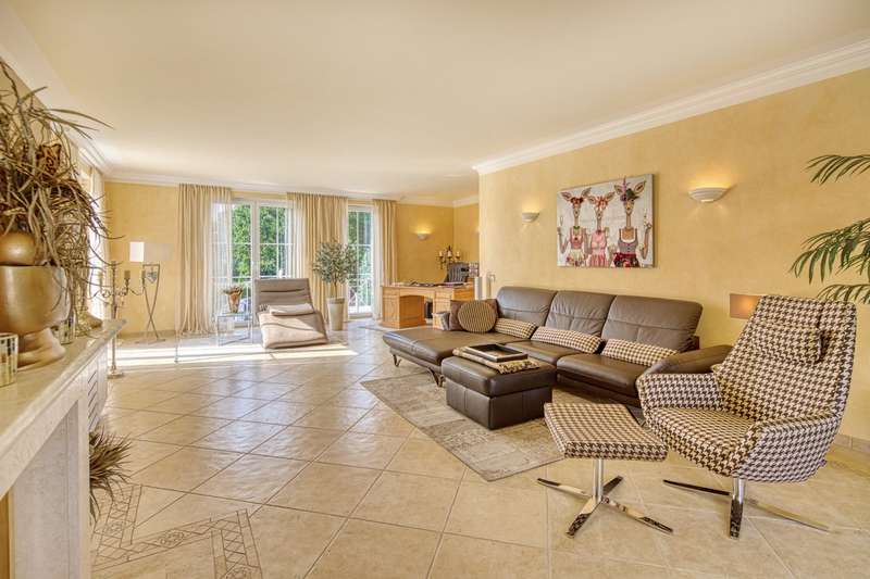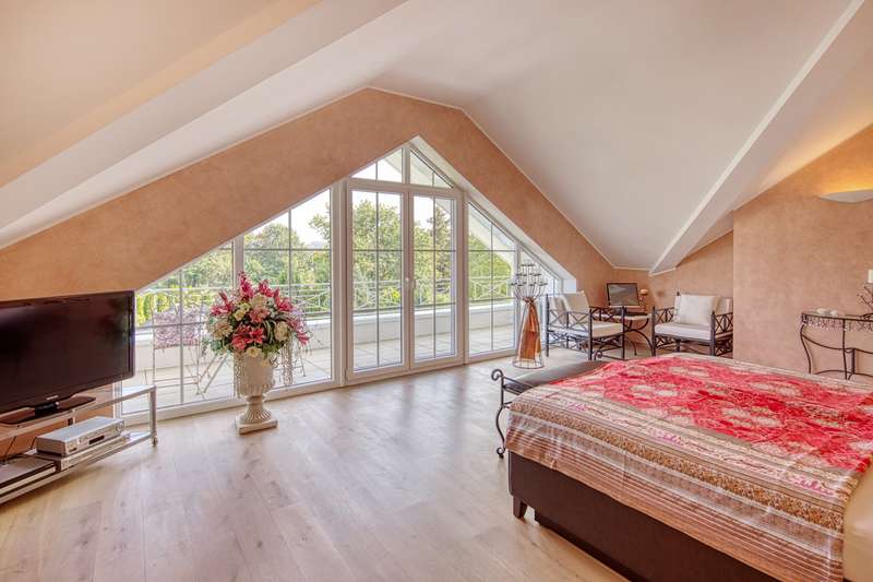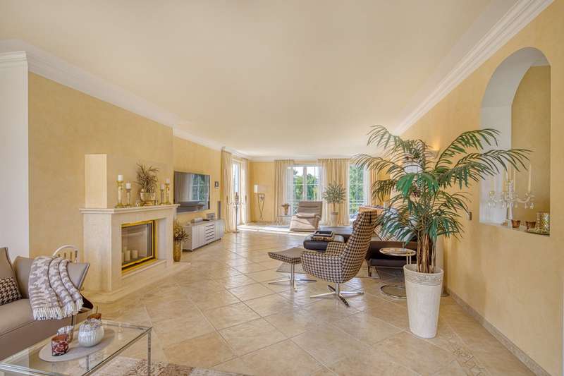VON POLL IMMOBILIEN presents this exceptional, light-flooded and lovingly designed maisonette apartment in a stylish architect's house - embedded in a unique, spacious, park-like garden. This property combines prestigious spaciousness with timeless elegance and a sophisticated, Mediterranean living ambience. Every corner of this solid four-family house, built in 2008, was designed by the owner with a great sense of elegance and Mediterranean lightness. The well thought-out and carefully designed driveway to the house - with high-quality planting and clear lines - underlines the modern aesthetic of the property as a whole. With over 311 m² of living space and a ceiling height of approx. 2.75 meters, the maisonette apartment for sale extends over the upper and top floors and offers a total of five balconies, which open up different lines of sight into the magnificent garden. Video surveillance provides additional security and convenience. A unique feeling of living unfolds as soon as you enter the apartment: warm materials, natural stone highlights and a harmonious, Mediterranean-inspired interior design lend the apartment an atmosphere of southern joie de vivre - in the style of a Mallorcan villa. The luxurious SieMatic kitchen with Miele appliances and elegant cooking island welcomes you on the upper floor - ideal for culinary delights at the highest level. Directly adjacent to the kitchen is the stylish dining area and an approx. 60 m² living room in friendly colors, whose floor-to-ceiling windows create an open and, above all, light-flooded living landscape. Also on this level: a spacious guest bedroom or bedroom, an elegant shower room and a practical utility room. An elegant staircase leads to the top floor, which is dedicated to private retreat: a quiet bedroom with a balcony and air conditioning, a dressing room and a high-quality bathroom with a whirlpool, natural stone elements and a spacious walk-in shower - a place of peace and regeneration. Another highlight is the exclusive wellness area with sauna, shower and separate WC - complemented by an adjoining room that is currently used as a fitness area. A private spa area has been created here, combining Mediterranean lightness with modern luxury. The space is complemented by an approx. 40 m² basement, which is not part of the living space but is currently used as a private cinema room. There is also a further shower room, access to the communal laundry room, the heating system and the underground garage. The Mediterranean-style garden, which is the sole property of this apartment, is a real gem: lovingly planted, thoughtfully structured and equipped with a pavilion, shower and WC - ideal for summer evenings, stylish receptions or relaxing hours in the greenery. There is the option of acquiring two further apartments in the house: a 47 m² unit and a further 73 m² unit, both on the first floor - ideal for multi-generational living or as an investment. Move in & enjoy - Mediterranean living at the highest level!!!! We would be happy to send you the full exposé with further information and floor plans of the property or are available for a personal meeting and an exclusive viewing at any time.