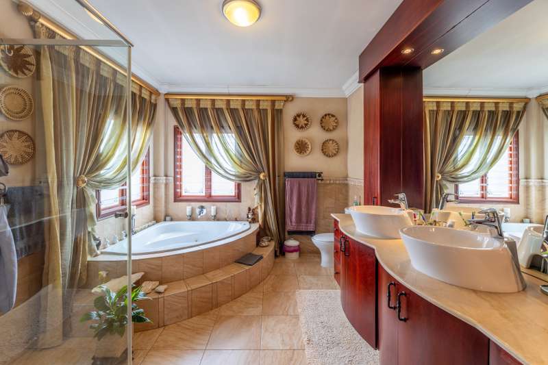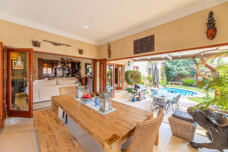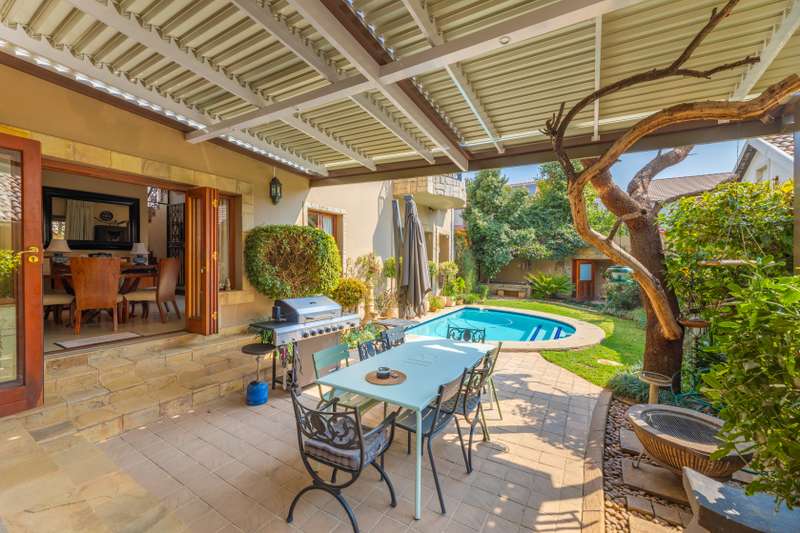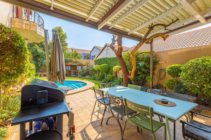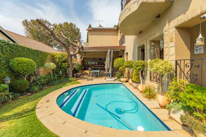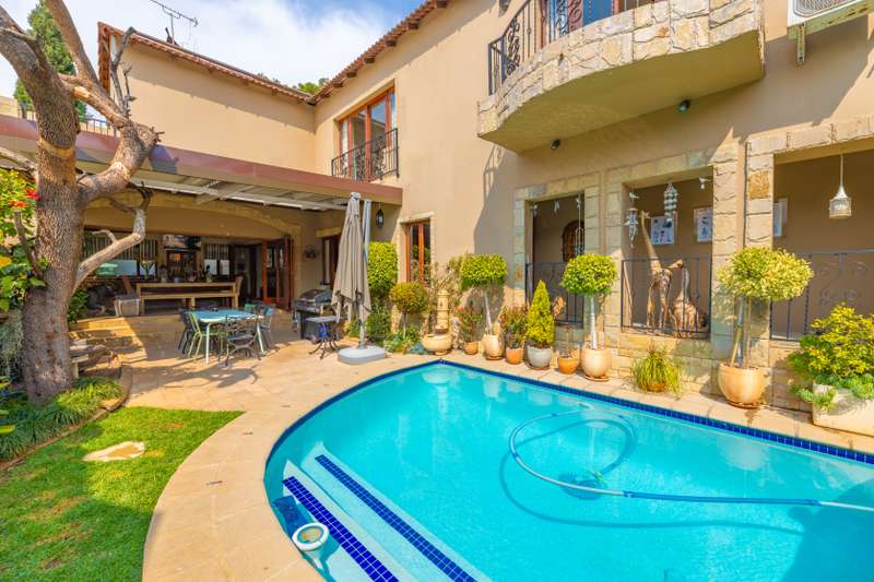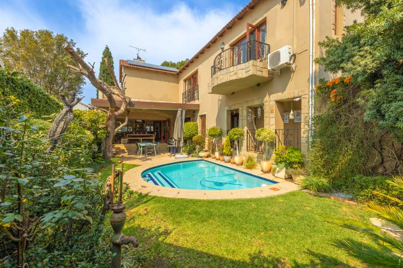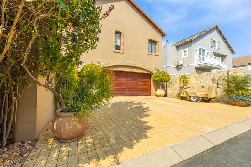 Sunlight pools in the curve of a freestanding spa bath—the image that welcomes you—and from that quiet, restorative moment, the house unfolds like a well-told story. This north-facing, modern country home in Broadacres Country Estate is a three-bedroom, three-and-a-half bathroom sanctuary where Tuscan warmth meets contemporary precision: soft stone and warm timber, muted earthy tones and rich teak accents that thread through doors, windows and cabinetry, creating a lived-in elegance that feels both timeless and immediate. From the main bathroom, you move naturally into the heart of the house: an open-plan arrangement where kitchen, dining, and living flow without friction. The kitchen, fitted with a gas hob and high-end finishes, anchors everyday rituals and festive cooking alike; two gas fireplaces create intimate pockets of warmth within the larger entertaining space; and expansive stackable doors slide away to dissolve the boundary between inside and out, extending the living room onto a covered patio and a north-facing garden that catches all-day light. Outdoors, the pool glitters for year-round use while the sprinkler system keeps the low-maintenance planting lush and effortless. The patio reads like a second living room—shaded, spacious, and designed for long dinners beneath the stars—perfect for everything from casual braais to intimate dinner parties. The flow of spaces has been considered for living as much as for showing, so guests naturally drift from conversation to cocktails to the pool without interrupting the house’s easy rhythm. The master suite is a private retreat with a spa bath and separate shower that invite slow mornings and restorative evenings; a tucked-away study provides the focused stillness required for work or creativity, and the guest facilities include a half-bath for convenience. Practicality is woven into the home’s generous list of features: a double garage, solar panels with an inverter, and batteries that speak to thoughtful, modern living. Air conditioning and ceiling fans extend to all bedrooms, and stackable doors ensure seamless transitions that make entertaining effortless while preserving privacy when required. Set within Broadacres Country Estate, the property benefits from landscaped communal gardens and clubhouse amenities—a function venue, pool, playground and jungle gym, soccer goals, tennis court and basketball hoop—that create a neighbourly backdrop of activity and connection. Built to perform on market day and to nurture everyday life, this house balances hospitality with retreat: a home that welcomes gatherings, honours solitude, and promises a lifestyle of warmth without fuss.