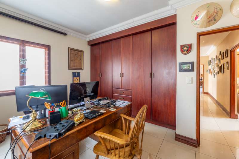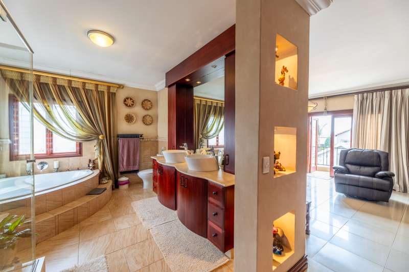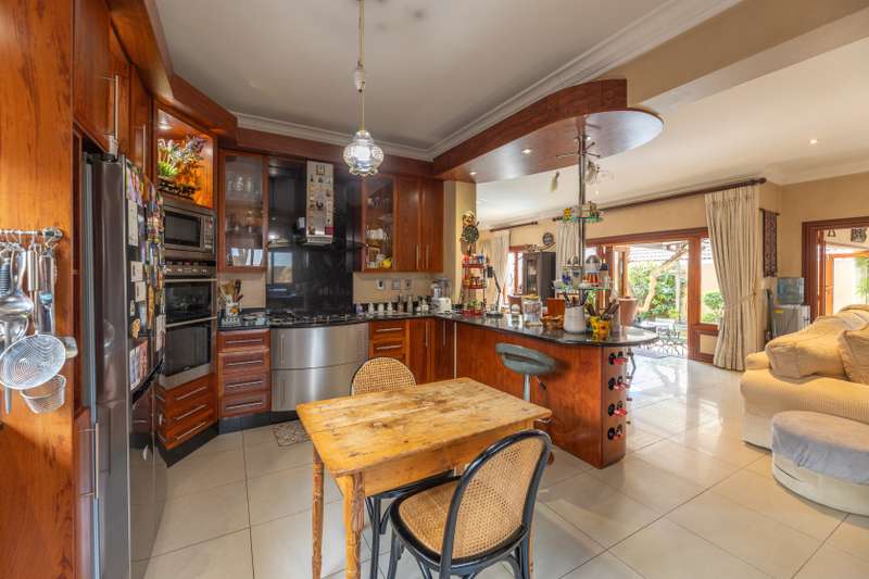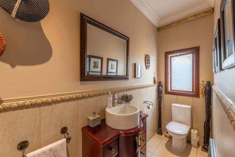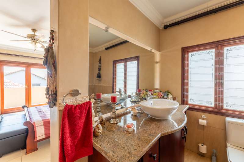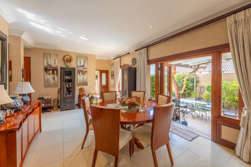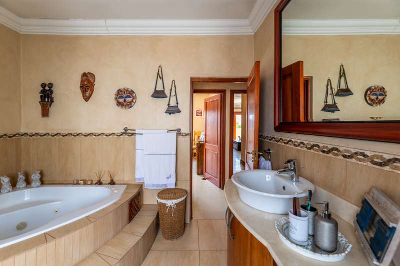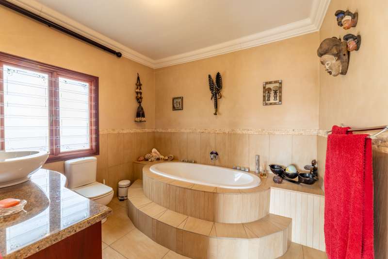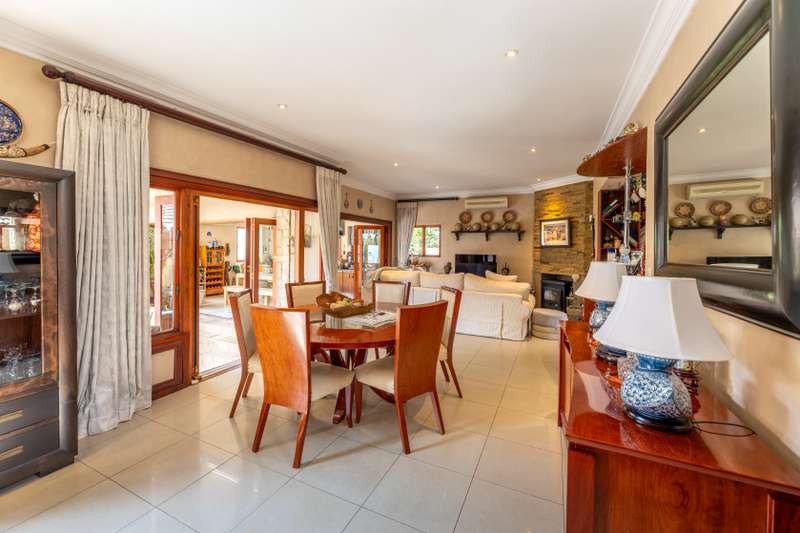 Sunlight pools in the curve of a freestanding spa bath—the image that welcomes you—and from that quiet, restorative moment, the house unfolds like a well-told story. This north-facing, modern country home in Broadacres Country Estate is a three-bedroom, three-and-a-half bathroom sanctuary where Tuscan warmth meets contemporary precision: soft stone and warm timber, muted earthy tones and rich teak accents that thread through doors, windows and cabinetry, creating a lived-in elegance that feels both timeless and immediate. From the main bathroom, you move naturally into the heart of the house: an open-plan arrangement where kitchen, dining, and living flow without friction. The kitchen, fitted with a gas hob and high-end finishes, anchors everyday rituals and festive cooking alike; two gas fireplaces create intimate pockets of warmth within the larger entertaining space; and expansive stackable doors slide away to dissolve the boundary between inside and out, extending the living room onto a covered patio and a north-facing garden that catches all-day light. Outdoors, the pool glitters for year-round use while the sprinkler system keeps the low-maintenance planting lush and effortless. The patio reads like a second living room—shaded, spacious, and designed for long dinners beneath the stars—perfect for everything from casual braais to intimate dinner parties. The flow of spaces has been considered for living as much as for showing, so guests naturally drift from conversation to cocktails to the pool without interrupting the house’s easy rhythm. The master suite is a private retreat with a spa bath and separate shower that invite slow mornings and restorative evenings; a tucked-away study provides the focused stillness required for work or creativity, and the guest facilities include a half-bath for convenience. Practicality is woven into the home’s generous list of features: a double garage, solar panels with an inverter, and batteries that speak to thoughtful, modern living. Air conditioning and ceiling fans extend to all bedrooms, and stackable doors ensure seamless transitions that make entertaining effortless while preserving privacy when required. Set within Broadacres Country Estate, the property benefits from landscaped communal gardens and clubhouse amenities—a function venue, pool, playground and jungle gym, soccer goals, tennis court and basketball hoop—that create a neighbourly backdrop of activity and connection. Built to perform on market day and to nurture everyday life, this house balances hospitality with retreat: a home that welcomes gatherings, honours solitude, and promises a lifestyle of warmth without fuss.