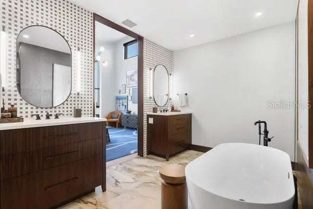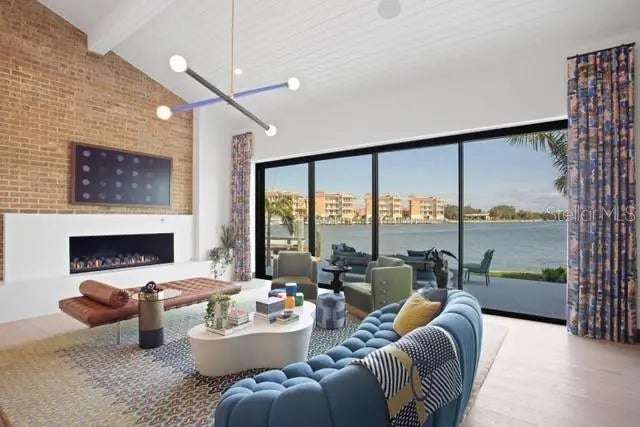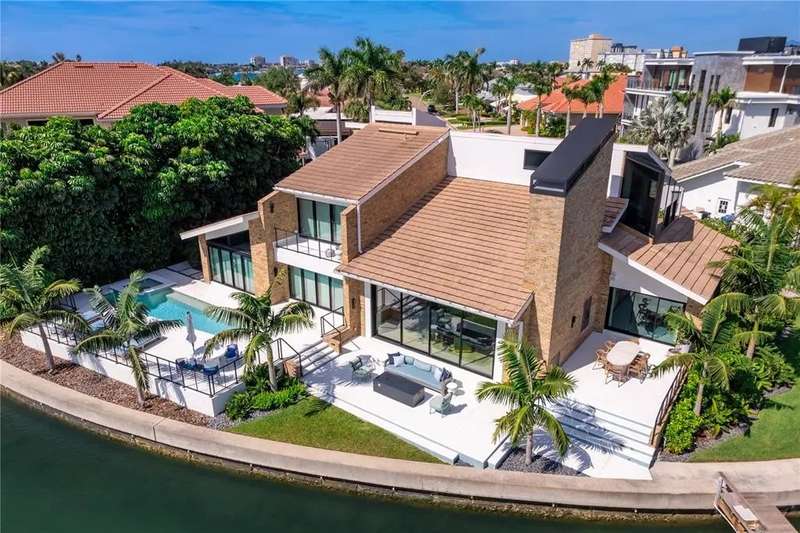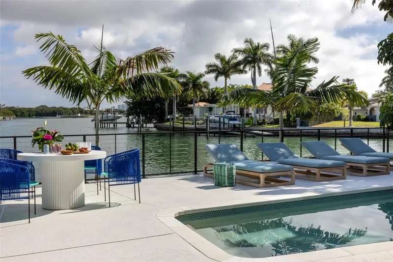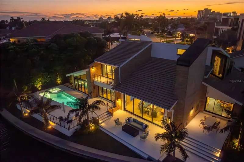 A rare architectural jewel where every room captures breathtaking views, this Bayway Isles estate is both a Mid-Century Modern masterpiece and a serene retreat. Reimagined in 2023 by acclaimed designer Lisa Gilmore, every element of the extensive renovation was curated with intention, blending bold style and sophistication with modern comfort, safety, and convenience. Featured in Florida Design and showcased by Architectural Digest, the home reflects the perfect balance of architectural significance and contemporary luxury. Seven sets of expansive impact-rated glass doors frame 161 feet of waterfront, uniting modern protection with a design that invites the outdoors in. Outside, lush tropical landscaping, expansive waterfront terraces, an outdoor speaker system, and a sparkling pool and spa make this home the perfect luxury retreat and an entertainer’s dream. Inside, soaring vaulted ceilings and exquisitely composed spaces strike a balance of drama and refinement. The chef’s kitchen is a true centerpiece with bespoke cabinetry by T2theS, a custom brass bar, and a hidden door that leads to an oversized mudroom and pantry. The primary suite boasts a private glass atrium that immerses you in nature and reflects the glistening water, paired with a spa-like bathroom featuring a jetted steam shower and soaking tub. Each of the four bedrooms and four-and-a-half baths has been expertly curated to make every space feel special. Additional highlights include hurricane-rated windows and doors, a state-of-the-art movie room, custom cabinetry, and in-ceiling speakers that extend to the outdoor living areas. Voice- activated Lutron Caséta lighting, automated window shades, and a fully integrated smart speaker system ensure effortless control throughout. Two private slips with power provide deep-water, no-bridge Gulf access via 30,000- and 9,000-lb lifts, making this property a true boater’s paradise. Set within Bayway Isles, a 24/7 guarded community, just minutes from downtown St. Petersburg and the beaches, this home offers both tranquility and convenience. More than a residence, it is a statement of vision, artistry, and refined modern living. Schedule your private tour today.