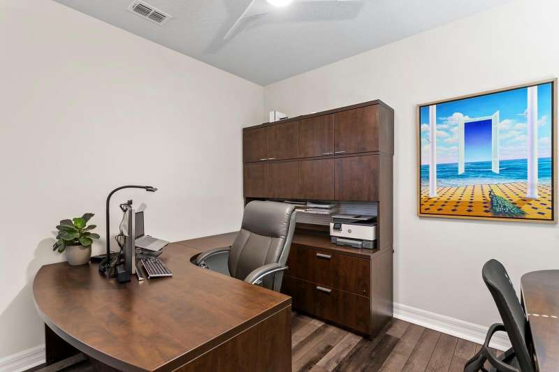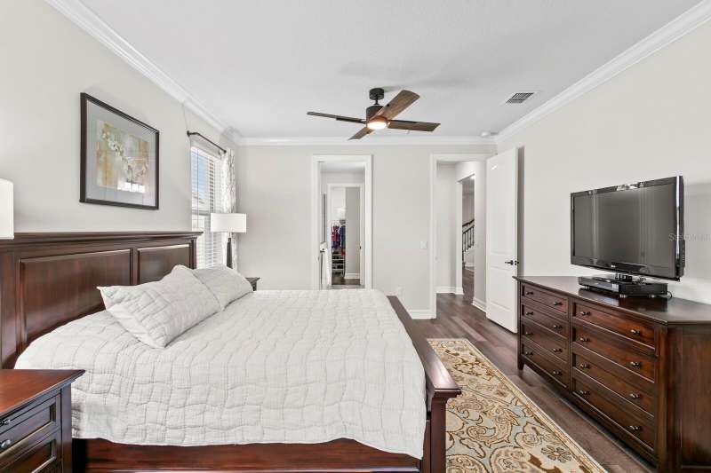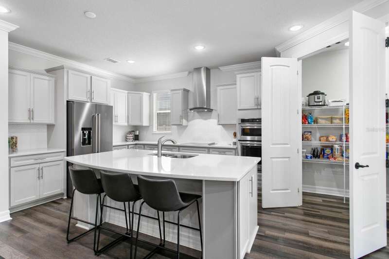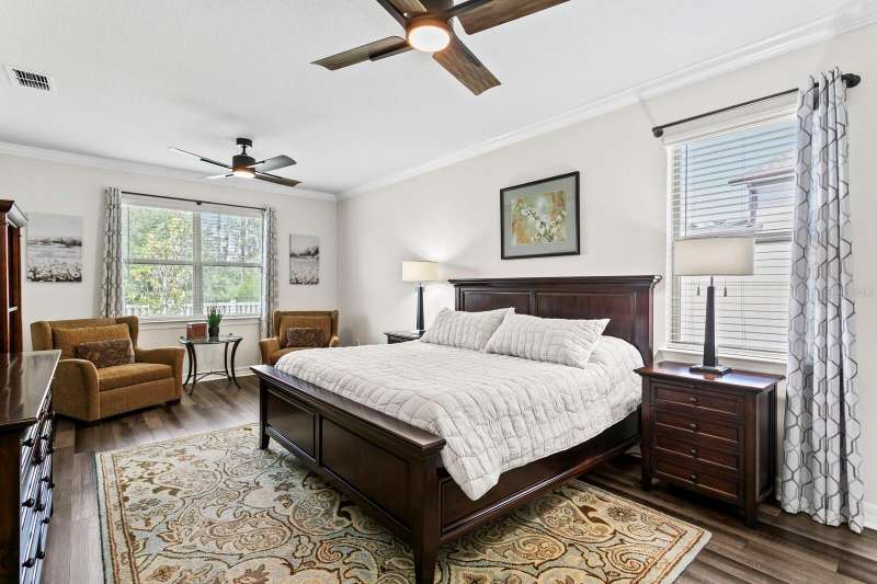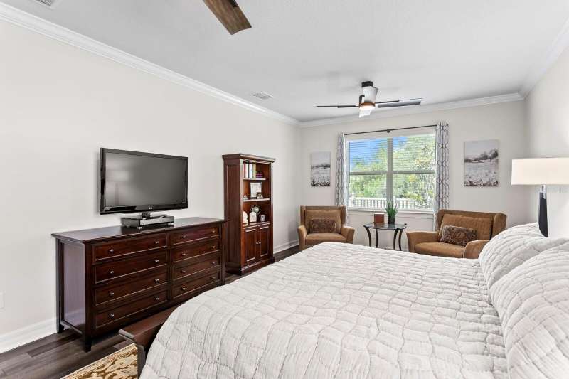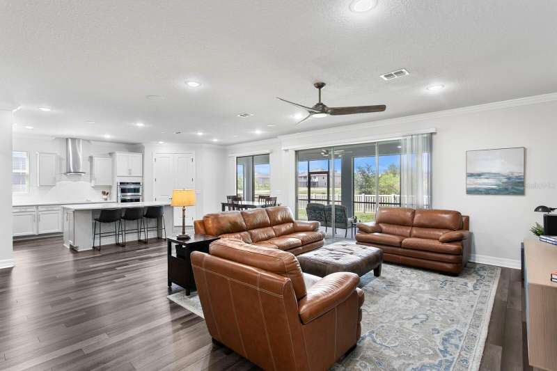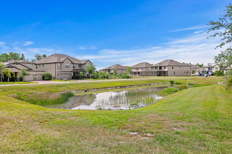 Under contract-accepting backup offers. One or more photo(s) has been virtually staged. Welcome to 19204 Briarbrook Drive, a beautifully upgraded Dockside Grand floorplan built in 2021. With 6 bedrooms, 4 full baths, and over 4,100 square feet of living space, this home is truly a standout in one of the area's most desirable gated communities. Enjoy all the benefits of a pool without the upkeep, just 2 minutes away, the community center offers a beautiful resort-style pool! This home has been meticulously maintained and move-in ready with every upgrade already done for you! The heart of the home is the showstopper kitchen designed to impress with an extended quartz island, high-end KitchenAid stainless appliances (including a 5-burner cooktop and wall oven/microwave combo), custom staggered cabinetry with crown molding, a herringbone tile backsplash, and a massive walk-in pantry. It's the kind of space that instantly feels like the hub of the home—perfect for both entertaining and everyday life. Just off the foyer, a private guest wing with two bedrooms and a full bath can be closed off with a pocket door—ideal for multigenerational living, dual home offices, or visiting guests. The first-floor *primary suite is a retreat all on its own*, complete with crown molding, comfort-height dual vanities, quartz counters, and an oversized walk-in shower with rain head. Three additional full bathrooms have all been upgraded with granite countertops, stylish tile accents, and comfort-height cabinets. The upstairs loft/media room is pre-wired for 7.1 sound and may be used as a movie room, playroom, gym or secondary living space. Every detail was thoughtfully designed from the 8' doors and oversized trim to the wrought iron staircase balusters and retractable triple-stacking sliders that lead to your screened lanai. Enjoy the outdoors? This oversized 0.23-acre lot that backs to a serene pond with conservation views, and has space to add a pool (pre-wired, too). The 3-car garage features epoxy floors and added electrical outlets. The home is energy efficient, with concrete block construction, radiant barrier roof sheathing, programmable thermostats, and dual-pane Low-E windows. Smart home prewiring, in-ceiling speakers, CAT6 ports throughout, security prep, and even lanai audio bring convenience and luxury together. The community, It’s gated, gorgeous, and packed with resort-style amenities: a clubhouse, community pool, tennis and pickleball courts, playgrounds, walking trails, and a fishing pond. And with low HOA fees, it’s as affordable as it is beautiful. From the premium fans to the UV-C systems on both ACs, no detail has been missed. Homes like this on conservation lots with premium upgrades are a rare find indeed!