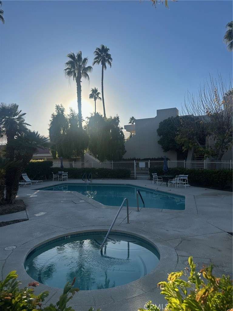 Motivated Sellers! Huge Price Reduction! Come check this out before it's gone! By Far the lowest price 2 bedroom in the entire community. Imagine waking up every day in your serene Cathedral City oasis, where you can bask in the glorious Palm Springs sunshine without the steep Palm Springs price tag. This charming Condo offers the perfect blend of comfort and affordability and is ideally located just 5 miles from Palm Springs. The Gate guarded community of Candlewood Villa's has low HOA dues, and offers privacy and security and Resort-Style amenities. It is ideally located well of the main road down a quite street. Candlewood Villas offers Two large pools and 2 spas, and even a tennis court! This upgraded Condo is the only 2 bedroom unit currently for sale in this community. As you step inside, you're greeted by a bright and spacious living area with high ceilings and large windows that invite natural light to fill the room. The open floor plan seamlessly connects the living, dining, and kitchen areas, creating a warm and welcoming atmosphere for both relaxation and entertaining. The master bedroom has an a large closet with built-in shelving and has an upgraded bathroom with modern finished and USPA High-End toilets in both bathrooms. Step outside onto your private patio, with an enclosed Laundry room with Washer and Dryer included. This property also has NEW HVAC in 2023. You can unwind in the shade of mature trees and privacy You will be just a 5 Minute drive from the bustling heart of Palm Springs. Enjoy easy access to world-class golf courses, trendy boutiques, gourmet restaurants, and exciting entertainment options. Embrace the best of both worlds--luxury living without the luxury price. Additionally, this property would make an ideal second property an/or a great investment property with 30+ day rentals OK, Don't miss the opportunity to make this beautiful Cathedral City home your own. Experience the Palm Springs lifestyle at a fraction of the cost and start creating unforgettable memories in your new desert paradise.