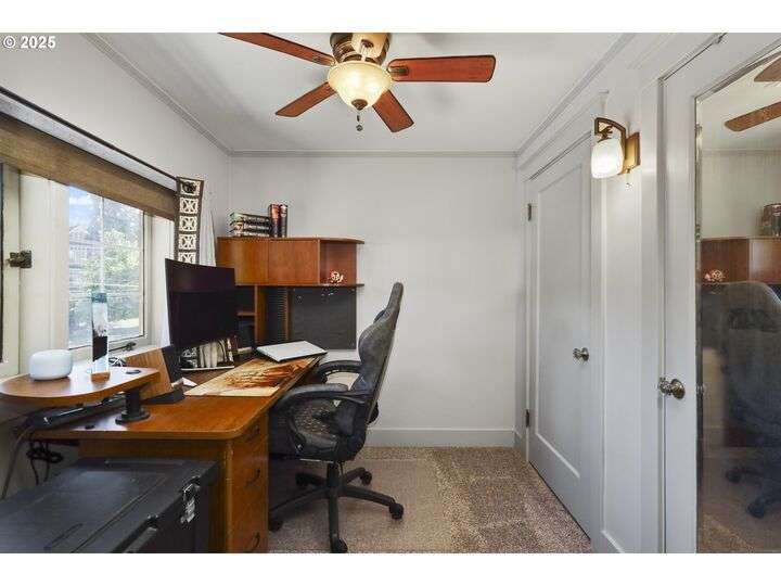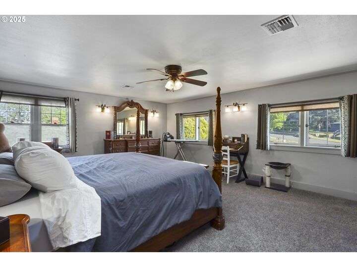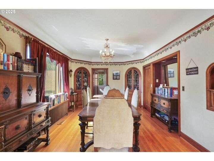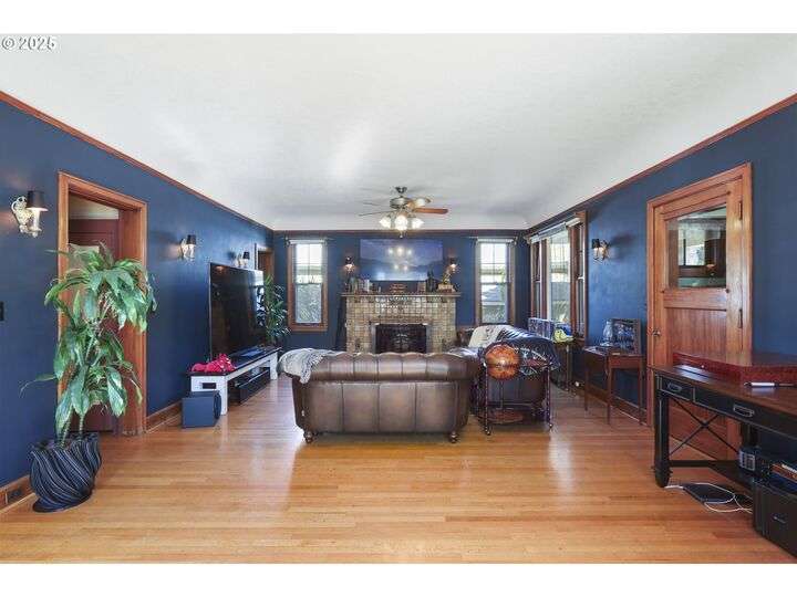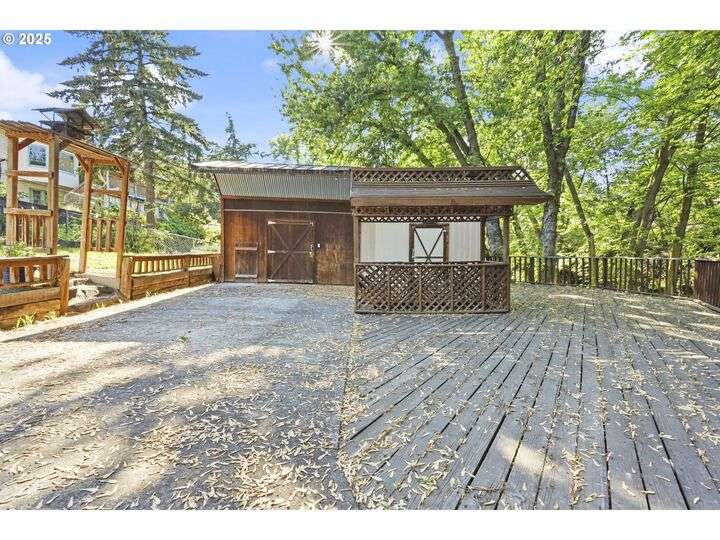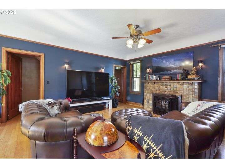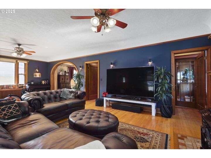 ASSUMABLE VA LOAN, check with agent for details. Charming historic home with separate living quarters and modern upgrades! The lower level features its own private bedroom, kitchen, laundry room, and living area—perfect for multigenerational living or guest space. Just steps from downtown The Dalles, this 4-bed, 2.5-bath brick beauty sits along Mill Creek and offers 3 levels, 2 kitchens, 3 decks, and 3 shop spaces. Enjoy a massive main-level living room, formal dining, and updated kitchen with tall cabinets, cooktop, double ovens, and drink bar. Upstairs features 3 bedrooms, including a primary suite with walk-in closet/office area. Outside, relax on the two creekside decks or unwind by the fountain on the covered front porch. The converted garage/shop is powered, plumbed for air, and climate-controlled. With multiple storage areas, tankless hot water, and two heat pumps, this one blends historic charm with modern convenience. Don’t miss the 3-D tour and schedule your showing today!