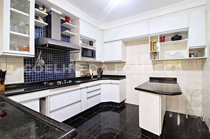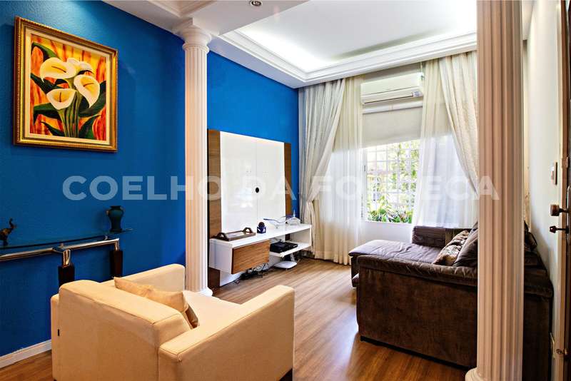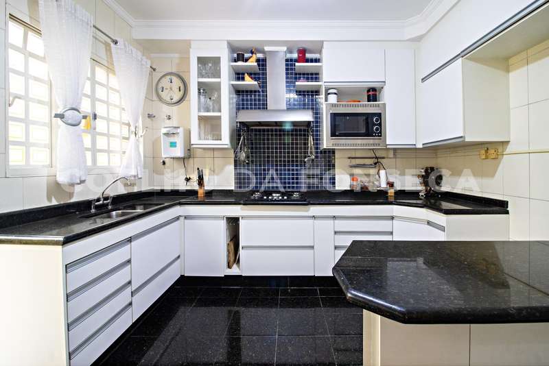 No pavimento térreo há living para 3 ambientes,2 dormitórios, lavabo, cozinha, churrasqueira e 4 vagas.
