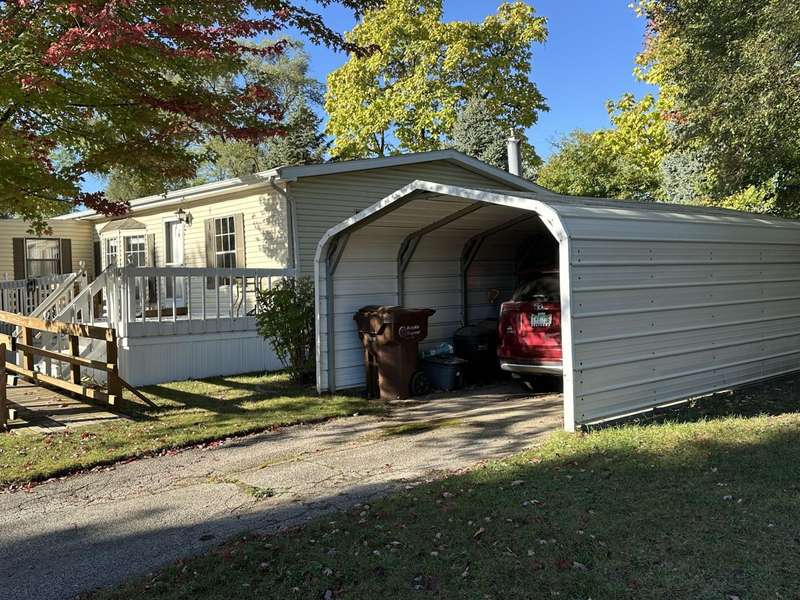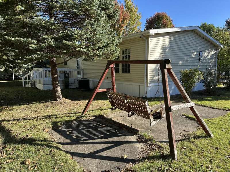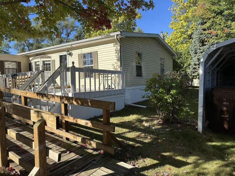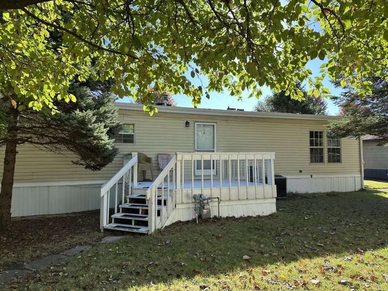 Welcome Home! This well-maintained 1988 manufactured home offers exceptional value on a spacious double lot with a private backyard. Enjoy both a front deck with a newer handicapped assessible ramp for easy access and a back deck thats perfect for relaxing or entertaining. Inside, youll find 2 full bath & 3 comfortable bedrooms and a cozy living area highlighted by a gas fireplace, an inviting spot to unwind at the end of the day. Featuring a 21 x 12 carport keeping you & your car out of the weather along with 2 storage shedsRecent updates include a new furnace (2025), central air (2017), roof (2015), and water heater (2021). All appliances stay, making your move-in simple and stress-free. Great affordability at only $50,000. Monthly lot rent of $611.95 includes trash, water, and sewer.No car? No problem! Centrally located close to Lowes, Walmart and more!Franklin Woods offers inground pool, playground & clubhouse. Pets are welcome. Buyers must be approved by the park