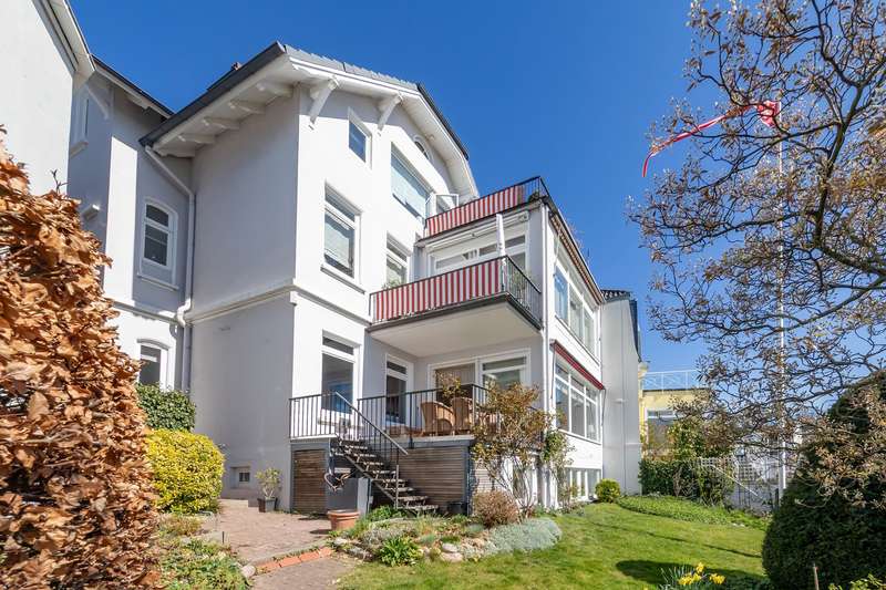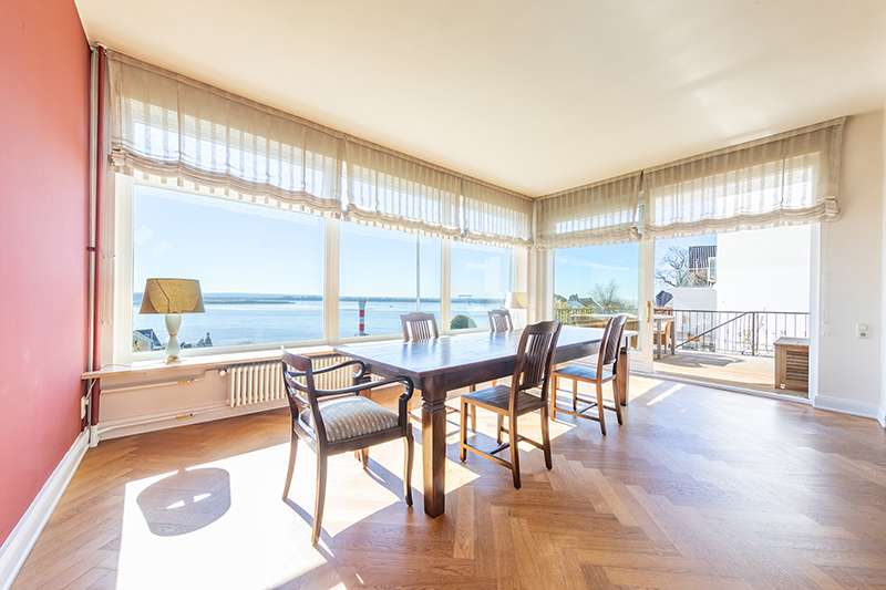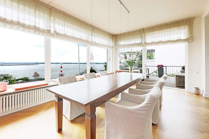 Are you looking for an exclusive property with plenty of space in a quiet location that is centrally located and offers a sensational view of the Elbe? Then you have now found your dream apartment! The maisonette on offer here with a "house-in-house" feeling is located in a listed art nouveau villa with a total of three units, which was built around 1904 and has been constantly maintained. The following work has been carried out in recent years: 2008: Enlargement of the terrace deck with a steel structure and resurfacing with teak floorboards 2013: Renovation of the staircase 2013: Horizontal barrier, sealing of the wall surfaces and perimeter insulation in one of the first floor rooms facing the street and the bathroom on the garden floor 2017: Installation of a sensor-controlled non-return valve in the laundry room 2018: New rainwater pipe laid, replacement of the mixed water pipe, installation of an inspection chamber 2021: Painting of the façade The apartment was modernized in the 1990s. Originally preserved contemporary style elements were refurbished and are now in very good condition. The wooden windows were also replaced, with the exception of the sliding door to the terrace deck. This maisonette extends over approx. 125 m² of living space on the first floor and approx. 53 m² of living space on the garden level as well as approx. 12 m² of usable space. The spacious entrance area leads you into the heart of the apartment, the representative living and dining area, which has a southwest-facing terrace deck and offers a fabulous view of the Elbe. When you sit at the table in the dining area, you can enjoy the view of the Elbe in both summer and winter. So you can take in this beautiful view and watch the ships while enjoying a cozy dinner inside or lunch outside on the terrace deck. The SieMatic kitchen is equipped with modern electrical appliances and has a fine country house charm. There are also two further generously sized bedrooms and a shower room on the first floor level. The private wing of this beautiful apartment is particularly well thought-out: separated from the "official" area of the apartment by a white, sisal-covered wooden staircase, the garden level features an Elbe-view office, a shower room, a utility room, two storage rooms and the relaxation area with dressing room, which also offers a wonderful view of the Elbe. This is a great way to start the day. The use of the garden on the communal plot is another highlight that reflects the "house within a house" character. Particularly noteworthy are the charming character of the old building, thanks to the numerous, well-preserved stylistic elements, the spaciousness and the property, which is divided into three different levels and offers a fantastic view of the Elbe as far as the Neßsand nature reserve. Let us inspire you - we look forward to your viewing request!