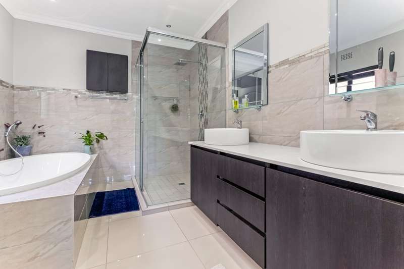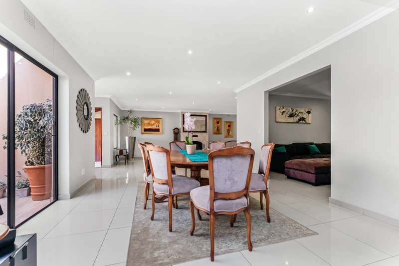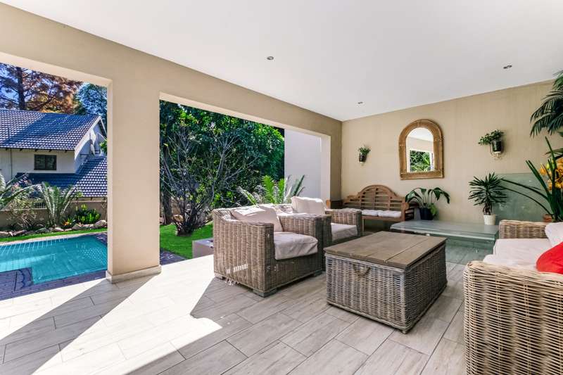 3 bed, 2.5 bath tastefully furnished and spacious house measuring 314sqm floor size in good condition; 3 generously sized tiled reception areas with access to a lovely covered balcony with private garden + pool. Stunning open plan kitchen with granite tops, 5 plate gas hob with extractor fan, double door fridge, centre island with breakfast bar and separate scullery with two water appliances + space for a tumble dryer. Separate passageway to the generously sized bedrooms, 2 beds share a full bathroom and main bed is ensuite with full bathroom, huge mirrors and lovely dressing area, with sliding door affording access to the garden. Atrium, double auto garage, secure offroad parking, DSTV and fibre. There is a separate attractive 2 bed + 1 bath furnished cottage that can be used as extra bedrooms or work from home with separate entrance at an additional R15 000.00 / month. Full electric fencing around perimeter, beams, alarm and CCTV camera. Situated in a boomed area, near the Sandton CBD, very close to the French school and other desirable private schools, shopping centres, exclusive restaurants, international hotels and the Gautrain. Available Immed
