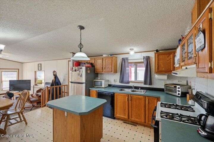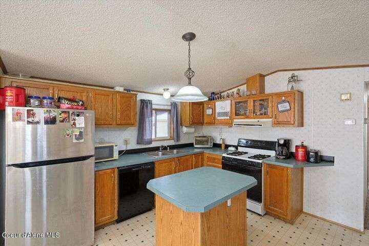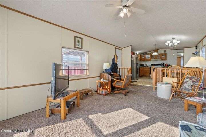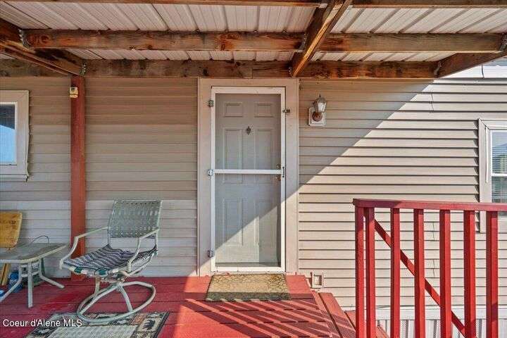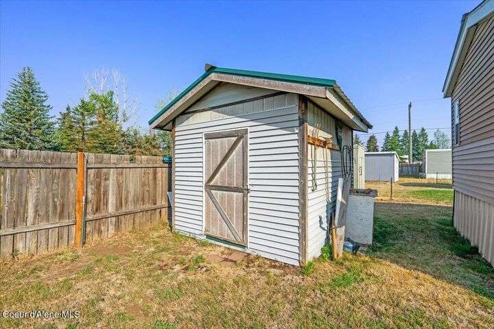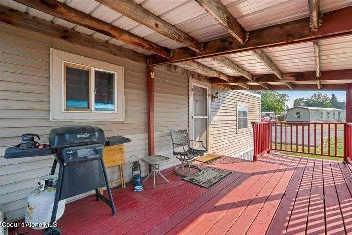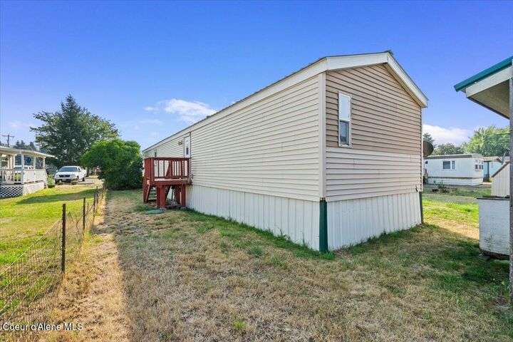 Back on market no fault of seller! This 2-bedroom, 2-bathroom home offers 1,024 sqft in a peaceful, 55+ community in Hayden. The inviting, open-concept living and dining areas provide a warm, welcoming atmosphere, with plenty of natural light. The kitchen comes complete with essential appliances, including a fridge, washer, and dryer. Stay cool during the warmer months with two window AC units. The exterior boasts a large covered deck, ideal for outdoor relaxation or entertaining guests. Additional storage is provided by a convenient shed, perfect for all your gardening or outdoor supplies.