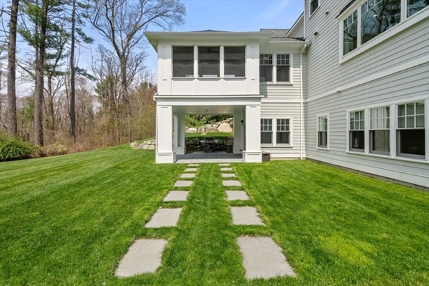 Quality construction and fine finishes define this sophisticated residence tranquilly sited on one of Weston's most coveted streets. This exceptional home offers over 8200 sqft of luxurious living space w/soaring ceilings throughout. Expansive foyer opens into airy floor plan including formal living w/fireplace, spacious dining room, private office, gourmet kitchen w/custom cabinetry & large center island opening to a family room w/fireplace. Completing 1st floor are 2 powder rooms, mudroom & screened porch overlooking picturesque private grounds. Second floor features stunning primary suite w/fireplace, 2 walk in closets & lavish bath, 2 ensuite bedrooms, two bedrooms with Jack & Jill bath & laundry room. Lower level offers, gym, stunning bar, bonus room w/full bath, additional family & play areas w/sliders to patio. With its unparalleled craftsmanship, close proximity to top rated schools & Boston, this home is the perfect blend of optimal location, modern luxury & timeless elegance.
