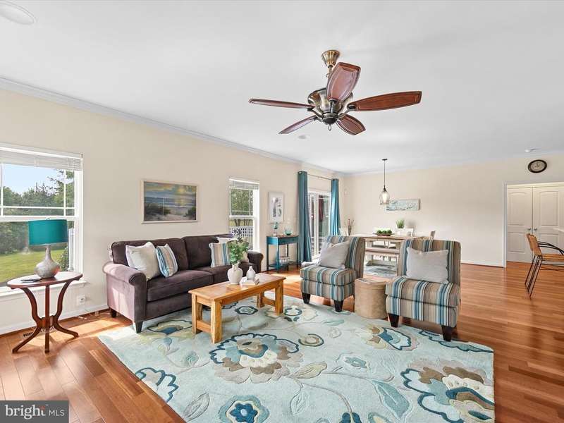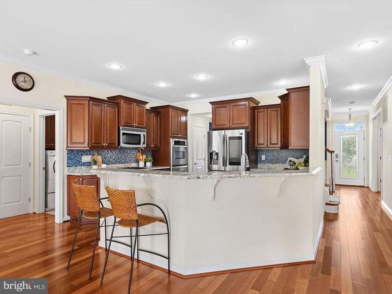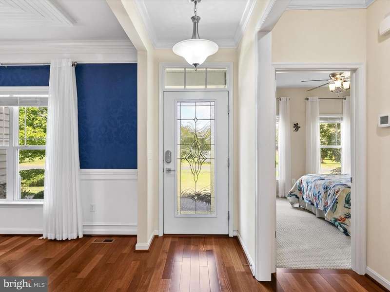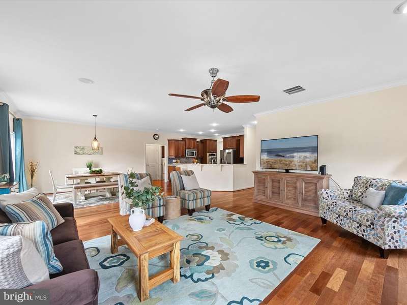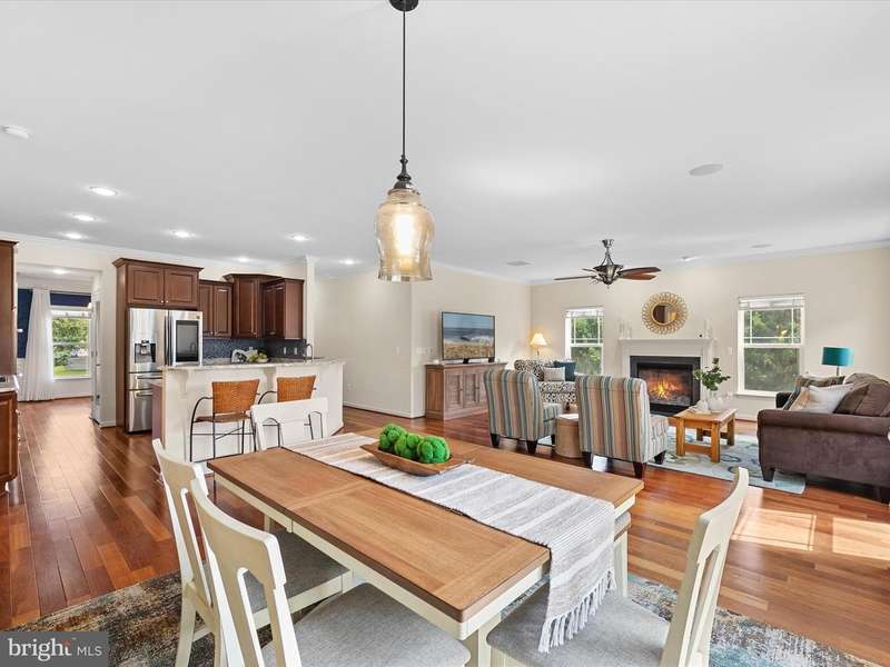 Introducing 18963 Beaver Creek Trail, an elegant residence perfectly positioned on a spacious corner lot in the established Trails at Beaver Creek community. Just minutes from the resort towns of Lewes and Rehoboth Beach and the historic charm of Milton, this location offers the best of coastal Delaware living-beaches, shopping, dining, entertainment, and endless miles of shoreline to explore. Originally built as the community's model home, no detail was overlooked in creating this showcase of craftsmanship and style. From the moment you arrive, the lush custom landscaping and attention to detail set the stage for what awaits inside. A welcoming covered entry opens to three levels of thoughtfully designed living and entertaining spaces. Inside, architectural details abound, precise millwork, crown molding, wood ceilings, and gleaming hardwood floors carry throughout the main level, reflecting the home's superior build quality. At the heart of the home lies the gourmet kitchen, appointed with rich 42-inch cabinetry, sparkling granite counters, and a full suite of energy-efficient stainless-steel appliances. A deep walk-in pantry with custom built-ins provides a place for every culinary tool, making this space as functional as it is beautiful. The kitchen flows seamlessly into the inviting living room, where family and friends can gather, or enjoy casual meals at the breakfast bar. For formal occasions, the dining room makes a lasting impression with paneled millwork walls and a wood medallion ceiling accented by a striking light fixture. The main-level primary suite offers a private retreat, spacious enough for a sitting area or home office. The spa-like ensuite bath features dual vanities separated by a custom storage tower, an expansive walk-in shower, and two large walk-in closets, one with custom built-ins. Two additional guest bedrooms, laundry room with utility sink and storage and a well-appointed hall bath complete this level. Upstairs, a cozy loft-style family room sits at the center of two more guest bedrooms and a full bath, creating the perfect space for guests or extended family. The home's lower level is nothing short of remarkable. A finished walk-out basement with custom woodwork and unique spaces offers limitless possibilities, an entertainment lounge, home gym, hobby room, or game space, really you could do it all. With its open design and detailed craftsmanship, this level is ready to adapt to your lifestyle. Step outside and the backyard reveals a park-like escape. Blooming crepe myrtles, magnolias, and landscaped gardens frame serene pond views, complete with the soothing sound of a fountain. The elevated deck provides multiple options for outdoor living and entertaining. As the builder's original model, this home was designed to impress, and it continues to stand as a true showstopper-a blend of timeless craftsmanship, versatile living spaces, and a stunning setting near Delaware's most treasured coastal towns.