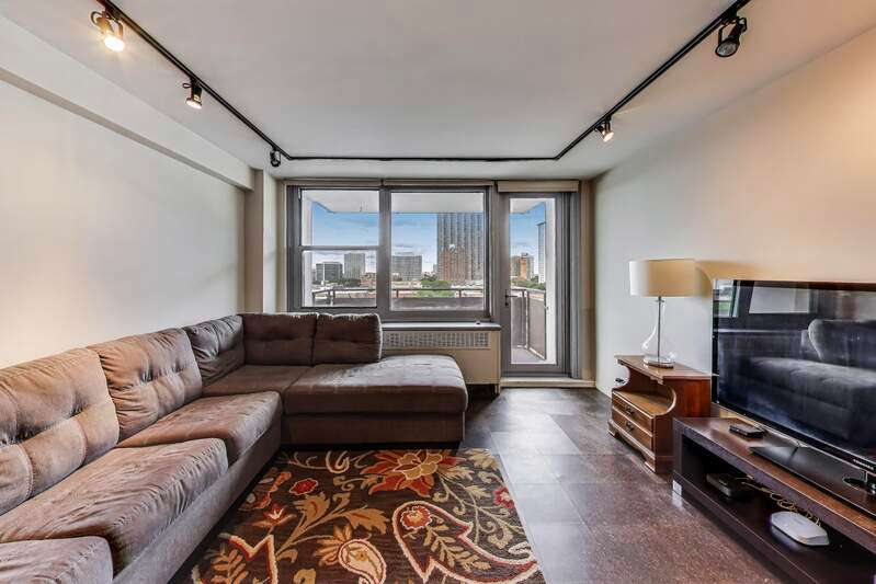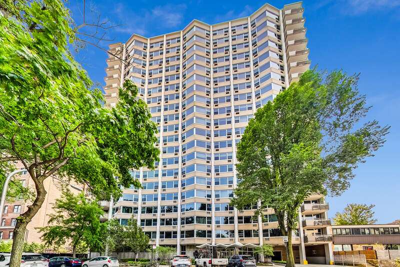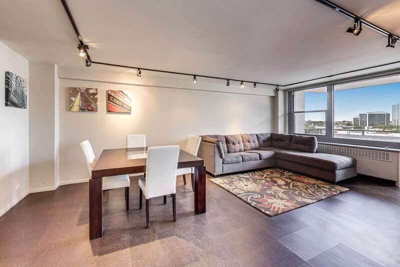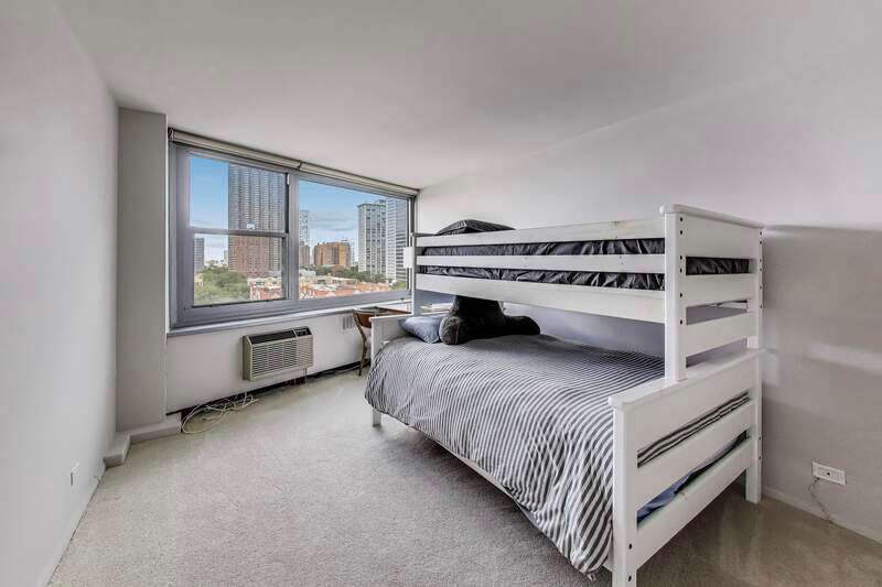 SPACIOUS, CORNER UNIT IN EAST LAKEVIEW. UNOBSTRUCTED VIEW OF WRIGLEY AND PEEK OF LAKE FROM HIGH FLOOR BALCONY. UPDATED & OPEN, DESIGNER KITCHEN HAS CUSTOM CABINETRY, KITCHENAID APPLIANCES & GRANITE COUNTERS. LARGE LIVING SPACE EASILY ACCOMMODATES A DINING TABLE AND LARGE COUCH. GORGEOUS, SUSTAINABLE CORK FLOORS THROUGHOUT KITCHEN AND LIVING ROOM. 5 LARGE, ORGANIZED CLOSETS PLUS LINEN & STORAGE UNIT IN BASEMENT. WELL MANAGED ASSOCIATION AND HIGH AMENITY BUILDING IN INCREDIBLE LOCATION: POOL, SUNDECK, PARTY ROOM & VALET GARAGE PARKING AVAILABLE. NO RENTAL RESTRICTIONS. PLEASE NOTE, CATS ONLY.