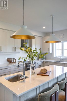 Winter Seasonal Lease - Stunning Luxury Designer Home with Ski Hill Views and Resort Amenities. Experience the best of winter living in this professionally designed 4-bedroom, 4-bathroom home, perfectly situated between the Blue Mountain ski slopes and the charming town of Collingwood. Spanning three levels of refined living space, this stunning home offers elegance, warmth, and comfort at every turn. The main floor features an inviting open-concept layout where the great room boasts a cozy fireplace, expansive windows, and views of nature and the ski hills. The designer kitchen, equipped with high-end finishes and a spacious island, opens seamlessly into the dining area, creating an ideal space for entertaining and gathering. Each bedroom has been thoughtfully curated and beautifully decorated with comfort and elegance in mind, providing guests with a serene, hotel-like experience. A dedicated home office, styled with sophistication, allows you to stay connected while enjoying your mountain retreat. The finished walk-out basement adds even more space to relax and unwind featuring a family room with large windows overlooking a tranquil pond, as well as the fourth bedroom and a modern bathroom. Step through the sliding glass doors to your private backyard oasis, where winter landscapes create a peaceful backdrop. Residents enjoy year-round access to exceptional amenities, including heated indoor and outdoor pools, a fitness centre, sauna, and picturesque walking trails. Just minutes away are Blue Mountain Resort, the Scandinave Spa, and the boutiques and fine dining of downtown Collingwood. This exquisite home offers a rare opportunity to lease a fully furnished, designer residence in one of the areas most desirable communities. Available for the 2025 Winter Ski Season (Dec 1/15th to April 1st/15h). Escape to elegance, comfort, and mountain living at its finest. (id:16999)