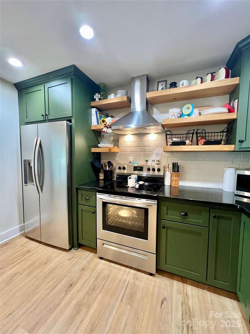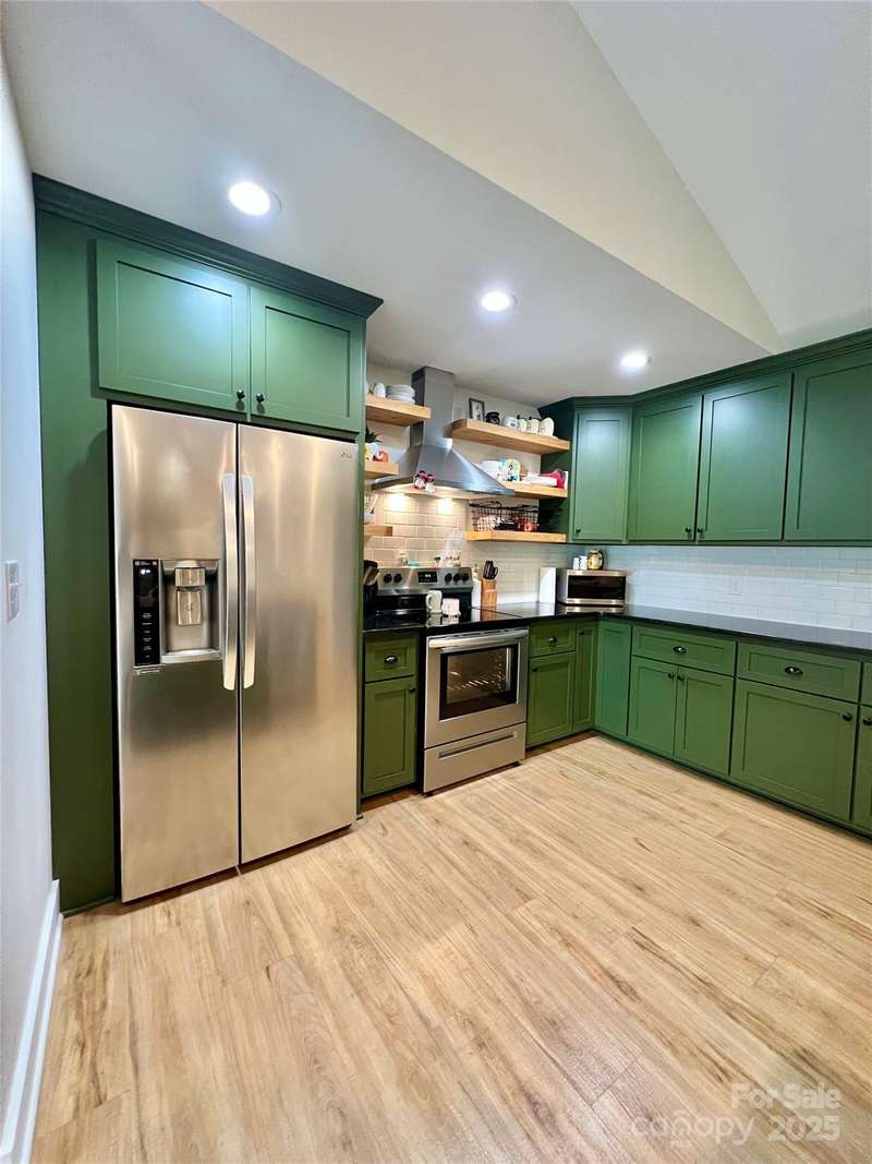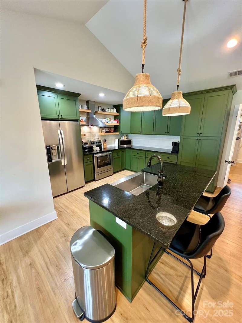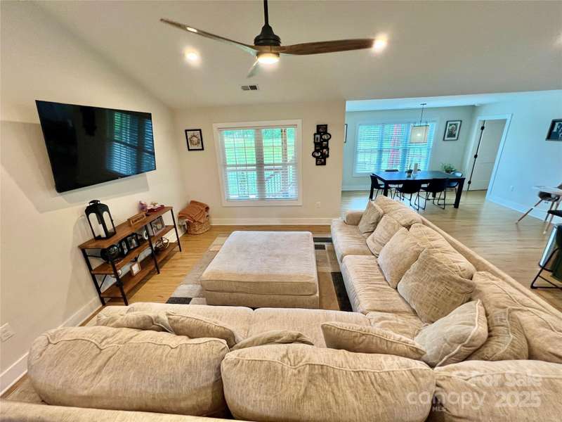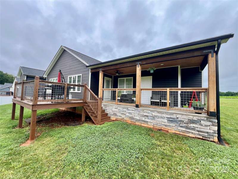 Like new property on almost an acre 3br/2ba near Lake Hickory. As you walk into the foyer in the front door, you will feel the spacious open area with vaulted ceilings, recessed lighting and LVP flooring. 8ft ceiling in the dining area and an island with kitchen sink and granite counter tops. Open wood shelves add character and includes all SS appliances. There is room in the upper cabinet for a microwave with a receptacle. Craftsman country style doors throughout. Step outside the dining area onto the covered rear porch accented with stained timber and beaded pine ceiling. Utility room is a bonus! There is also a double attached garage on the house, but also features a detached garage (437sf). There's plenty of storage area in this one level property that includes pull down attic space as well.