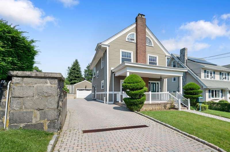 Welcome to this spacious and inviting Colonial home nestled in the sought-after Woodstock Manor neighborhood of Yonkers, NY! Ideally located near public transportation and schools, this beautifully maintained residence is moved in ready and offers both convenience and comfort. Step onto the welcoming covered front porch, perfect for relaxing morning or evening chats. Inside, you'll find a bright and open-concept kitchen and dining area, ideal for both everyday living and entertaining. The living room features a classic wood-burning firepace adding warth and character to the space. With 4 generously sized bedrooms, 2 full bathrooms and an additional half bath, there's plenty of room for family, guests or a home office setup. The partially finished basement provides added flexibnility - perfect for a playroom, rec area or extra storage. Outside the home boasts an expansive driveway with ample parking, a grassy yard perfect for relaxing and playtime, plus a 1-car detached garage for adde