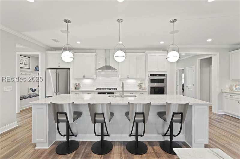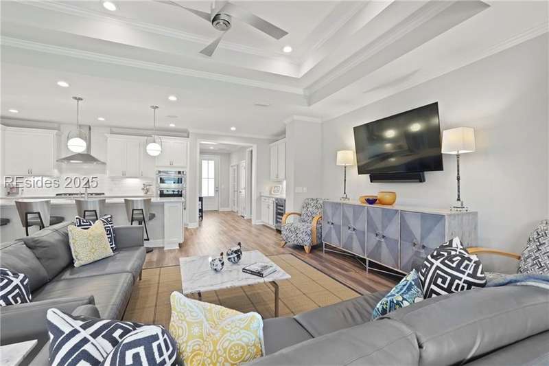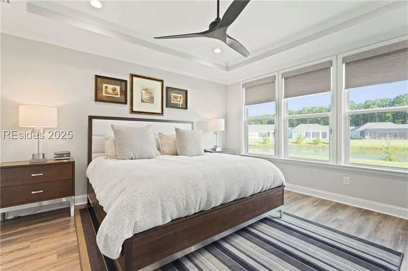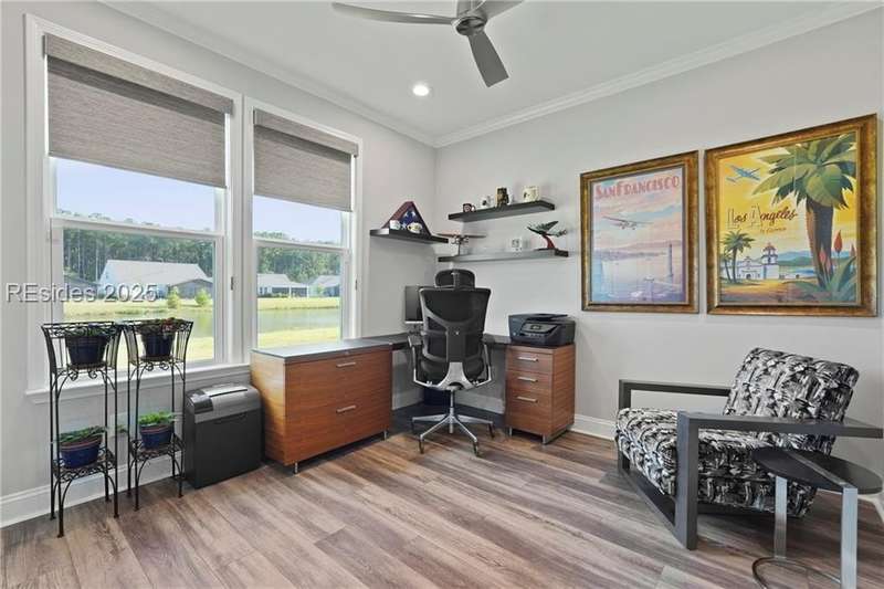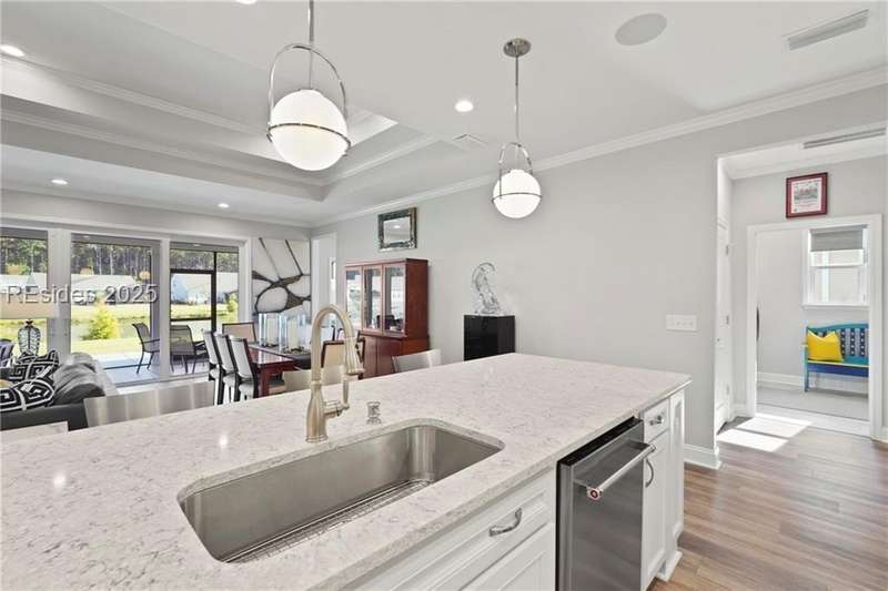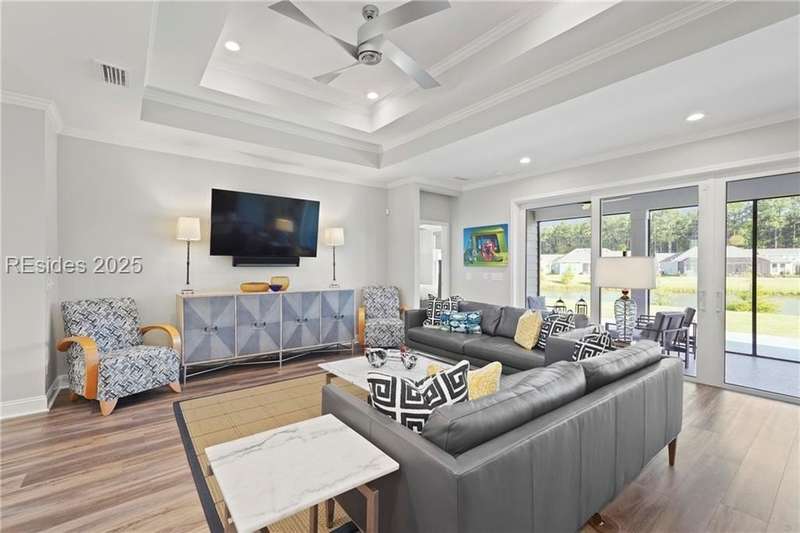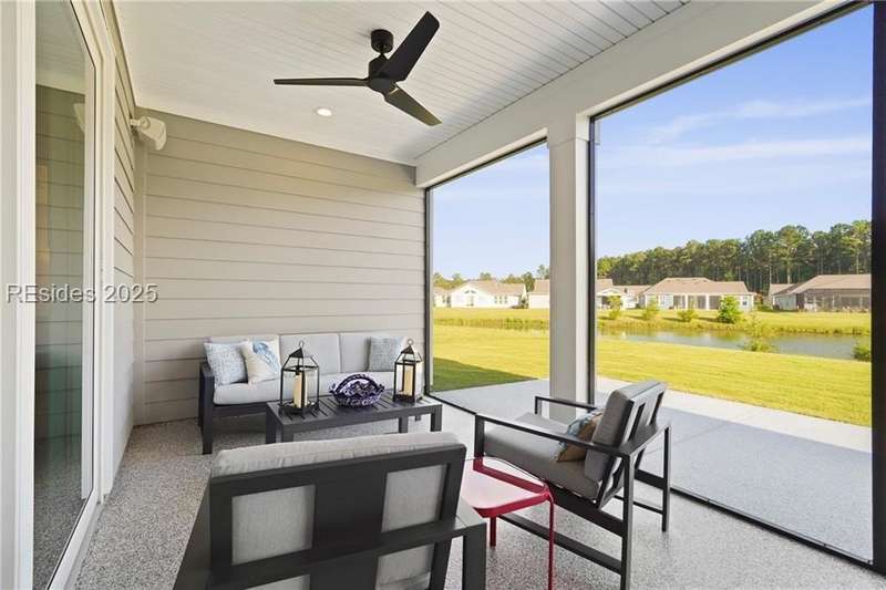 Welcome to this stunning 3BD/2.5BA Stardom model perfectly positioned on a serene lagoon w/a fabulous outdoor living space in Sun City! The gourmet kitchen is a chef's delight featuring quartz countertops, 5-burner gas range, double ovens, roll-out shelving, spacious pantry, under cabinet lighting & beverage center w/wine rack & wine refrigerator. The home showcases LVP flooring throughout, drop zone, 3 car garage, epoxy floors on the covered front porch/lanai/garage & a laundry room w/custom desk & storage. Enjoy the fabulous outdoor living space that includes double sliding doors to a screened lanai & a covered front porch! This home is a must see!