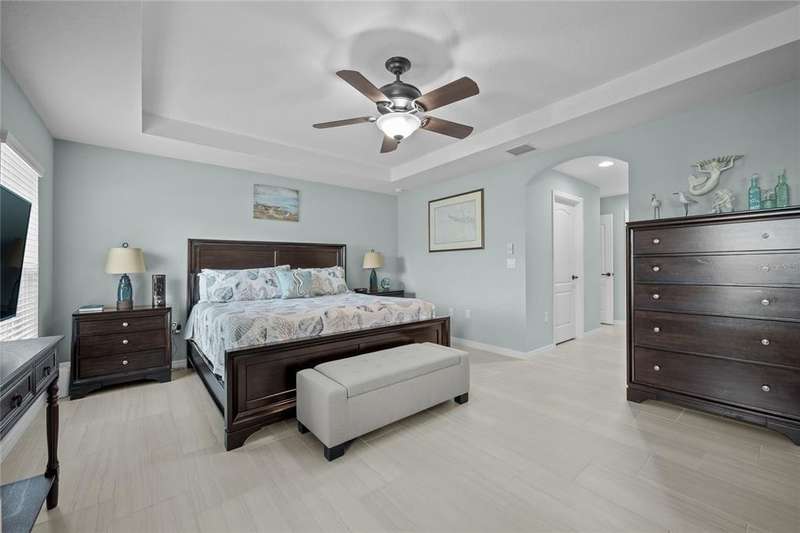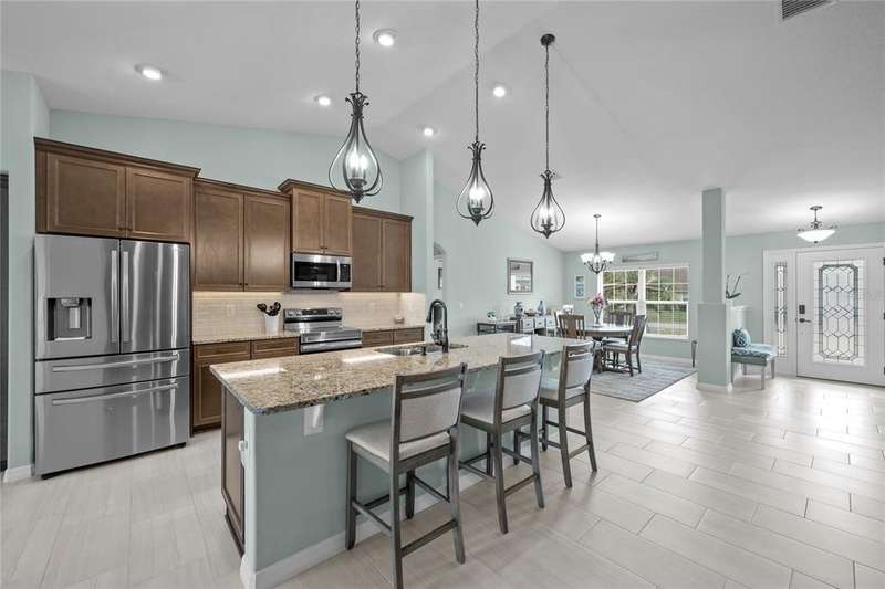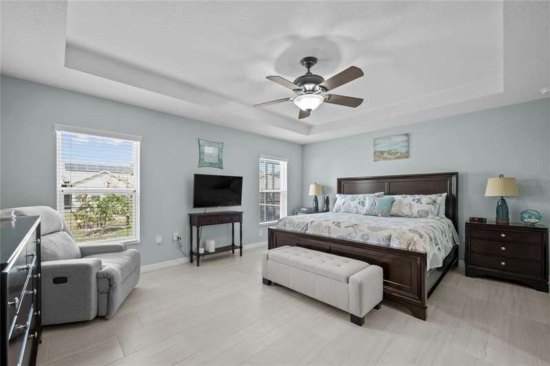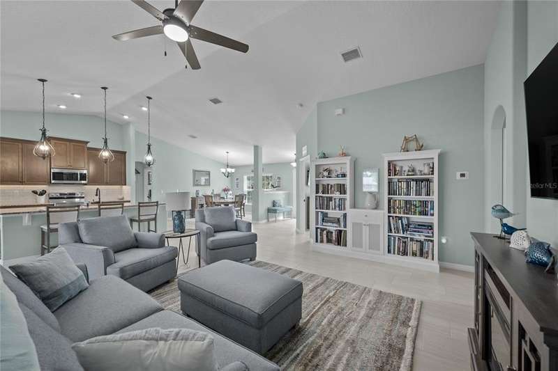Under contract-accepting backup offers. Welcome to Your Dream Home! Nestled in the highly sought-after, Palm Harbor neighborhood, this stunning property boasts four bedrooms, two baths, a three car court yard entry garage, 2,209 sf of luxury, high ceilings and quality ceramic tile throughout. This open concept, Willow floor plan, features unparalleled craftsmanship, extensive builder upgrades, and many added owner enhancements. Step inside to the well-appointed gourmet kitchen featuring granite counter tops, custom cabinetry, upgraded stainless appliance package, tiled backsplash, recessed and pendant lighting, and a California style island that overlooks the sunlit breakfast area with built in buffet. The adjacent formal dining room creates opportunities to add a special touch of magic to holidays and special dates in your family's life. The spacious great room has an abundance of natural light, and a sliding glass door that leads to the screened lanai and private backyard.The primary suite, in a private wing of the home, offers a coffered ceiling, two walk-in closets, and a luxurious master bath with dual vanity, upgraded tile floors, and a walk-in gorgeous tiled and seamless shower. This versatile home is further enhanced by three additional bedrooms, one of which is being used as a den, beautifully upgraded guest bath, a separate laundry room with washer and dryer, and a three-car garage. The beautifully manicured landscaping creates a serene and inviting atmosphere, perfect for relaxing and entertaining guests. The extended screen lanai provides a perfect space for year-round enjoyment and is a great space to host your next cook out or party. Additional highlights include blinds throughout, upgraded hardware, upgraded light fixtures, recessed lighting, ceiling fans throughout, custom interior paint, upgraded front entry door with screen door, rounded drywall corners, interior and exterior TV mounts, upgraded architectural shingle roof, programmable irrigation system, complete gutter package, water softener, Apex garage floor coating, garage door screens, shelving in garage, generator pre-wire, storm shutters, solar attic fan, upgraded landscaping with perimeters and rocks, garage attic pulldown stairs, and side door off the garage. Furniture is negotiable. This exquisite residence is like new and has been meticulously maintained. Schedule your private showing today!