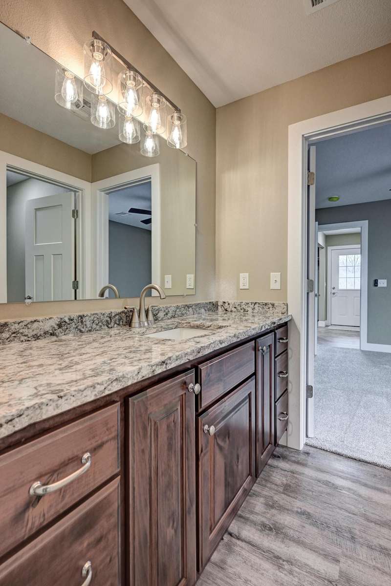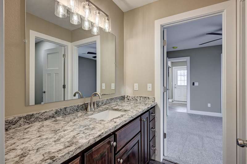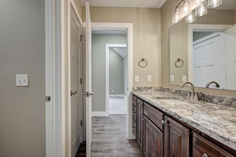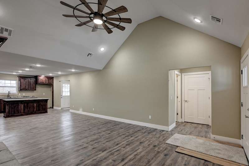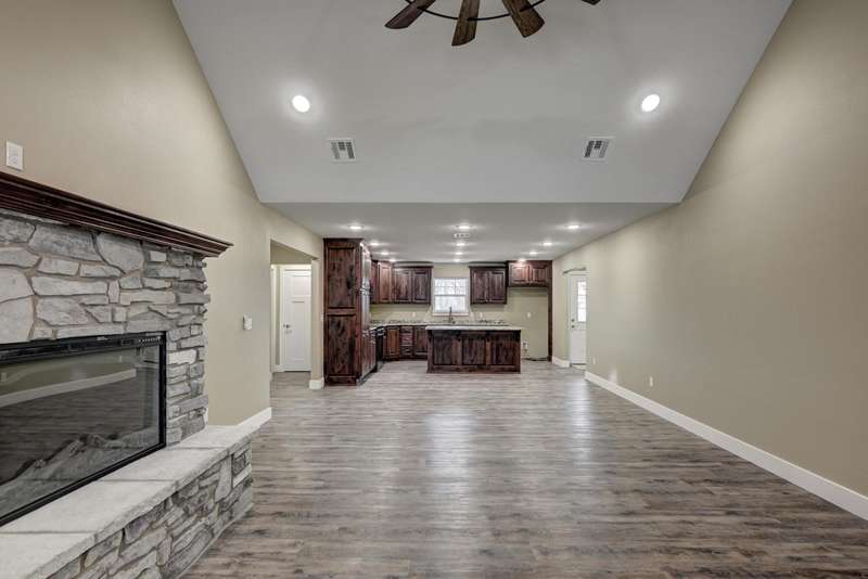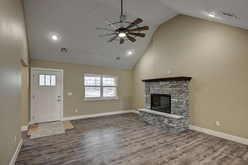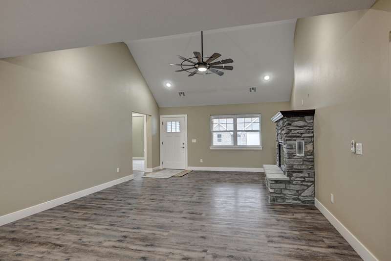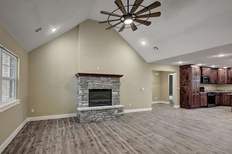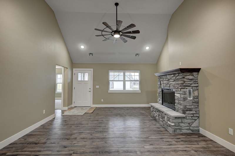 New 2038 SqFt Home in Desirable Subdivision. COMPLETED NEW CONSTRUCTION MOVE IN READY! This brand new 4-bedroom, 2-bath home offers 2038 sq. ft. of modern living space. The open floor plan features a vaulted ceiling and electric fireplace in the living room. Enjoy granite countertops throughout and a spacious master suite with vaulted ceilings and his and her closets. Two Jack and Jill bedrooms provide extra privacy, and there's a large 4th bedroom/bonus room upstairs over the garage. Located on a corner lot, this home is perfect for comfortable living and entertaining! Seller is willing to negotiate for a partial lot behind the home to increase the back yard size.