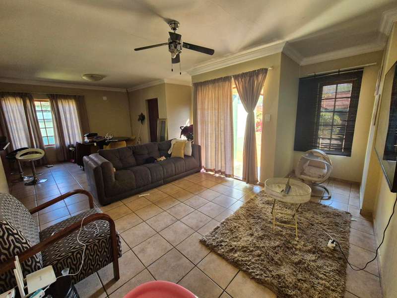 Charming 3 Bedroom, 2 Bathroom Home in Secure Estate Welcome to this delightful 3 bedroom, 2 bathroom home located in a sought-after security estate. This property offers modern living with an open plan kitchen and living room, perfect for family gatherings and entertaining guests. The home features a spacious pet-friendly garden, providing ample space for your furry friends to play and for you to enjoy outdoor activities. The double garages offer secure parking and additional storage space. Conveniently situated close to the primary school, this home is ideal for families seeking a safe and nurturing environment for their children. Don't miss out on this fantastic opportunity to own a piece of paradise in a secure estate. Contact me today to schedule a viewing!