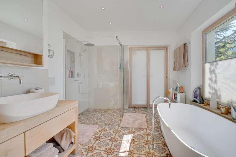 • High energy self-sufficiency & environmental compatibility • Peace, privacy, lots of nature & space • Room layout according to the Feng Shui philosophy • Heat pump, solar panels & chimney boiler
