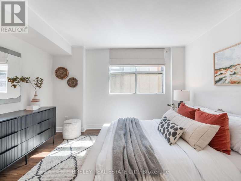 Welcome to The Rosedale! Nestled in a boutique condo of just 23 suites, this bright corner unit offers a 1 bedroom + large den layout, with the den easily working as a second bedroom or home office. The suite has been beautifully maintained and thoughtfully upgraded, featuring a renovated kitchen with wood detail backsplash and concrete-style countertops, wide plank laminate flooring, custom window coverings, and an oversized bedroom with double closets and custom inserts. East-facing windows flood the space with natural light throughout the day. And the location can't be beat! Just steps to TTC, Yonge and Bloor, Yorkville, shops, restaurants, and easy access to the DVP.