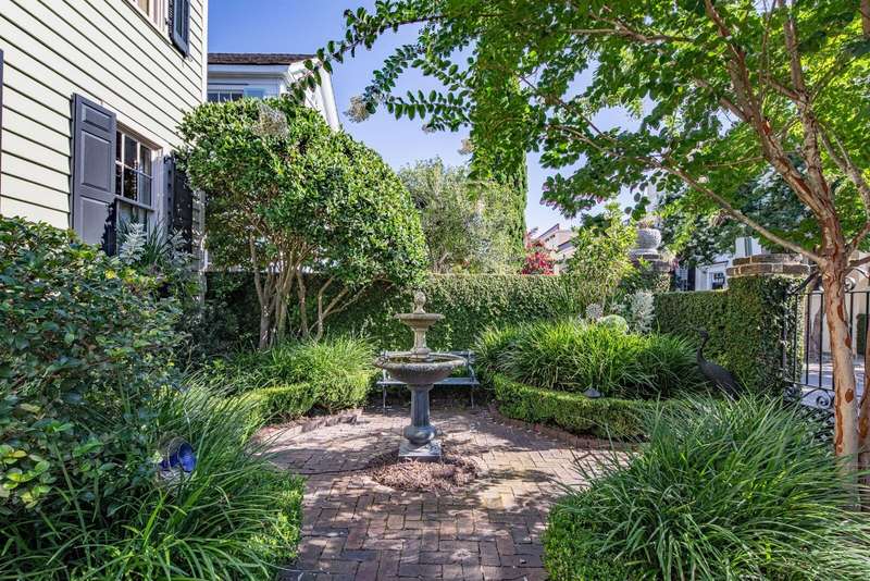 Beautifully restored Charleston single style home located in the desirable ''East Side'' of South of Broad. Thoughtfully set back from the street offering privacy with lush front and rear walled gardens. Totally restored in 2005, additionally recent upgrades which include a new copper roof. This charming home features chic styling, with updated kitchen and baths. The comfortable rear den offers light and views of the garden. The spacious primary suite on the second level also gives one garden and Historic rooftop views. Another feature is the high elevation location in the heart of 18th Century Charleston. One of the best locations in the Historic District, just park your car and easily stroll to fine restaurants, shopping and galleries nearby. Gated off street parking.