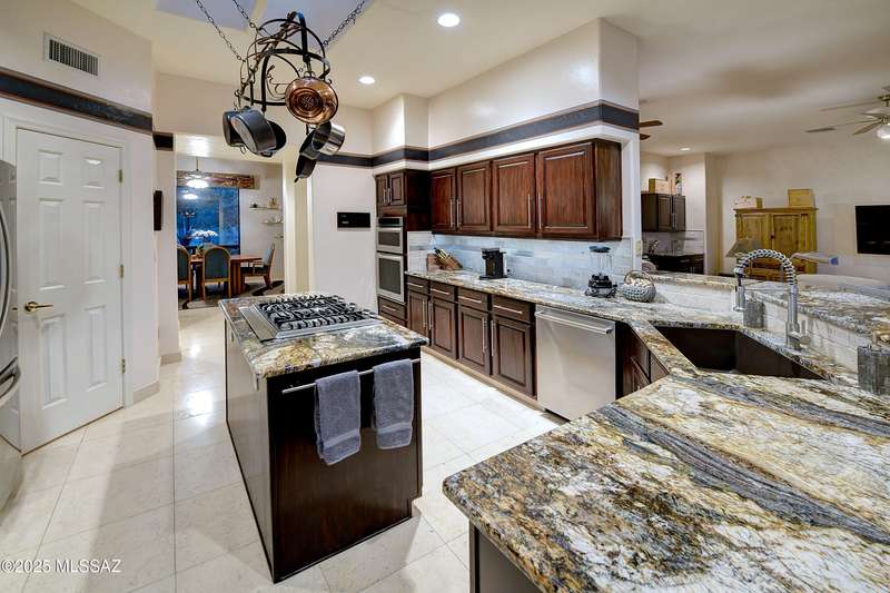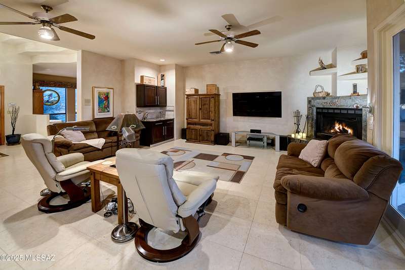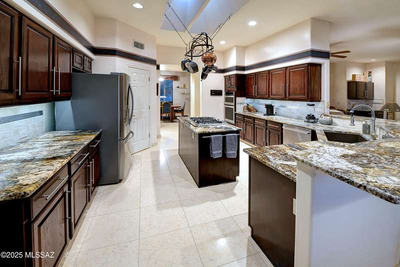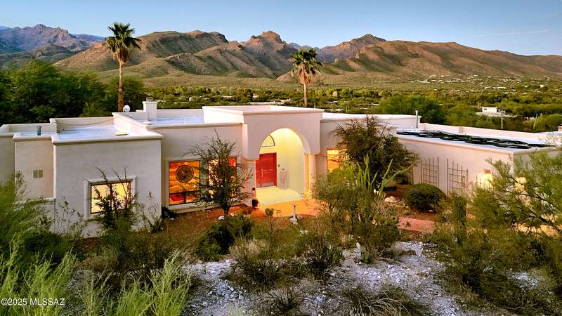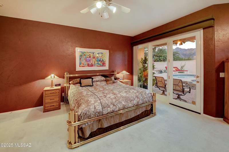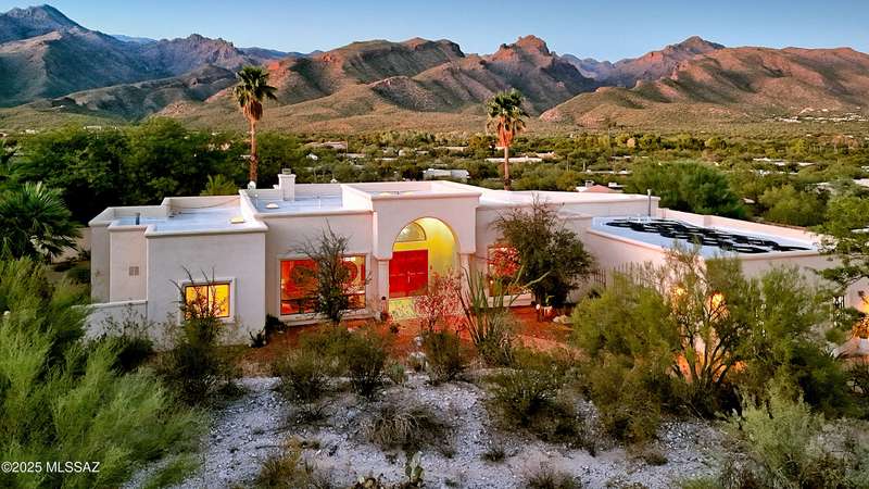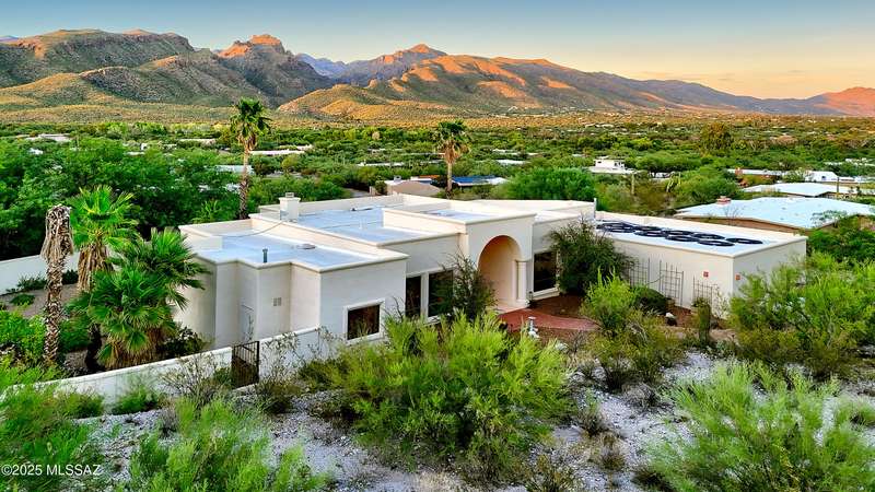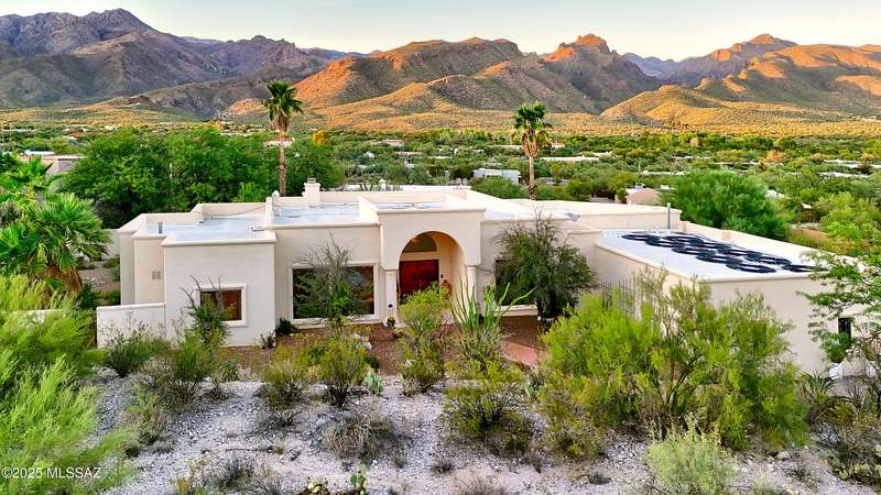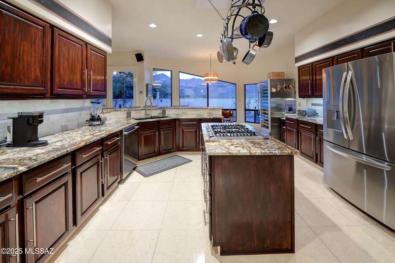 Sweeping mountain views, fantastic finishes and a beautiful backyard oasis welcome you to this inviting retreat on a raised foothills lot. Sky high covered entry and double doors flow into formal living & dining spaces, perfect for entertaining. Gorgeous kitchen with granite counters, SS appliances, gas cooktop & sunny breakfast nook. Just beyond the spacious greatroom offers a cozy fireplace, wet bar & soaring windows framing the view & French doors to the backyard. Step outside to enjoy Tucson living at its finest with sparkling pool, expansive sideyard, large covered patio & extended pavers ideal for outdoor gatherings. Generous primary with lovely sitting area is a relaxing escape. Huge laundry room with ample storage. 3-car garage. A truly wonderfully designed home.