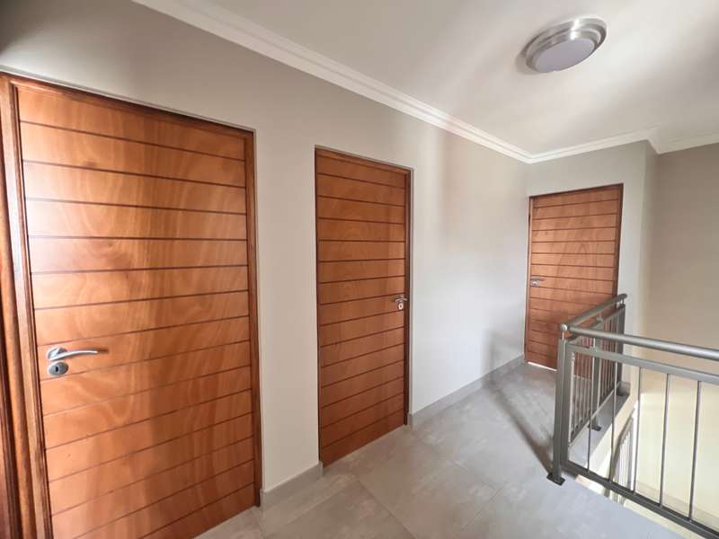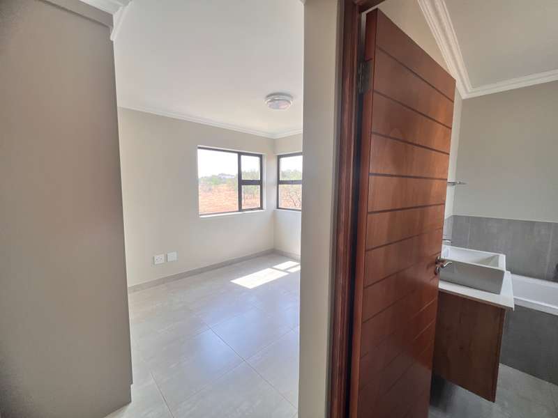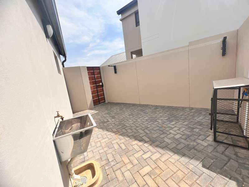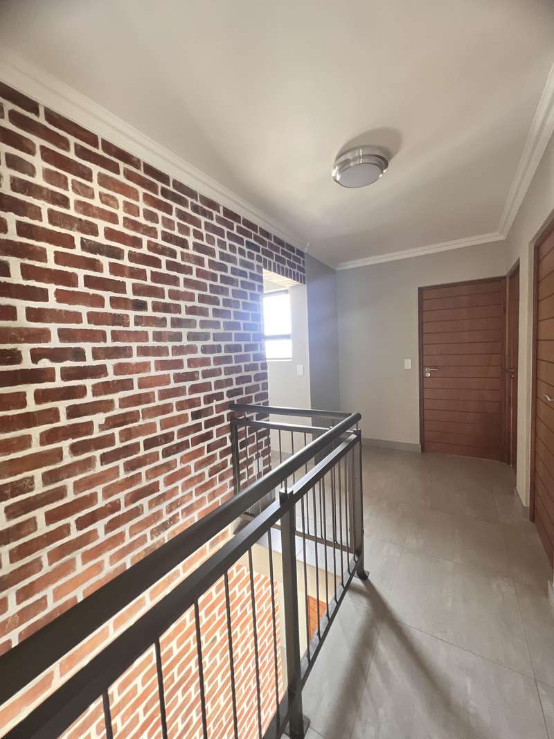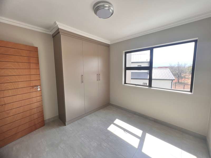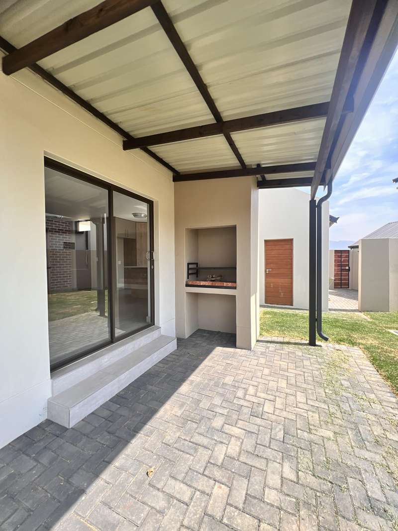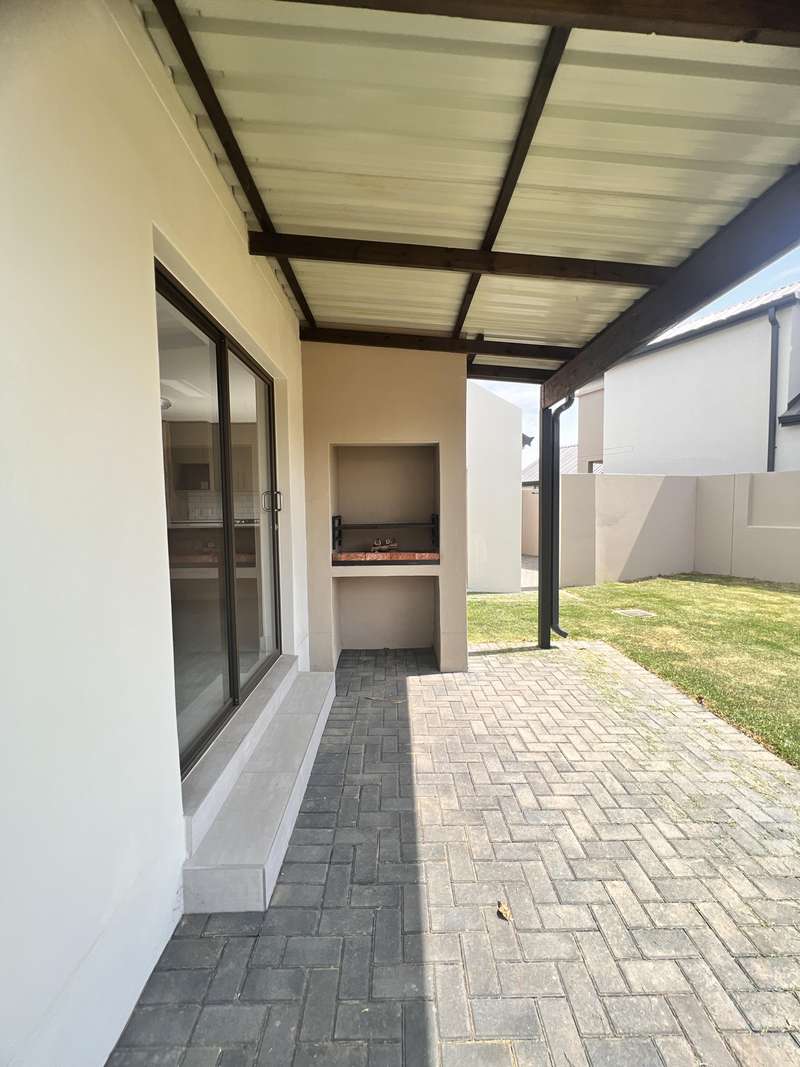 La Camargue ~~ Private Country Estate ~~ Part of a wildlife security Estate, where Blesbuck, Nyala, Impala, Springbok, Wildebeest roaming around freely.There is a village, with smaller stands, within the Estate with the advantages of one of the larger stands, (wildlife, walking trails, parks, security - face detection, electric fence, 24 hours vehicle patrol and future clubhouse,There are still open stands, if you prefer to build yourself. This double storey ~ three bedroom home, with living area downstairs and three bedrooms upstairs are available. The main bedroom has a full en-suite bathroom. The other two bedrooms share a bathroom, but there is a bonus, of a separate guest toilet downstairs. The kitchen has a gas stove, pantry and granite tops. The modern open plan living area, walk out on a patio, with a braai and the back yard. Call me now for viewing Arrangement......