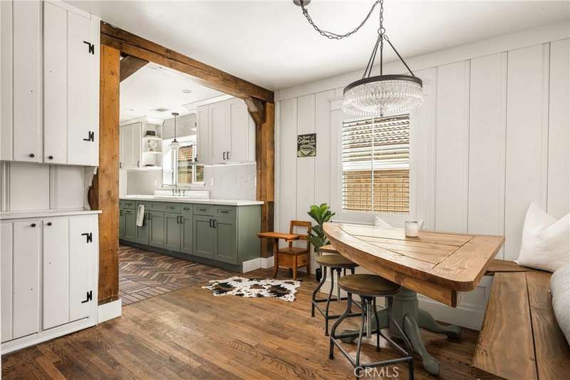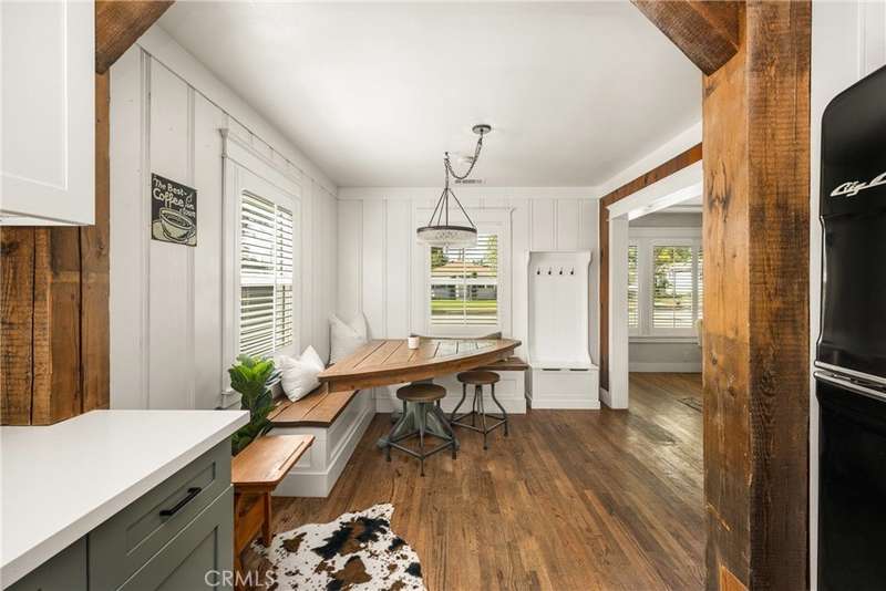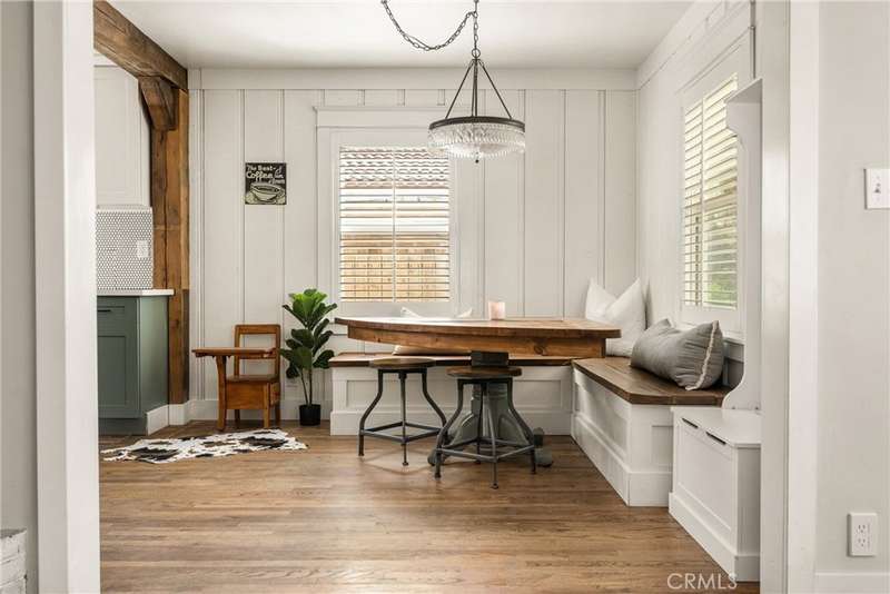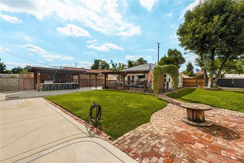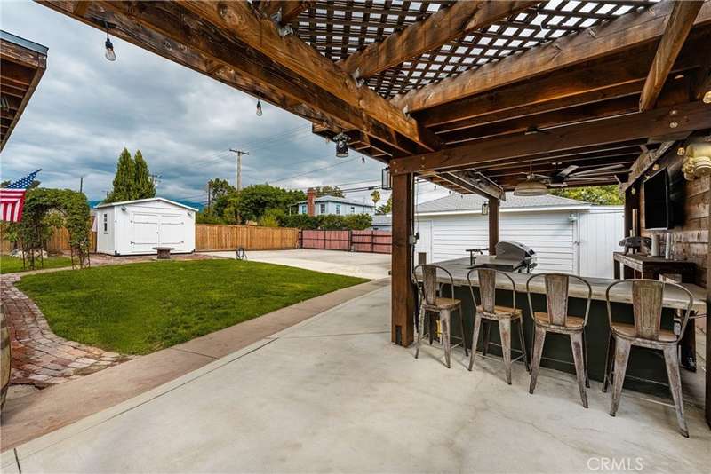 Located in 5 minute walking distance of historic downtown Upland is a picture perfect home situated on a 10,200 square foot lot. The home has been upgraded over the years and beautified throughout ownership! The interior of the home features a gorgeous fireplace, oak hardwood floors (throughout), wainscoting, built in shelving. The home’s kitchen features spacious shaker style cabinets, quartz stone, penny tile backsplash, floating shelves, custom 5 burner gas stove with convection oven and stainless steel vent hood and a built in breakfast nook off-of the kitchen perfectly completes this space! Full bath has been tastefully upgraded with wainscoting, tile flooring, vanity,barn-door mirror medicine cabinet, built-in storage cabinetry and marble counter. Half bath is equipped with newer sink, fixtures, custom paneling, and casement window. The two guest bedrooms are large-in-size with craftsman style crown-moulding. The main bedroom is cozy with wainscoted walls, a one of a kind barn door closet and French doors that let soft morning light into the room from the backyard. Access THE DREAM deck & back yard through the French doors off the main bedroom or kitchen and take it all in! YOU WILL APPRECIATE EVERYTHING from the MASSIVE covered deck featuring space heaters to the CUSTOM-BUILT bar area equipped with built in BBQ, custom sink, refrigerator and 30-amp panel. 2 car detached garage with built in storage shed, custom mechanic clean-up station, and electric mechanical gate. Here, there is parking for all the toys! Front or back, YOU pick! The backyard also features a 10x12 storage shed with a finished interior that can be used as a home office, gym or storage. Newer HVAC system, digital thermostat, whole house fan, exterior siding, dual paned windows, plantation shutters, insulation, tankless water heater, cedar fence, newer roof replaced in 2023, upgraded sewer, 200-amp panel, and 100-amp sub panel and underground wiring. Wired for jacuzzi! This house is ONE OF A KIND in the Upland area and worth seeing.