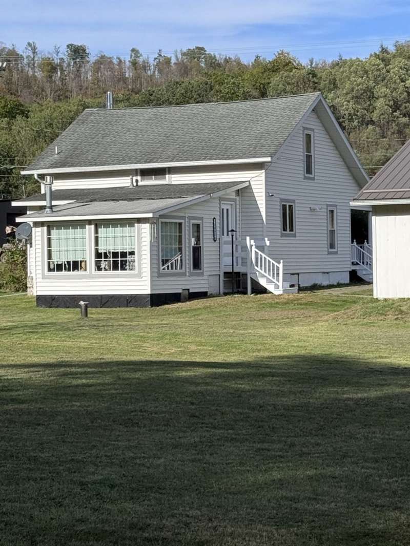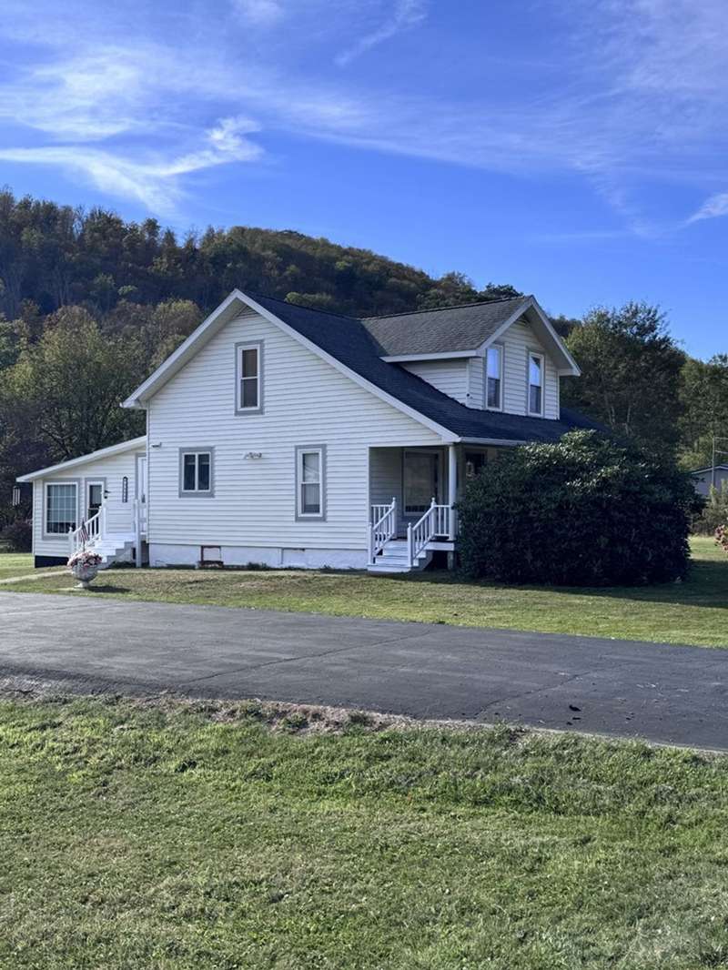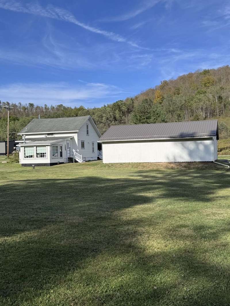 A home to call your own. This home combines location, comfort, and potential. Enjoy the generous backyard space that's ideal for gardening or play. Relax near the flowing stream running through the property. Great curb appeal with the blacktop driveway to the oversized three car garage, a mechanic/car enthusiasts dream. The homes lower level provides a bedroom & full bath. Relax in the living room with the wood burning stove. A rear sunken sunroom with a vaulted tongue-and-groove ceiling. Perfect for relaxing mornings or evening unwinding. Absorb the sunshine and admire the rear view of the property. Also enjoy the front covered porch. The second level consists of two bedrooms, full bathroom and an office/den, also featuring plenty of closets and storage. This home offers space to live, grow and enjoy life. Don't miss your opportunity to own this property.