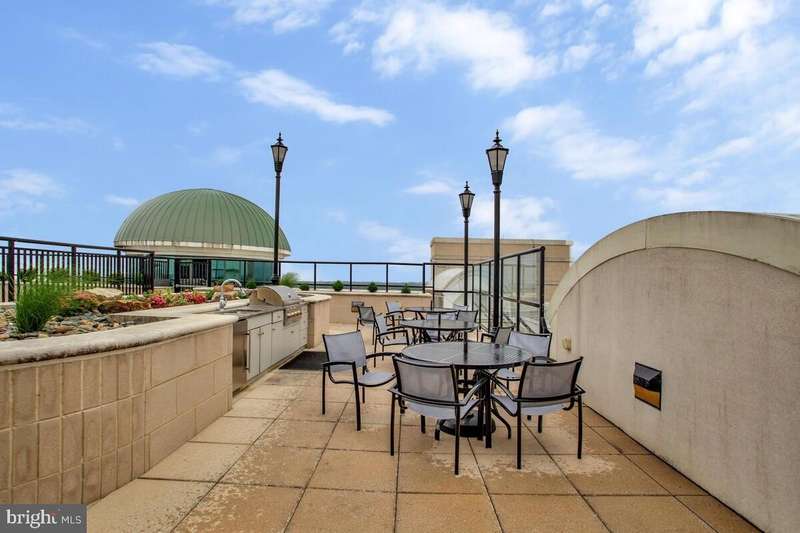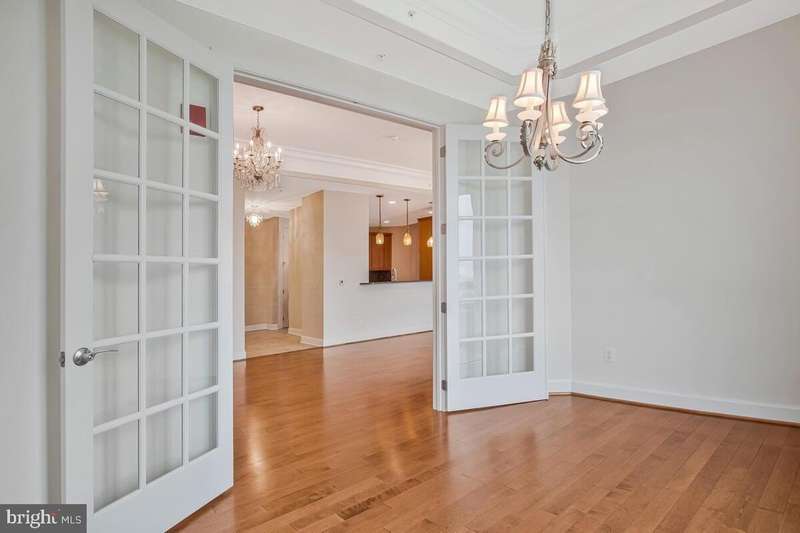Experience elevated living in this stunning 10th-floor residence at Towne Centre, Annapolis' premier luxury condominium community. This spacious 2-bedroom, 2.5-bath unit features a separate study with French doors-perfect for a home office or library. High end finishes adorn this unit with unique pendant lighting and brilliant chandeliers. The living and dining area are open and bright with walls of windows with a private balcony and panoramic views. The gourmet kitchen features upgraded appliances, granite counters and a separate laundry room. Unwind in the expansive primary suite complete with a walk-in closet and spa-inspired bath. The second bedroom also offers a large en-suite bath and walk-in closet, ideal for guests or family. Brand new HVAC, Hot Water Heater and Refrigerator. This unit conveys 2 covered parking spaces and a storage unit. This secure building offers exceptional amenities including a fitness room, eating and living areas, a rooftop pool, BBQ area, and a gathering room showcasing sweeping views of Annapolis. Enjoy the top-rated restaurants, Whole Foods, boutique shops and Target right outside your front door. Upscale living meets unmatched convenience at Towne Centre.