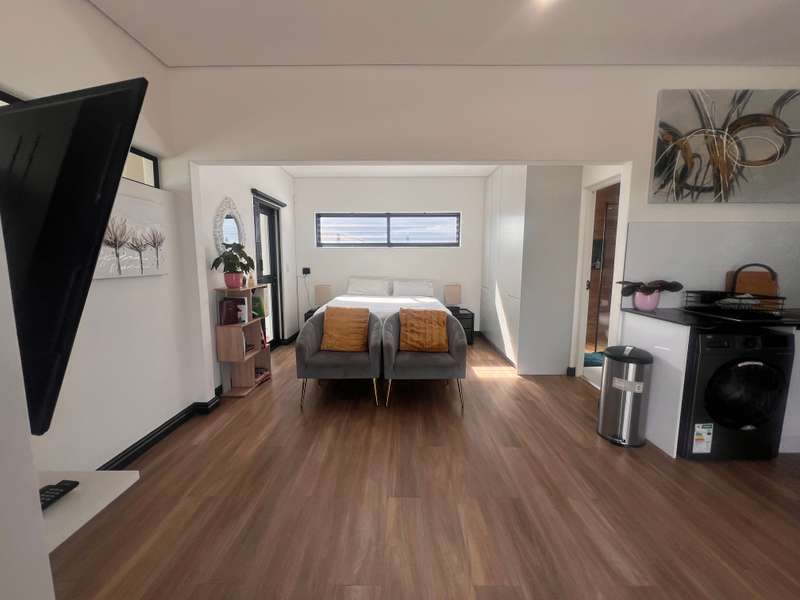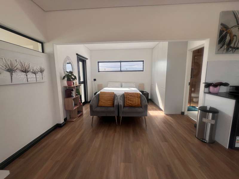 Availability: Immediately Deposit: R28 000.00 Lease Term: 3 months only This beautifully designed studio apartment in Sandown, Cape Town is available on a short-term 3-month lease, perfect for those needing a convenient and stylish temporary home. Situated within walking distance of Sandown Centre – with Checkers Hyper, Bootlegger Coffee, restaurants, and shops nearby – it combines comfort with excellent location. The apartment is fully furnished and move-in ready, featuring a newly renovated bathroom with a modern shower, stylish finishes throughout, and a practical study nook that makes working from home easy. A private balcony overlooks a tranquil garden, offering a calm retreat for your morning coffee or evening relaxation. For added security, the property includes undercover parking behind a secure gate and access-controlled entry. With gyms, schools, restaurants, and transport routes close by, plus easy access to Blouberg, Table View, and Cape Town CBD, this unit is perfectly positioned for convenience.