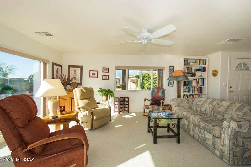 Wonderful remodeled home in the highly sought after Tucson Estates community! This great home has had many updates including stucco, built-in cabinets, built-in bar and an AZ room! Great for outdoor AND indoor entertaining. The covered patios on the West side offer beautiful views of the Tucson Mountains. Pavers in the front and on the East side. Carport and patio have decorative epoxy coating. The best part is that YOU OWN THE LAND!