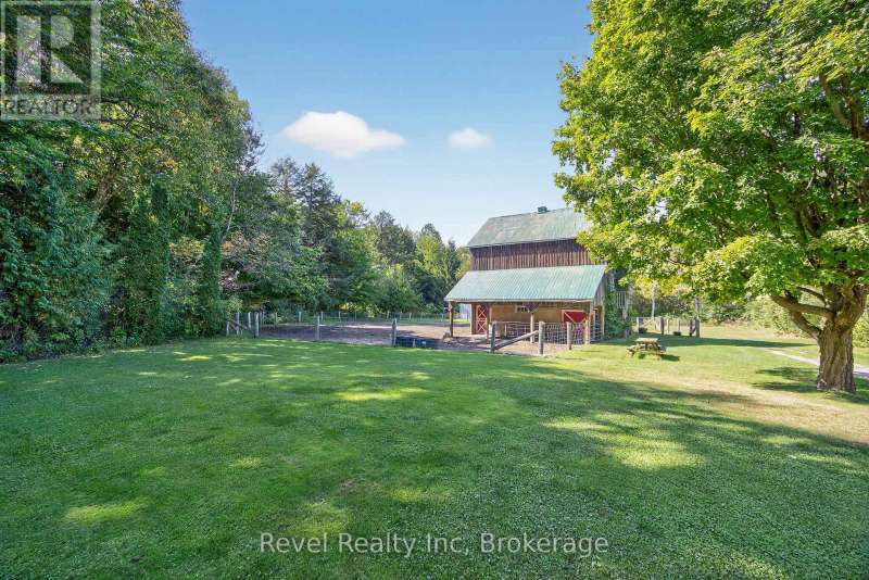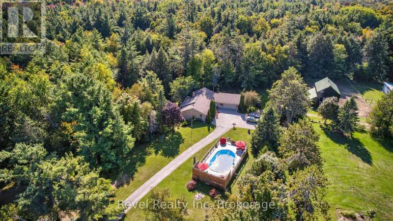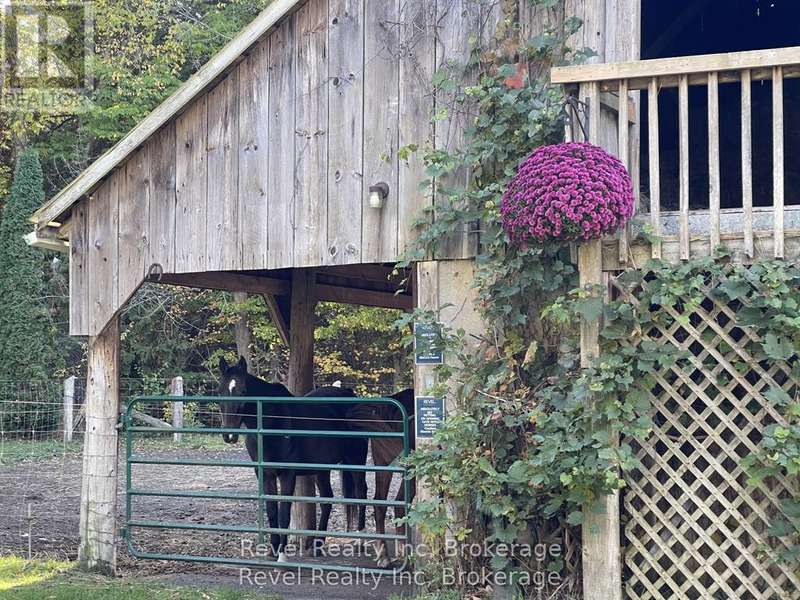 Welcome to your private 48.39-acre sanctuary-a rare opportunity to escape the city's chaos and embrace a simpler, more fulfilling way of life. As you wind down the secluded driveway, three majestic old-growth white pines-known as the Three Sisters-stand as timeless guardians of this serene retreat. The custom-built bungalow offers generous living space with cathedral ceilings, a double-sided gas fireplace, and triple-pane windows framing views of the pond, creek, and landscaped grounds. The main level features a spacious kitchen with walkout to the deck, a primary bedroom with ensuite, main floor laundry, and inviting family spaces. The lower level includes a large recreation room with wood-burning fireplace, two additional bedrooms, a beautifully updated bathroom, and two versatile grooming rooms that can be tailored to your needs, plus a walkout to the backyard and garage-ideal for multi-generational living or a home business. Outdoors, a century barn with hay loft, two paddocks with direct trail access, a sugar shack, chicken coop, and fenced area for pets create endless possibilities. An expansive four-bay drive-in shed with oversized doors provides ample storage for boats, tractors, or collector cars. Trails wind through a blend of old-growth forest and open meadows, perfect for horseback riding, hiking, or exploring nature. In summer, enjoy the 18x33 above-ground pool with full deck and tiki bar for effortless entertaining; in winter, cozy up by the wood-burning fireplace and watch snow fall across your private oasis. With numerous updates and a forest management plan option for potential tax savings, this property is both practical and inspiring-a true sanctuary ready for its next chapter, yours. (id:7434)