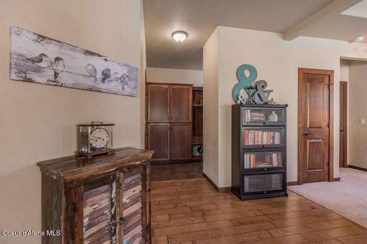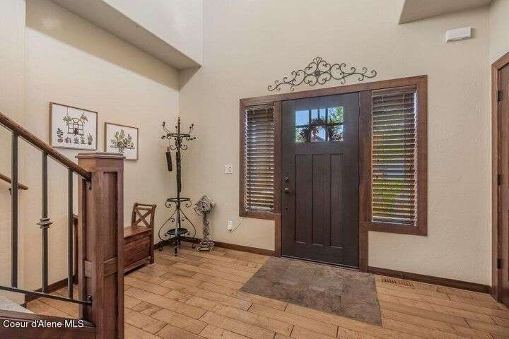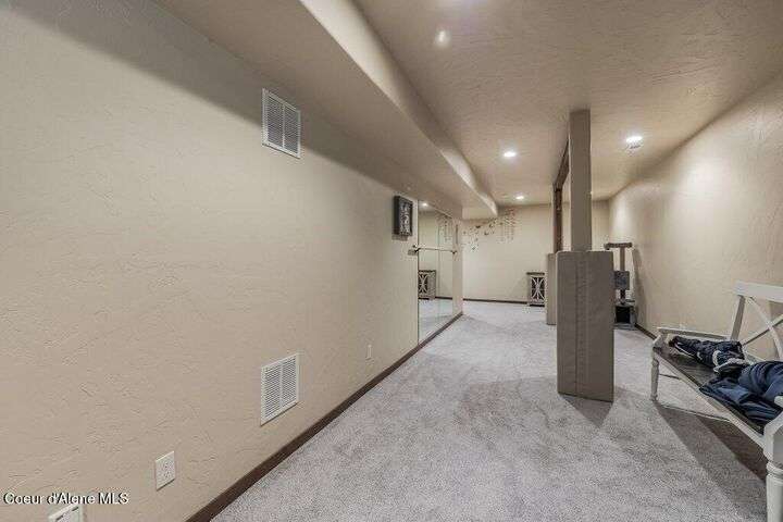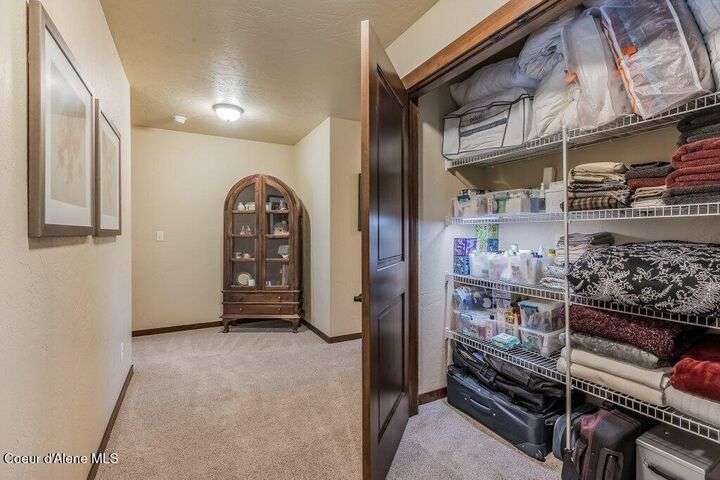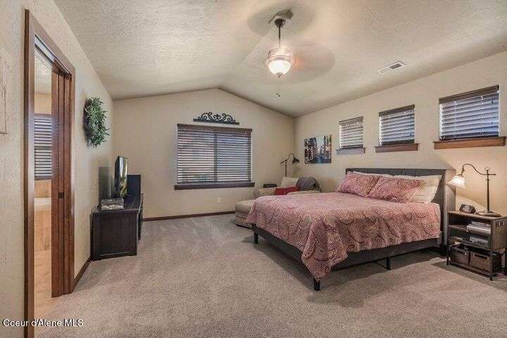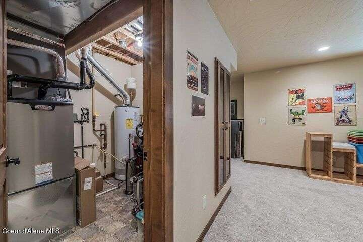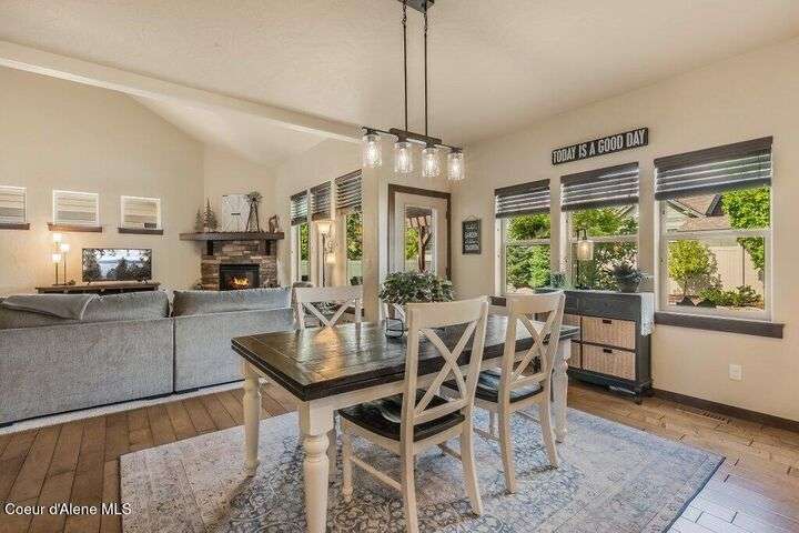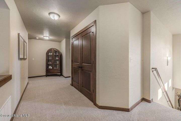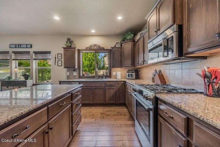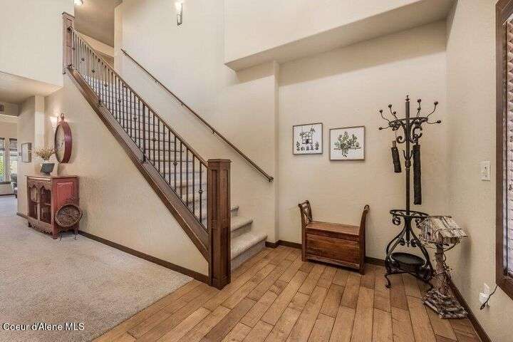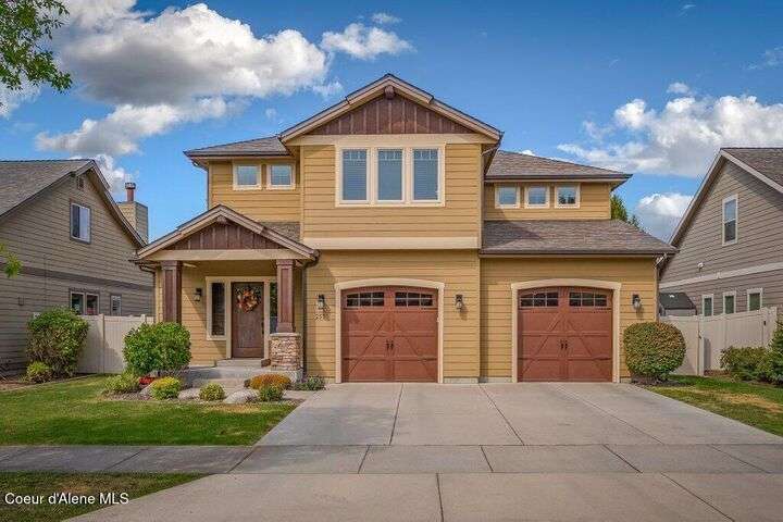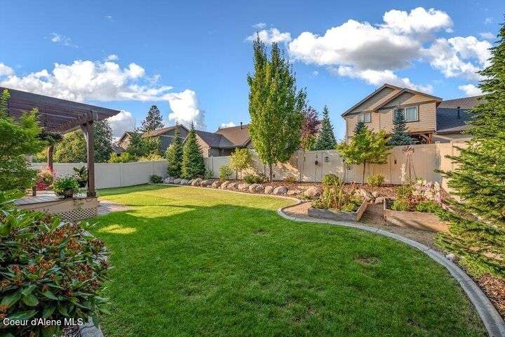 A TASTE OF GORGEOUS - Immaculate Aspen Home nestled in Coeur d'Alene Place! No detail was spared in this quality home. Built in 2009, this home shows like new. Enjoy a large, open floor plan with spacious rooms and thoughtful details throughout. The main floor features an office near the entry way complete with built-in cabinets and a desk. The kitchen, dining and living room have an open, inviting feel. The living room offers soaring ceilings, a gas fireplace with a rock surround and wood beam mantle, and tons of windows allowing for abundant natural light. The kitchen features engineered hardwood flooring, granite counters, new Beko appliance suite, undercabinet lighting, touchless faucet, walk-in pantry and more. Upstairs you'll find a spacious laundry room, along with the master bedroom suite and two bedrooms. The oversized master bedroom offers a vaulted ceiling, large walk-in closet with abundant shelving, spacious bathroom with a shower, soaking tub, and a dual sink vanity. The basement offers a theater room that is wired for surround sound, and is complete with a built in component cabinet. The fitness area features ballet safety-mirrors and barre, along with an attached swing that would be great for relaxing, or reading a book. The basement also has a bedroom and full bath, along with the utility room. The garage is finished, painted and includes a pulley storage system, tire storage racks and newer smart garage door openers. Enjoy your time outdoors on the Trex deck complete with a freshly-stained pergola. Landscaping has been professionally updated and includes raised garden beds, a berry patch and fruit trees. Both yards are fully sprinklered and on drip systems with a smart Rachio controller. Top it off with a brand new 97% furnace and AC, central vac that serves the house and garage, Reme Halo air filtration system, and so much more. This home is truly turn key and a must see!