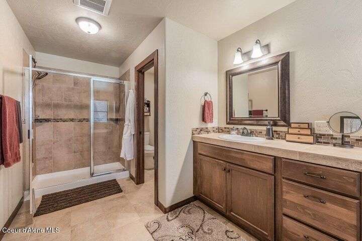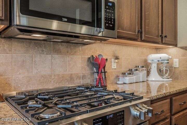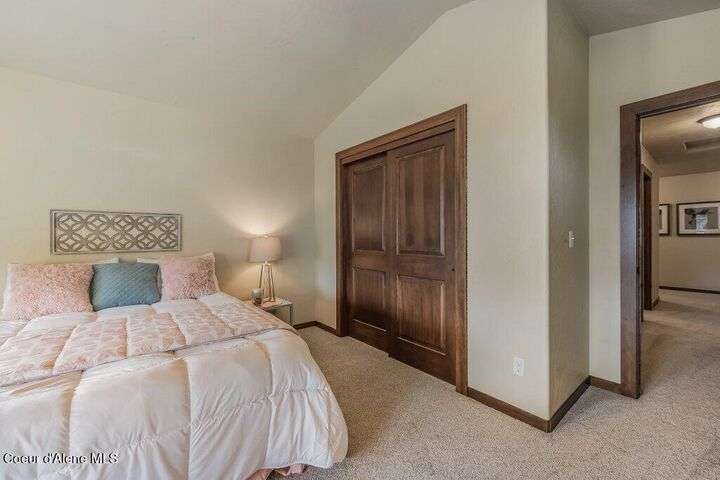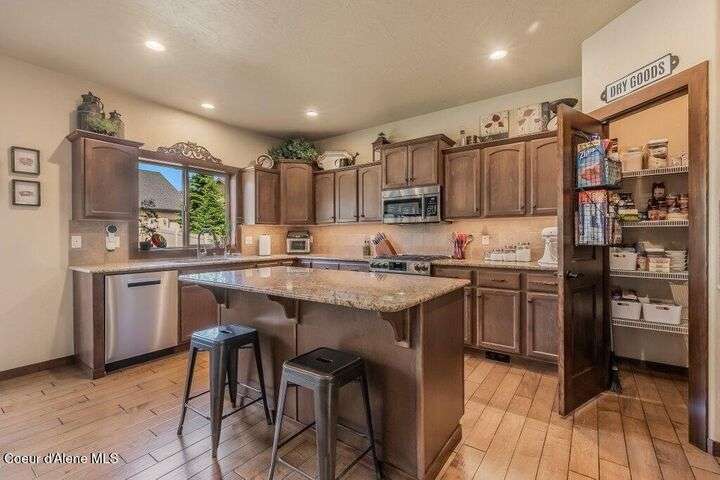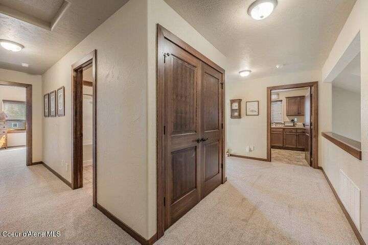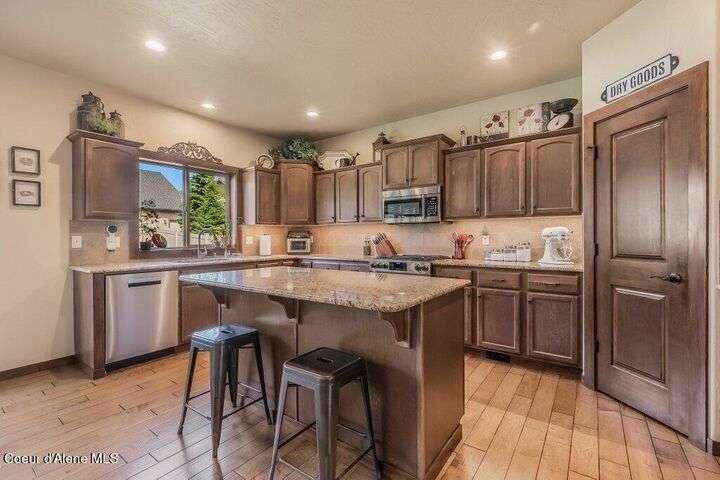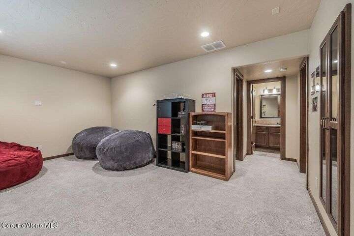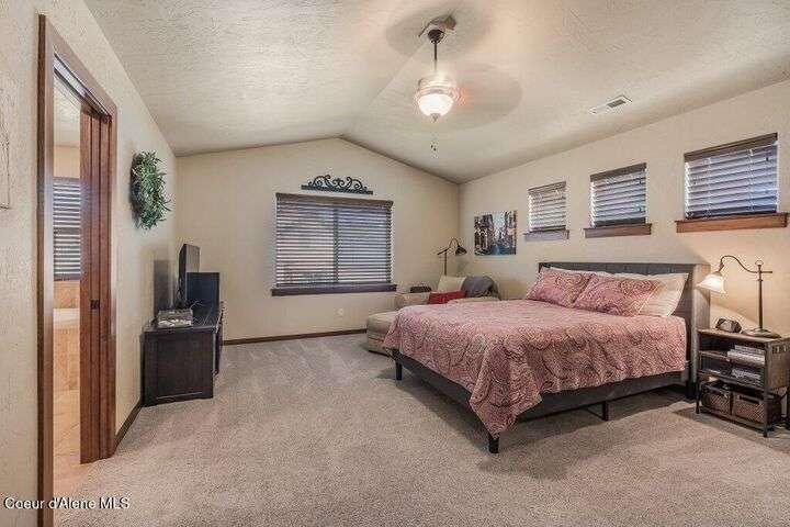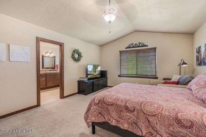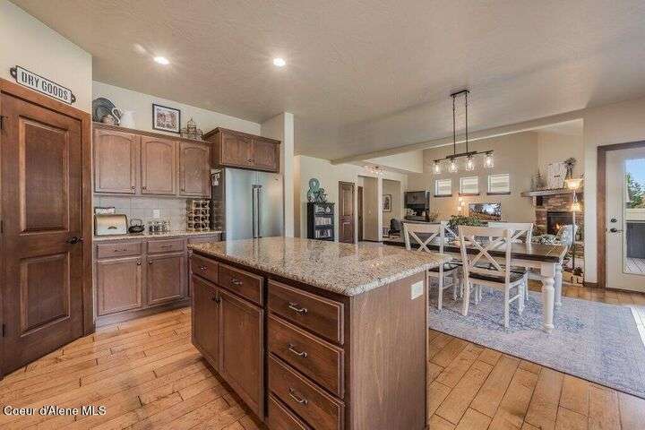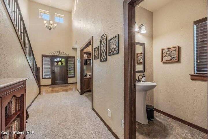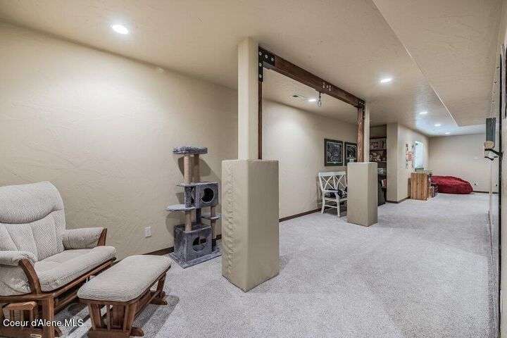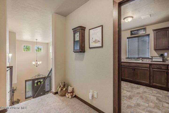 A TASTE OF GORGEOUS - Immaculate Aspen Home nestled in Coeur d'Alene Place! No detail was spared in this quality home. Built in 2009, this home shows like new. Enjoy a large, open floor plan with spacious rooms and thoughtful details throughout. The main floor features an office near the entry way complete with built-in cabinets and a desk. The kitchen, dining and living room have an open, inviting feel. The living room offers soaring ceilings, a gas fireplace with a rock surround and wood beam mantle, and tons of windows allowing for abundant natural light. The kitchen features engineered hardwood flooring, granite counters, new Beko appliance suite, undercabinet lighting, touchless faucet, walk-in pantry and more. Upstairs you'll find a spacious laundry room, along with the master bedroom suite and two bedrooms. The oversized master bedroom offers a vaulted ceiling, large walk-in closet with abundant shelving, spacious bathroom with a shower, soaking tub, and a dual sink vanity. The basement offers a theater room that is wired for surround sound, and is complete with a built in component cabinet. The fitness area features ballet safety-mirrors and barre, along with an attached swing that would be great for relaxing, or reading a book. The basement also has a bedroom and full bath, along with the utility room. The garage is finished, painted and includes a pulley storage system, tire storage racks and newer smart garage door openers. Enjoy your time outdoors on the Trex deck complete with a freshly-stained pergola. Landscaping has been professionally updated and includes raised garden beds, a berry patch and fruit trees. Both yards are fully sprinklered and on drip systems with a smart Rachio controller. Top it off with a brand new 97% furnace and AC, central vac that serves the house and garage, Reme Halo air filtration system, and so much more. This home is truly turn key and a must see!