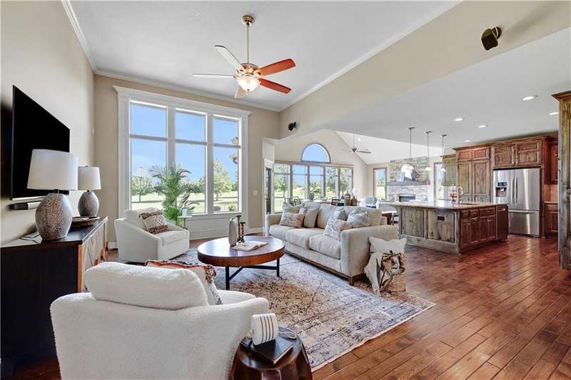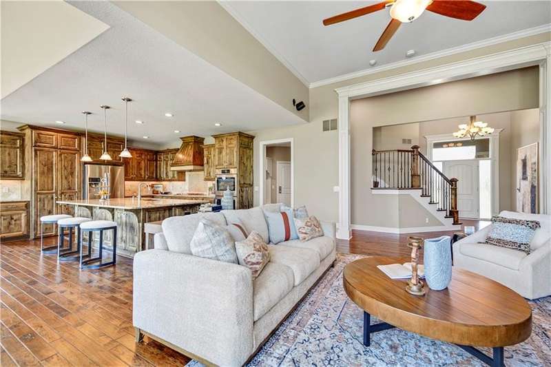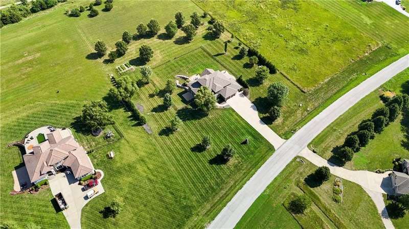 Exceptional 1.5 Story home on 2.98 acres in sought-after Walnut Creek Estates, offering walking trails, scenic 7-acre lake, and the perfect blend of nature and luxury living. This stunning 5-bedroom, 4.1 bath home features an open floor plan filled with natural light, soaring ceilings, and beautiful hickory wood floors. Enjoy spacious indoor and outdoor living with three patios, fenced yard, formal dining room great room, family room, and a gourmet kitchen designed to impress--complete with a massive granite island, gas cooktop, double ovens, and walk-in pantry. The main-level primary suite is a true retreat, featuring a walk-in closet and spa-like bathroom. Upstairs, you'll find a cozy loft and three generous bedrooms. The walkout lower level offers flexible living with a fifth bedroom, full bath, media room, and bar--perfect for entertaining or multigenerational living. Additional highlights include a suspended garage that creates an oversized storm shelter or workshop area, plus a high-efficiency geothermal heating and cooling system. All this, just minutes from city amenities--experience peaceful country living without compromise.