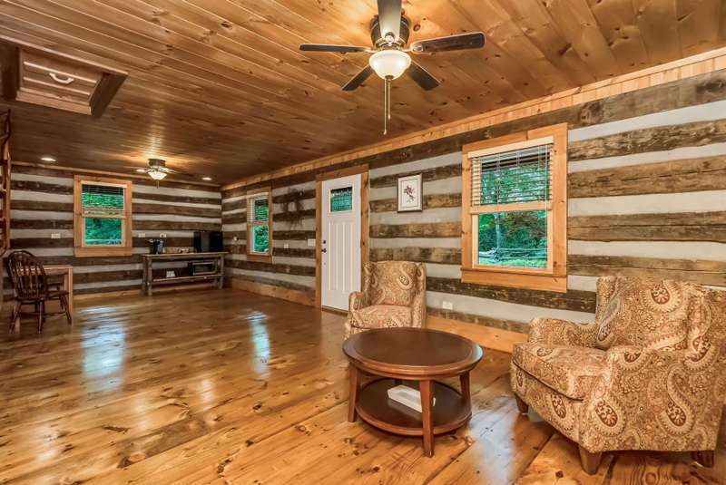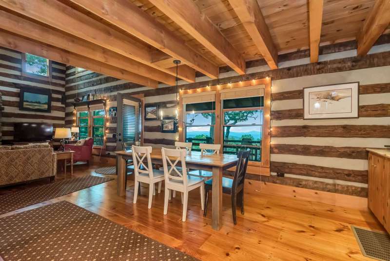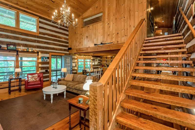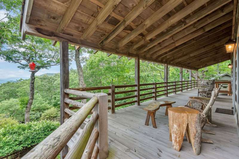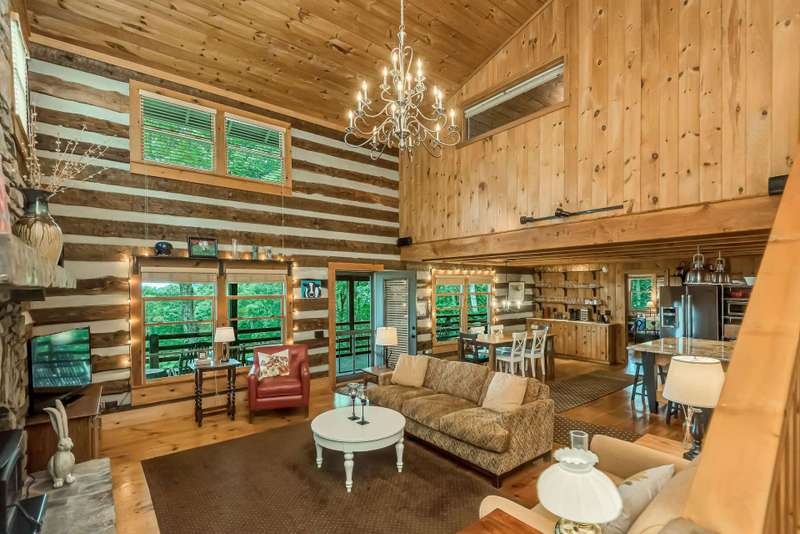 Wake up to the view of Grandfather Mountain while enjoying your morning coffee on the covered back deck of this exquisite antique log cabin. This cabin masterfully combines rustic charm with modern conveniences, creating an inviting retreat. Upon entering the front door, you are greeted by a spacious foyer and a convenient 1/2 bath. The great room seamlessly integrates the kitchen, dining, & living areas, making it ideal for hosting gatherings. The chef's kitchen presents commercial-grade appliances and an expansive island. The main level boasts a luxurious primary suite with stunning mountain views to greet you every morning. The private en-suite bath is a haven of relaxation, offering granite double sinks, a tiled shower, and a soaking tub. The upper level is designed with guests in mind, featuring 2 spacious bedrooms and a full bath. Each room provides comfort and privacy, making your guests feel right at home. The lower level is a versatile space, featuring an expansive family room. Also includes another full bath and 2 bonus rooms currently set up as bedrooms, ideal for accommodating additional guests. The wrap-around covered porches and expansive outdoor living room make this cabin an entertainer's dream. Whether hosting a summer BBQ or enjoying a quiet evening by the wood-burning outdoor fireplace, you'll love spending time outdoors. The fenced backyard is ideal for gardening and/or pets. A detached garage offers even more space for guests, featuring a sitting room, sleeping area, and full bath, creating a private guest suite. The lower level of the garage provides parking for 2 cars and room for a workshop, catering to all your storage and hobby needs. Every detail of this home has been thoughtfully designed and meticulously maintained, making it a truly exceptional property. With its stunning views, lavish amenities, and charming rustic appeal, this antique log cabin is the perfect mountain retreat for making lifelong memories with family and friends. Call today to schedule your tour of our listing B105!