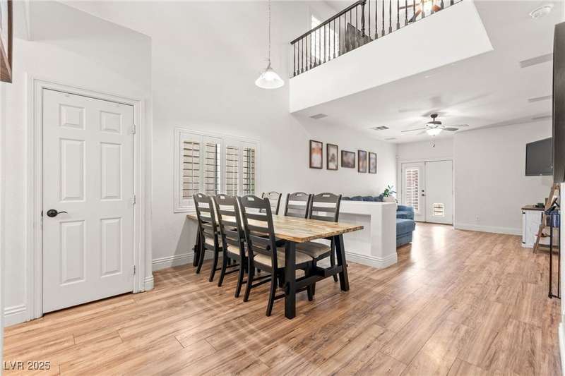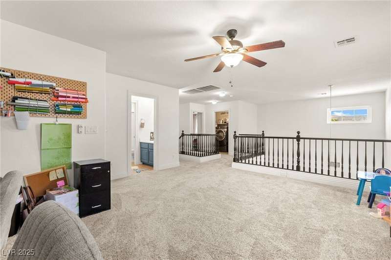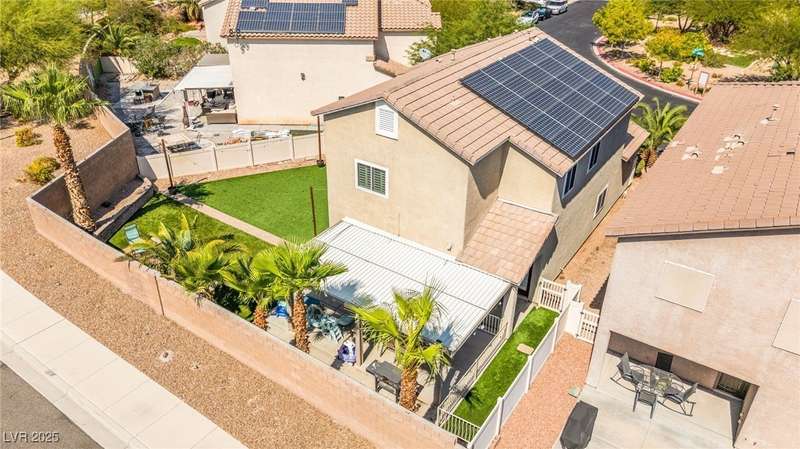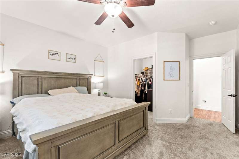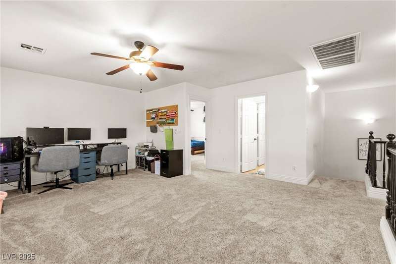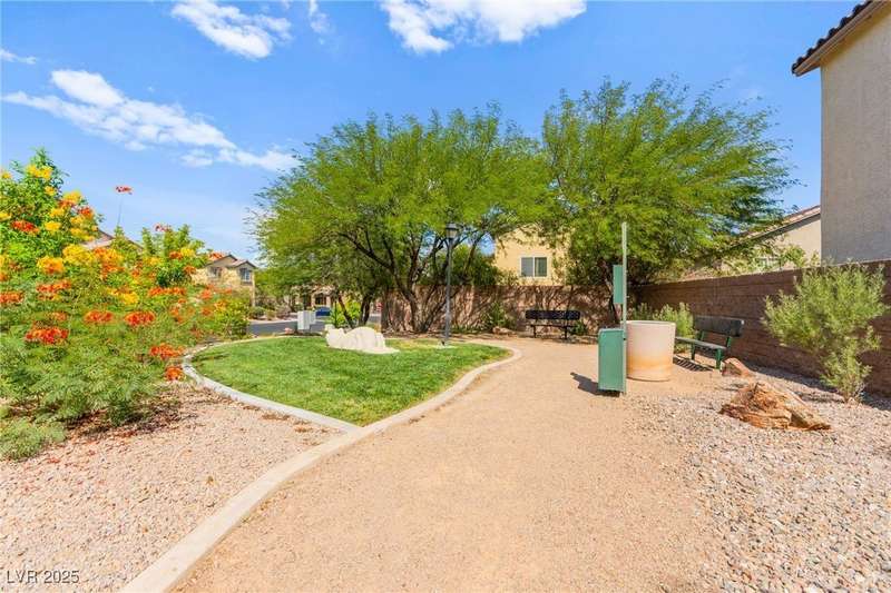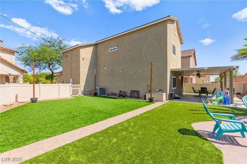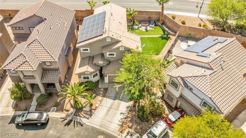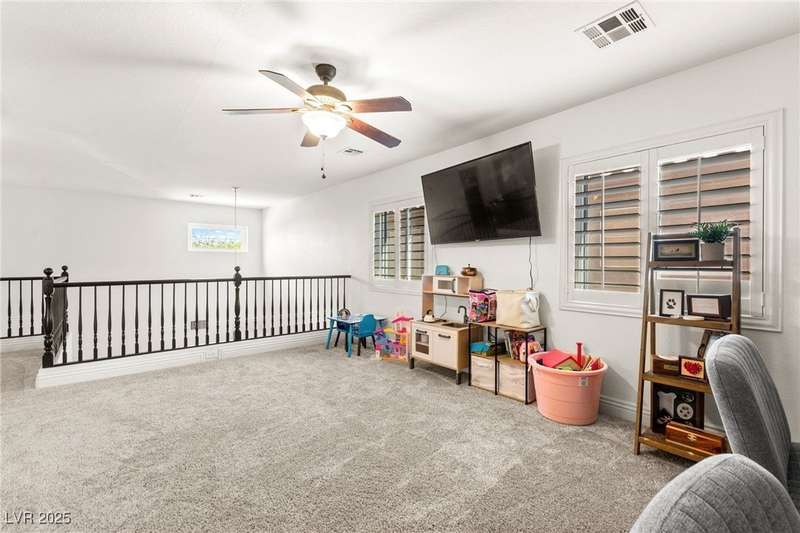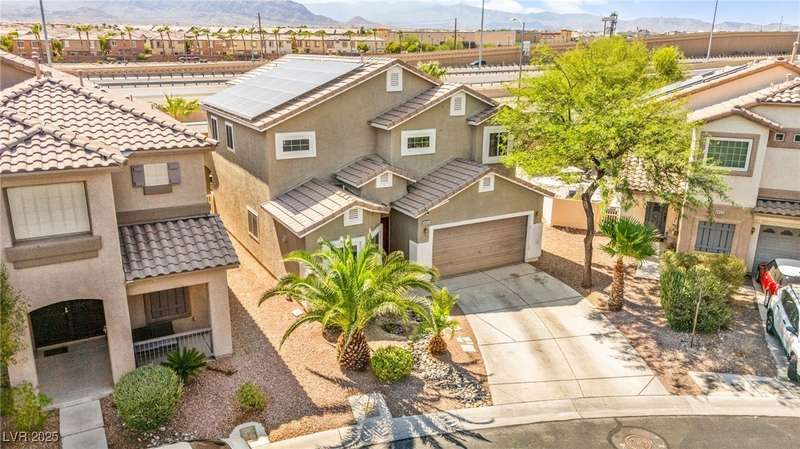 Welcome to an incredible corner lot gem w/ NEW windows throughout installed in 2025 w/ shutters, NEW carpet installed in 2024, NEW turf installed in 2023.This amazing 3 bedroom (ALL w/ walk-in closets) & 2.5 baths boasts high ceilings w/ great natural lights throughout.Primary bedroom is located downstairs for a desirable floor plan w/ dual vanity sinks & a large walk-in closet.Upstairs features a spacious loft for office/play area/additional lounging area along w/ 2 additional bedrooms & bathroom with door separation between shower/toilet & sink/vanity areas ideal for shared space .The backyard is an extensive corner lot w/ covered patio & plenty of room for outdoor lounging & activities for memories to be created w/ loved ones including a perfect space for dog run for fur babies WITH GATE as well as space for a future pool or small recreational sports court.This spectacular home is located by freeways, restaurants, grocery stores & outdoor amenities including Floyd Lamb Park